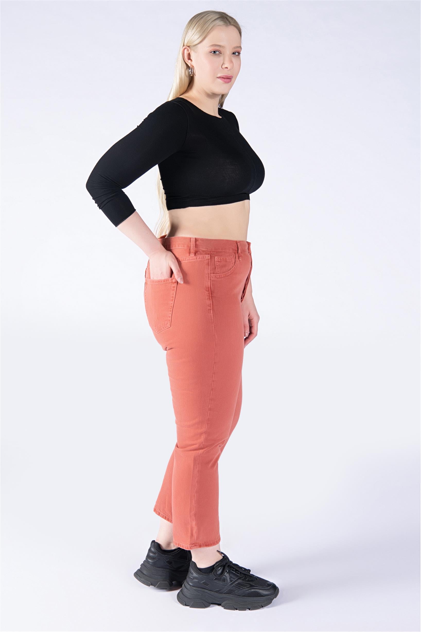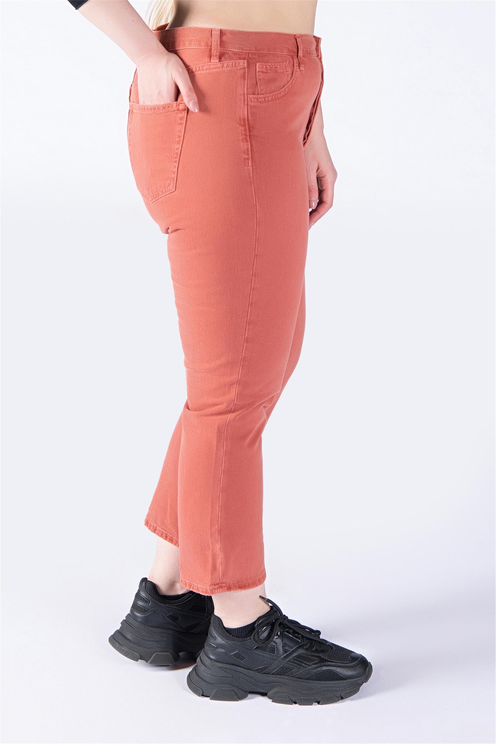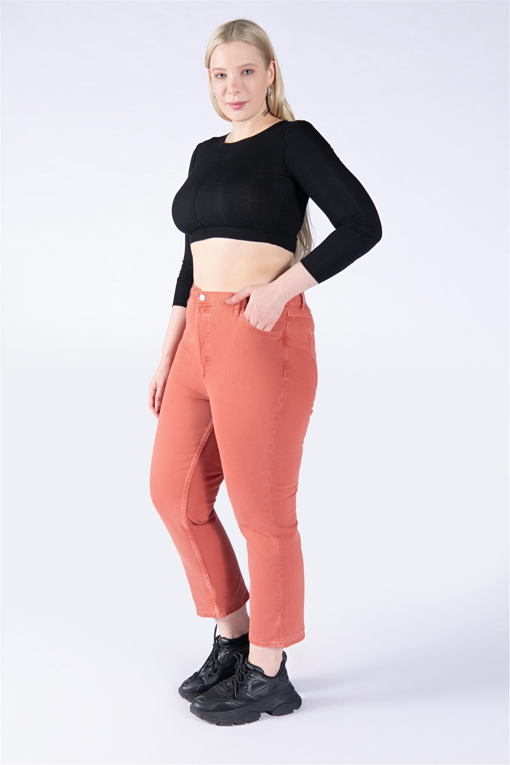 Büyük Beden Kiremit Yüksek Bel Mom Jeans
