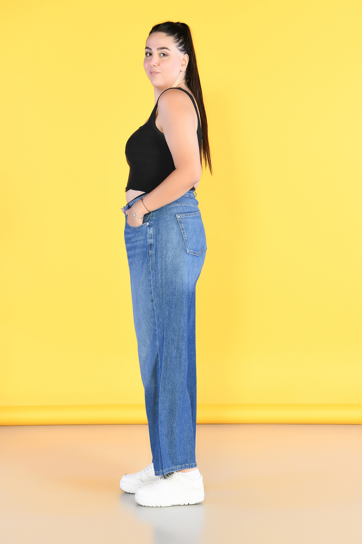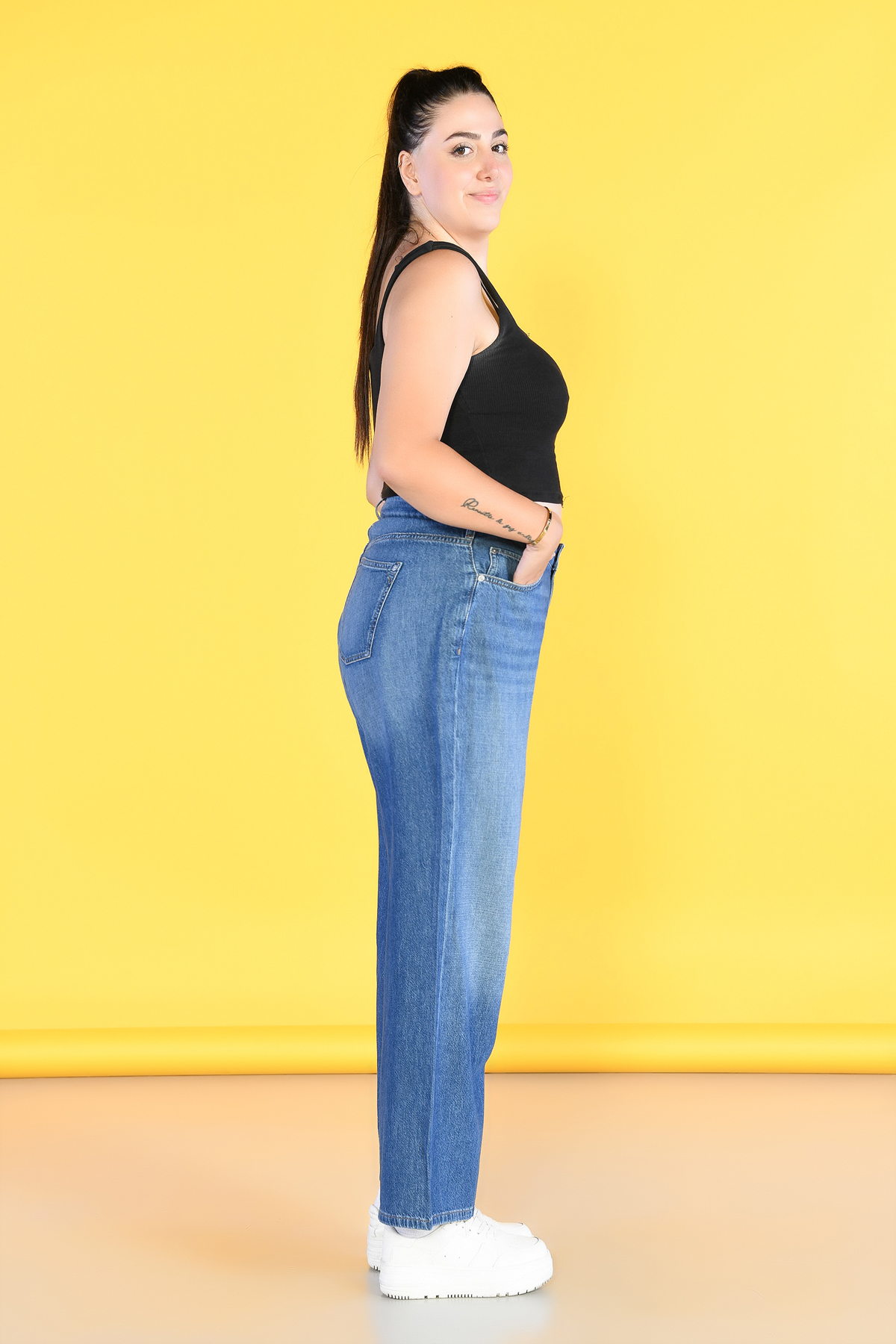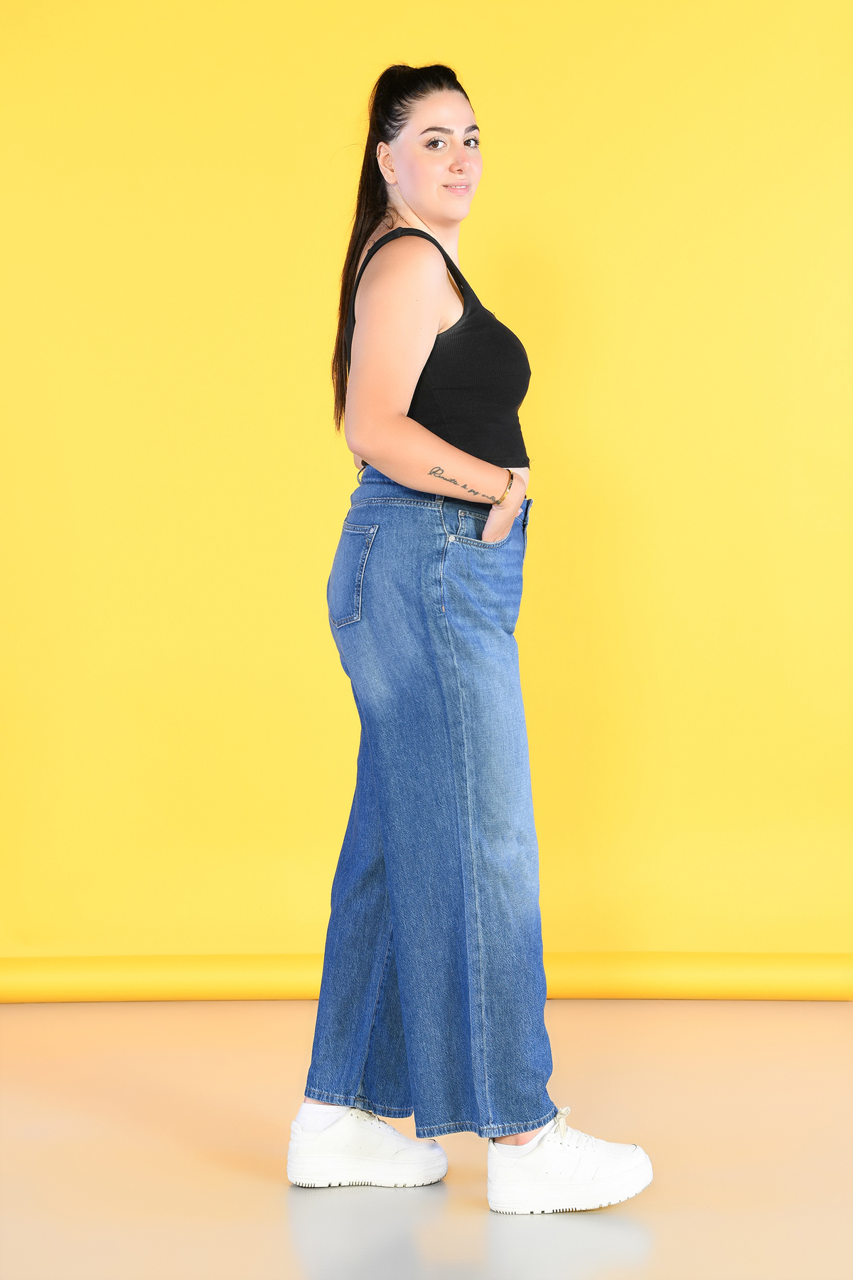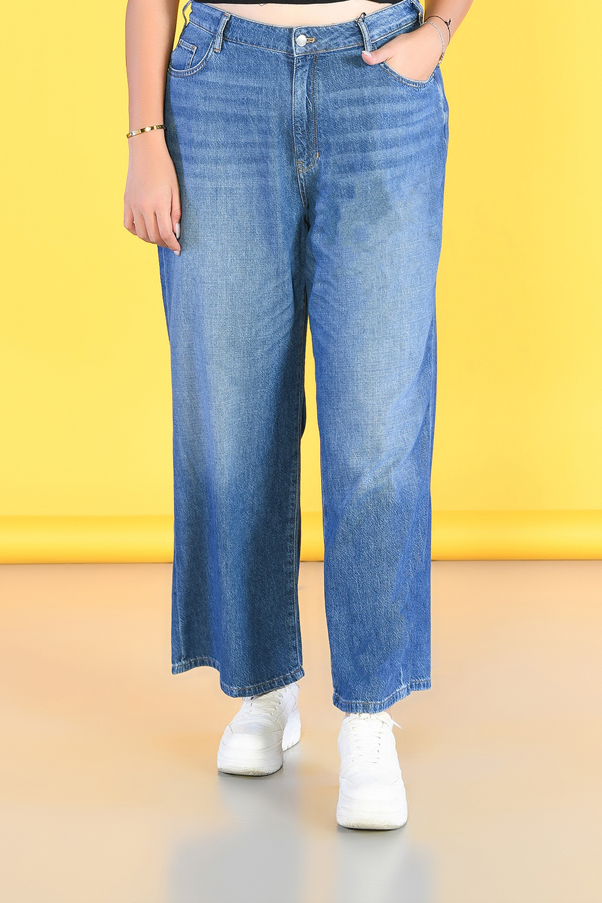 Büyük Beden Koyu Mavi Yüksek Bel Palazzo Jeans