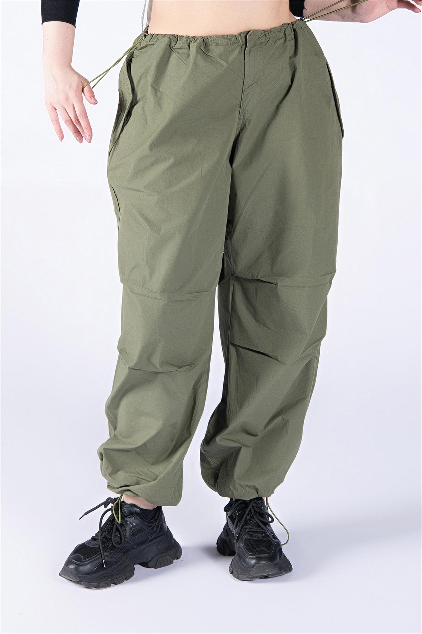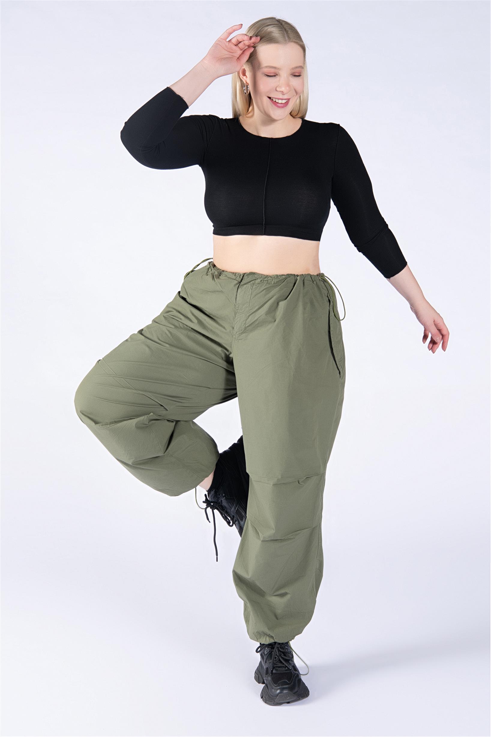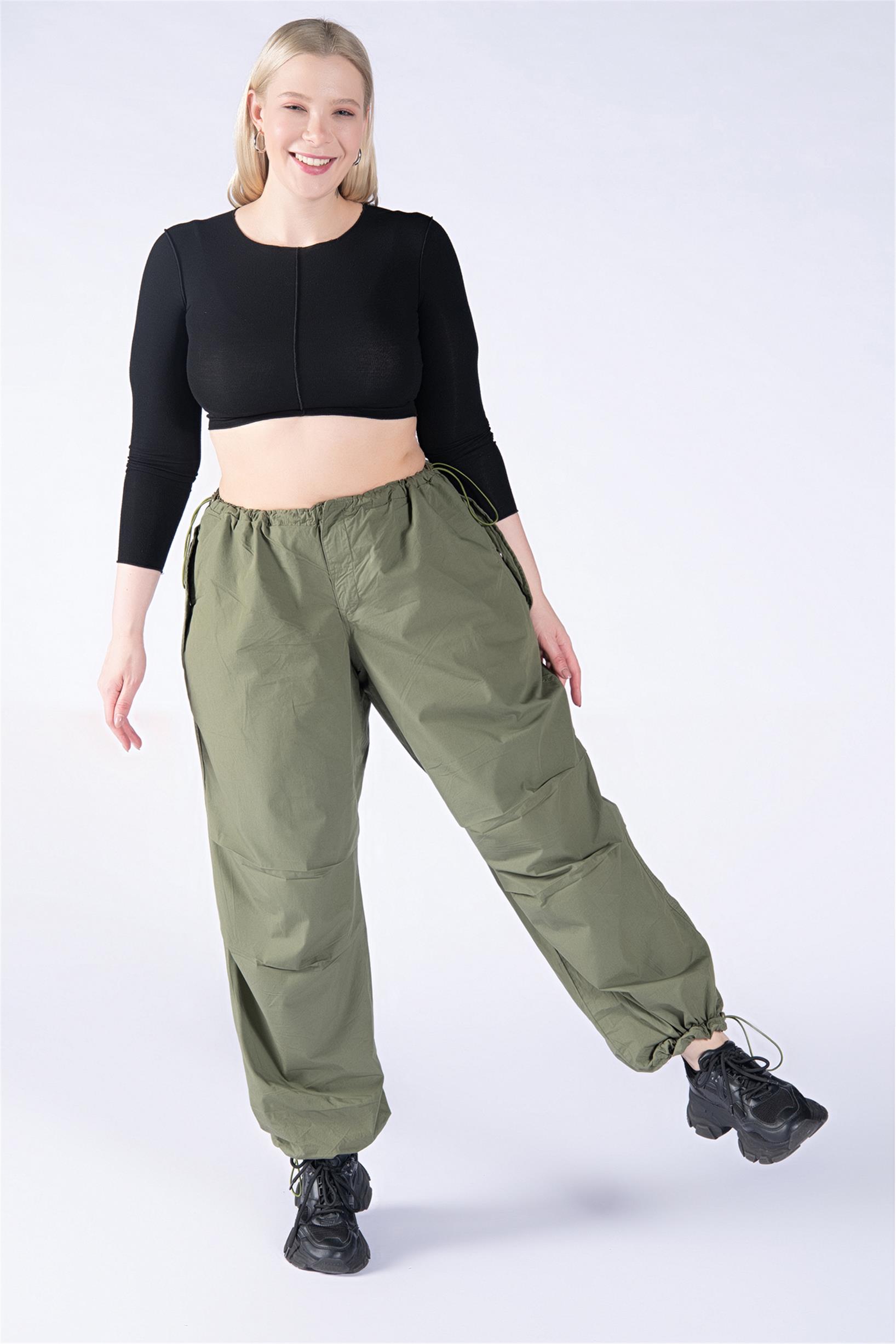 Büyük Beden Koyu Yeşil Stoperli Kargo Paraşüt Pantolon