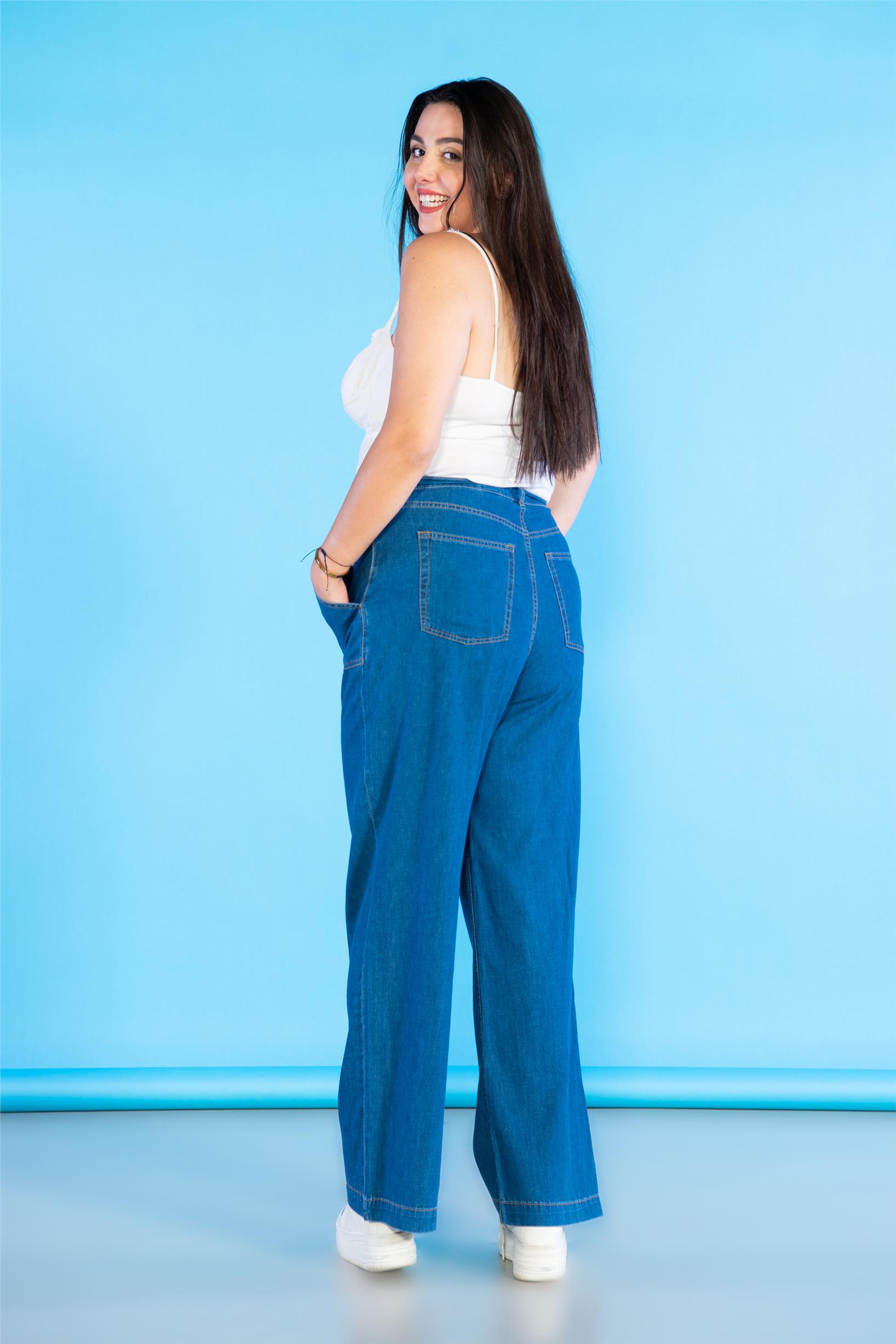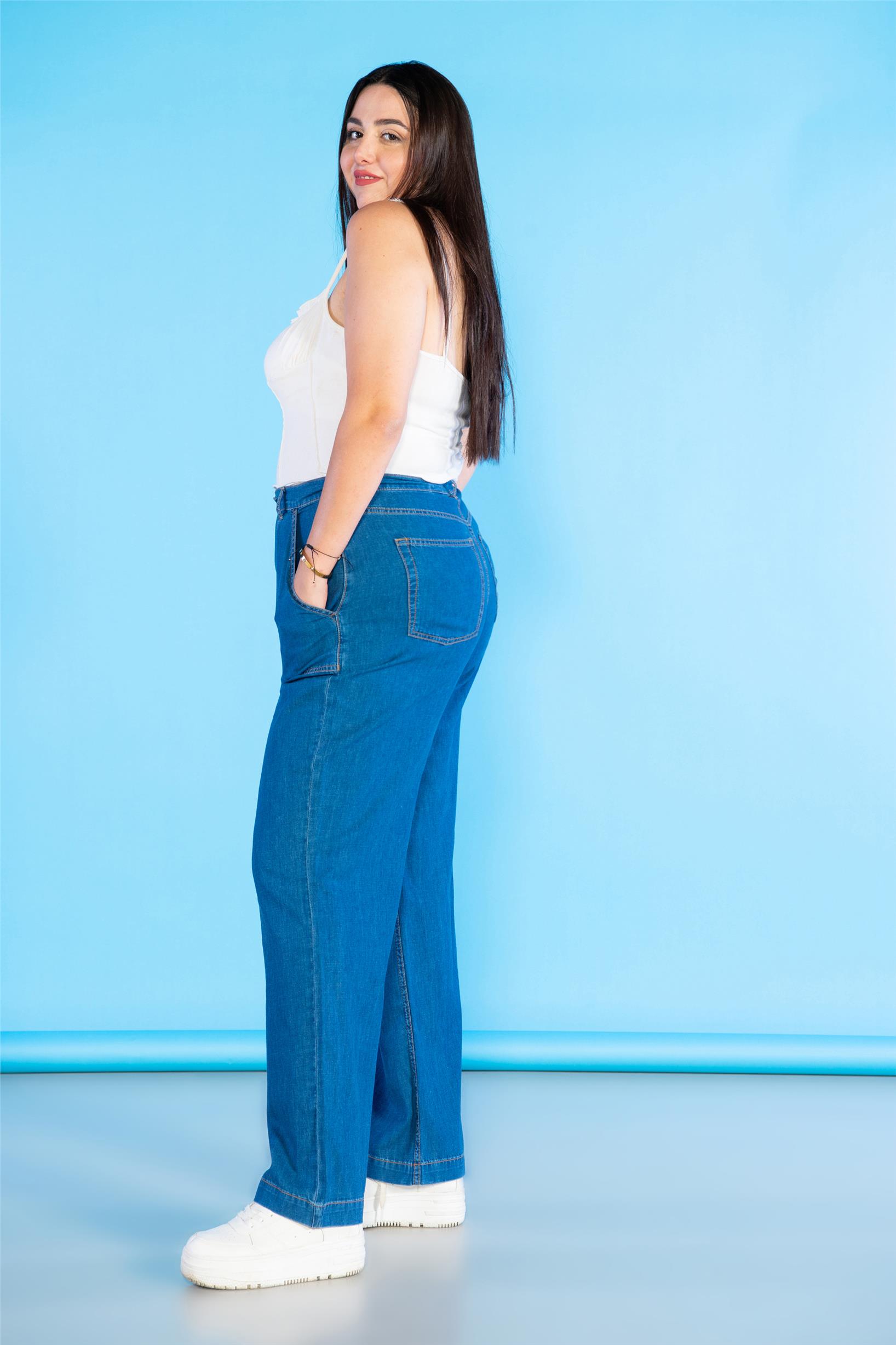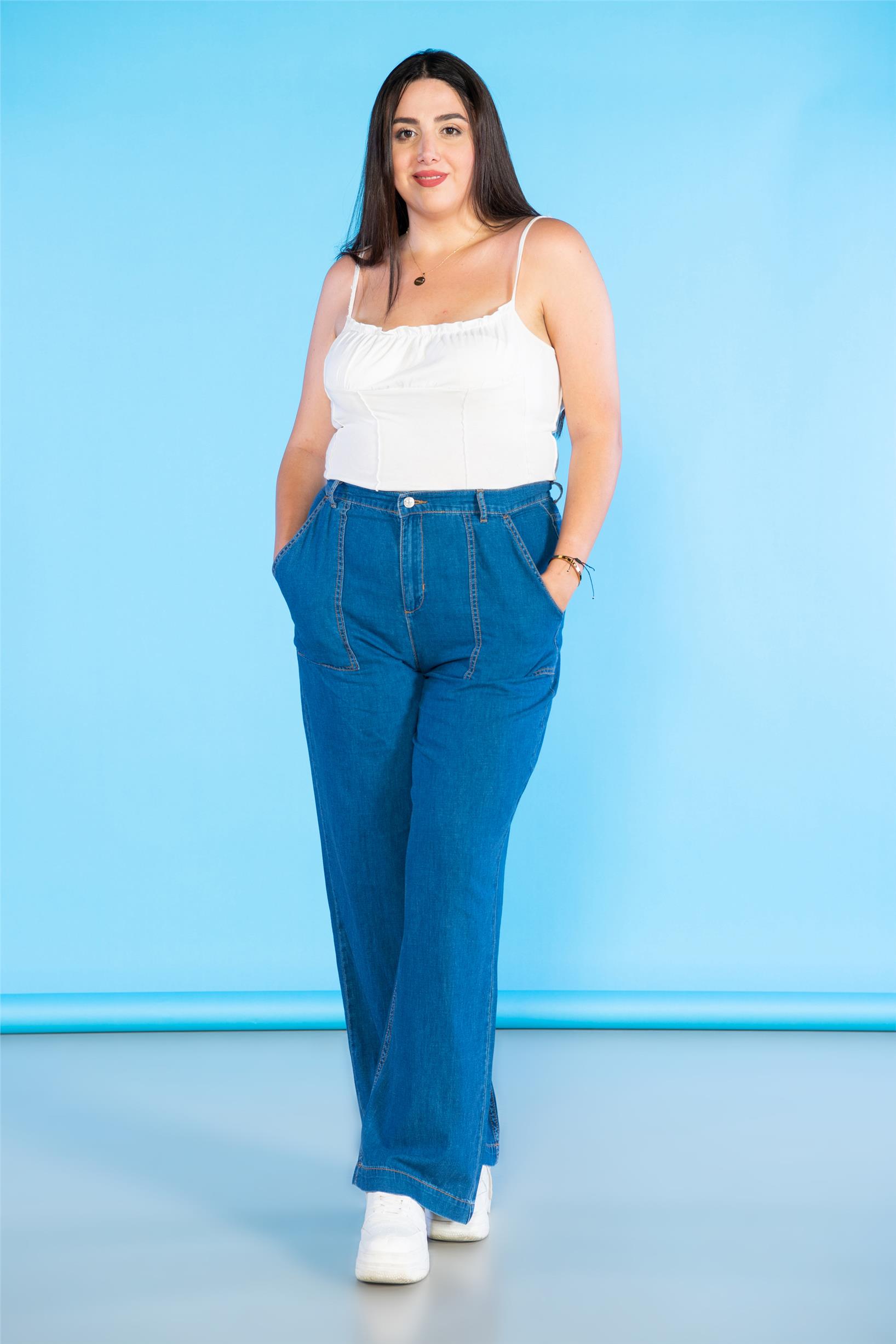 Büyük Beden Lacivert Yüksek Bel Wideleg Pantolon