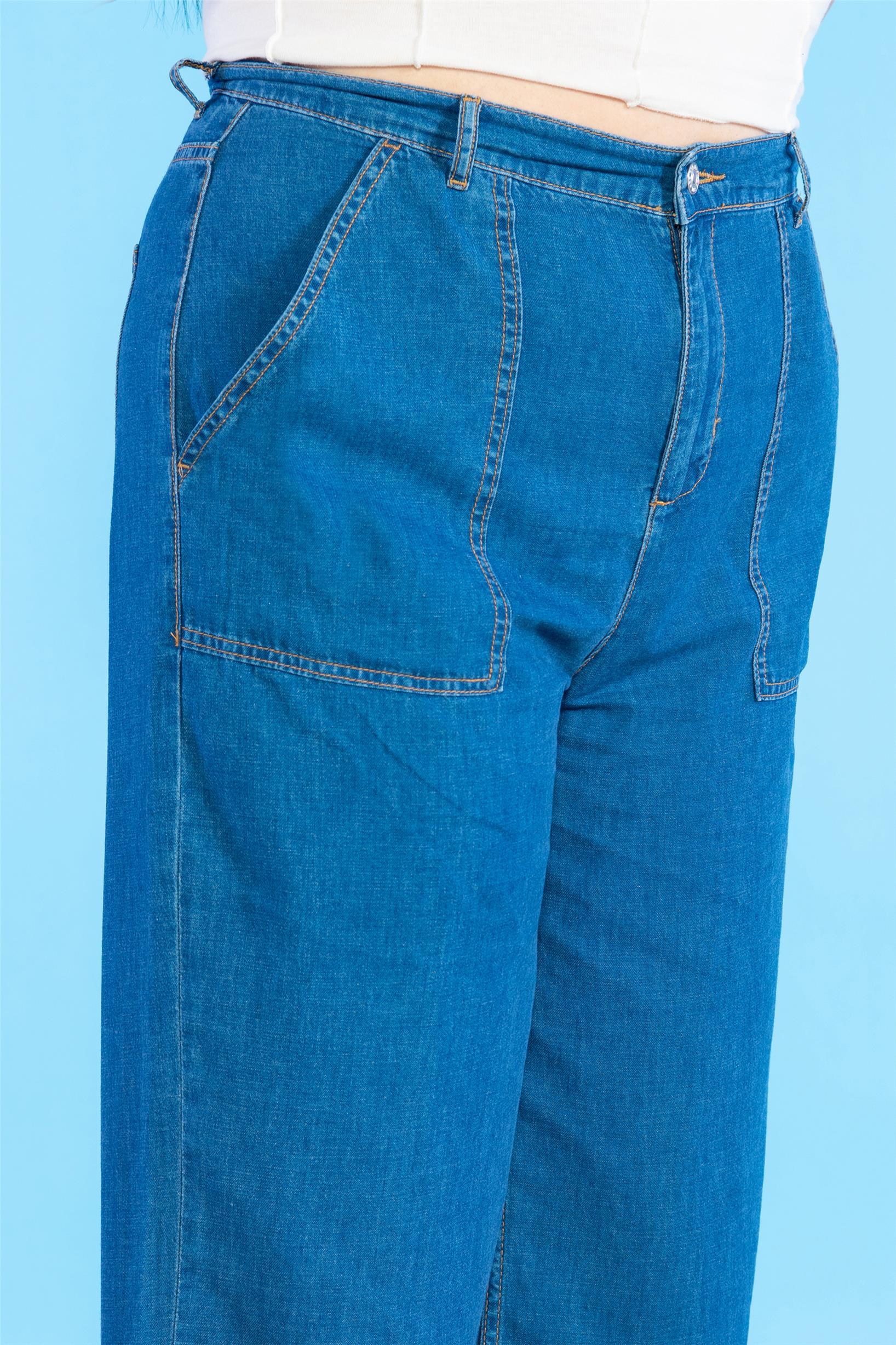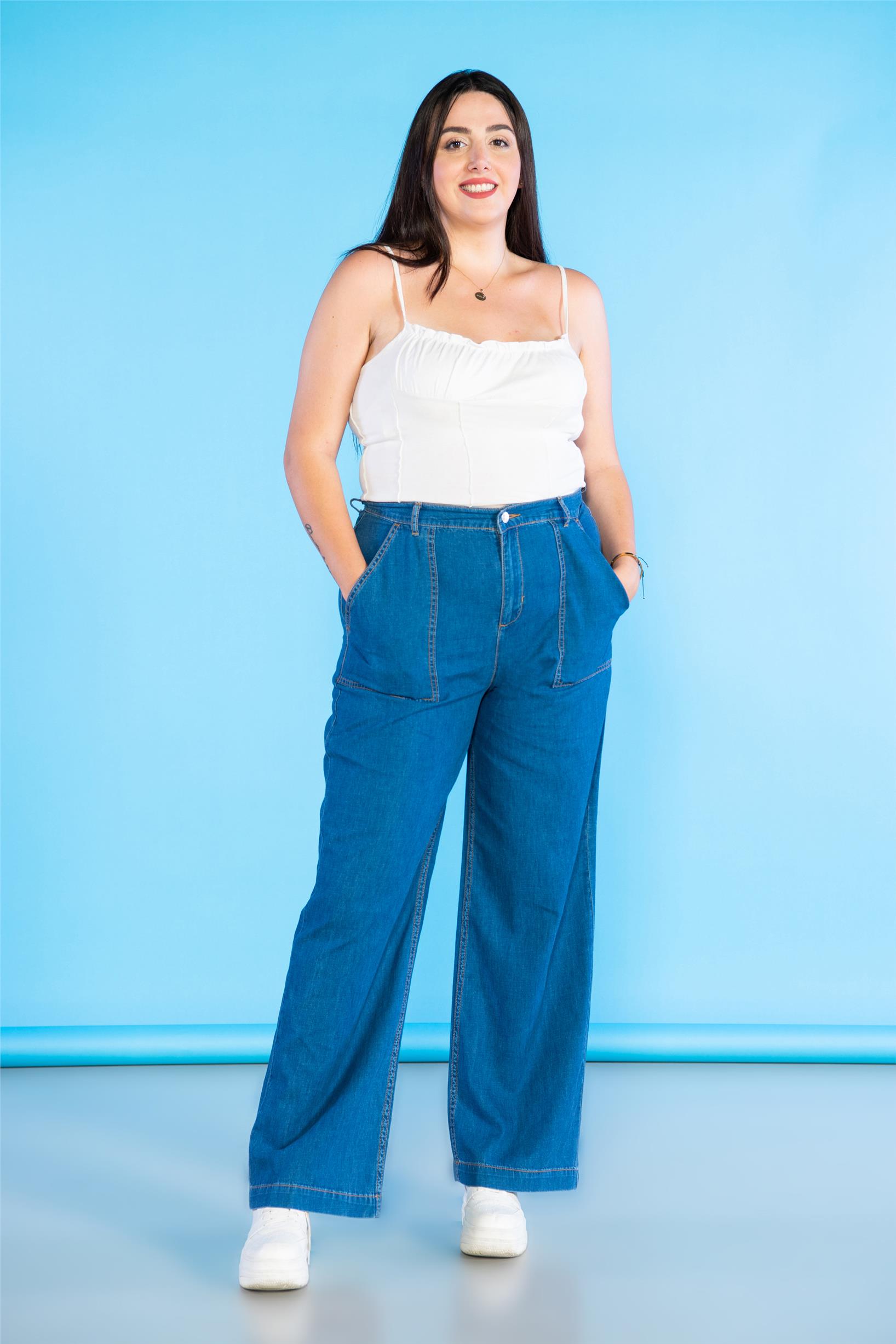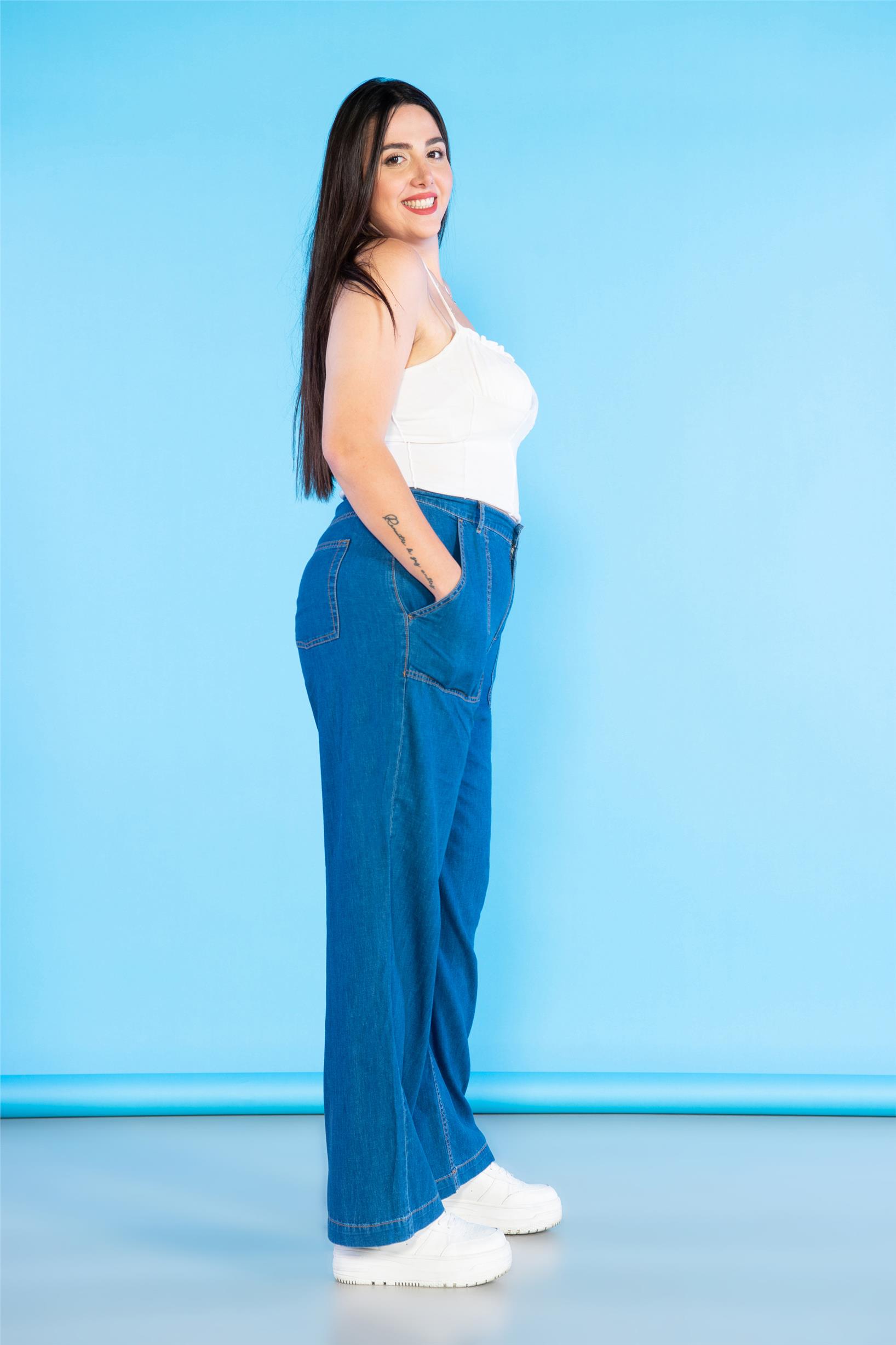 Büyük Beden Lacivert Yüksek Bel Wideleg Pantolon