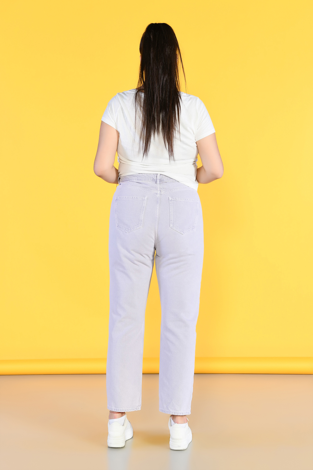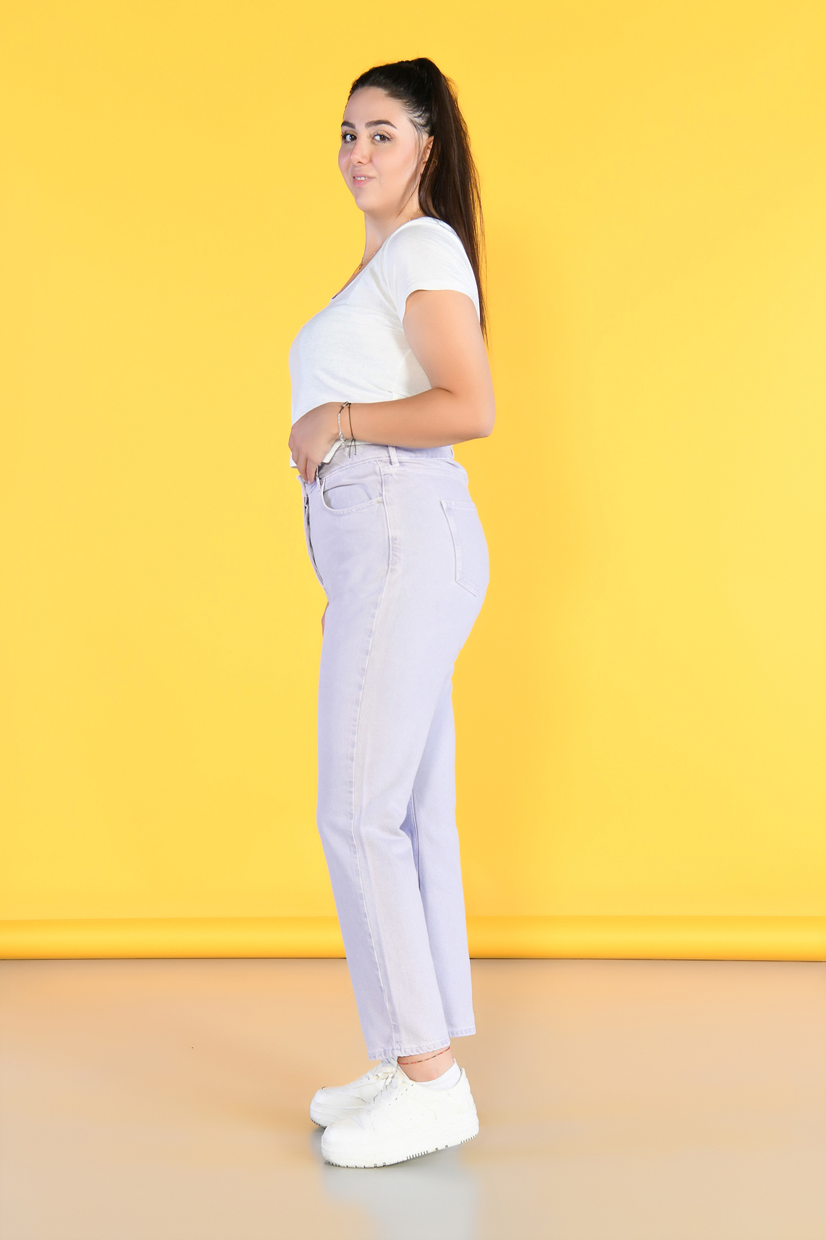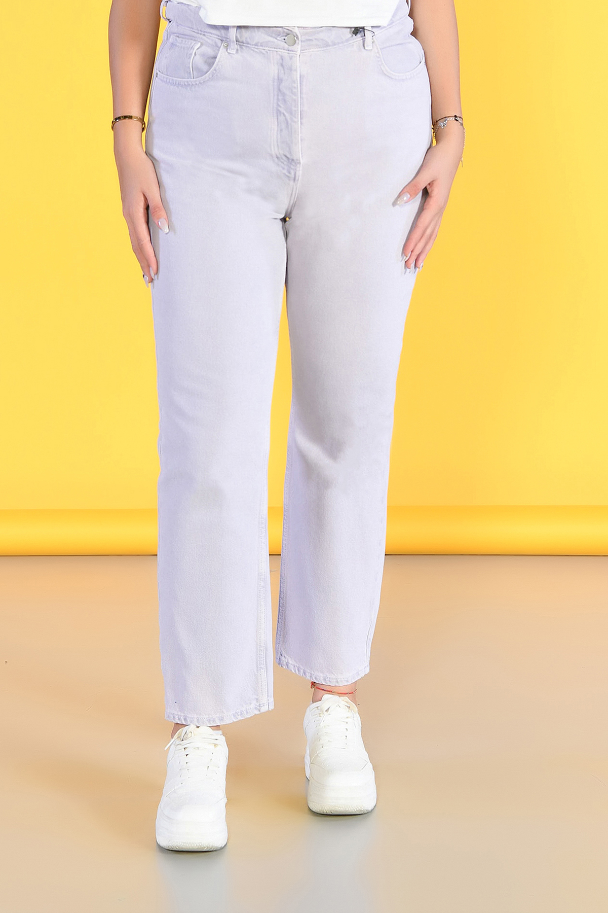Büyük Beden Lila Yüksek Bel Wide Leg Jeans
