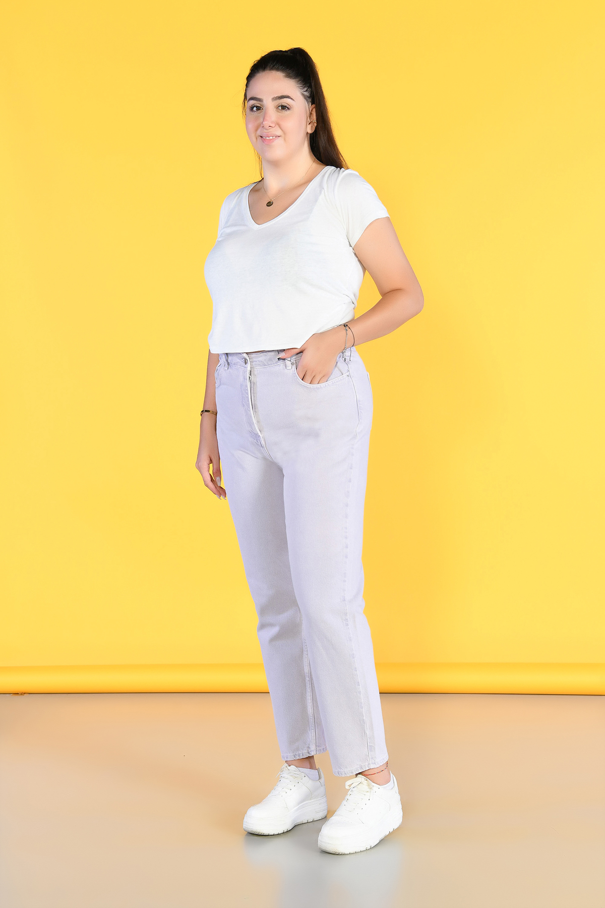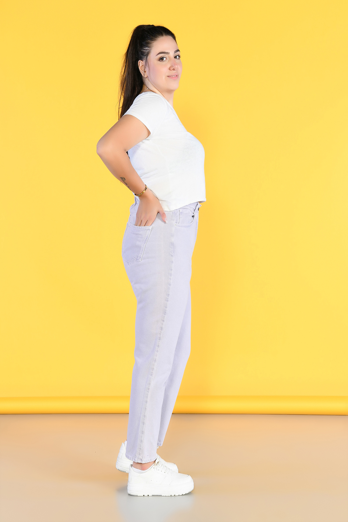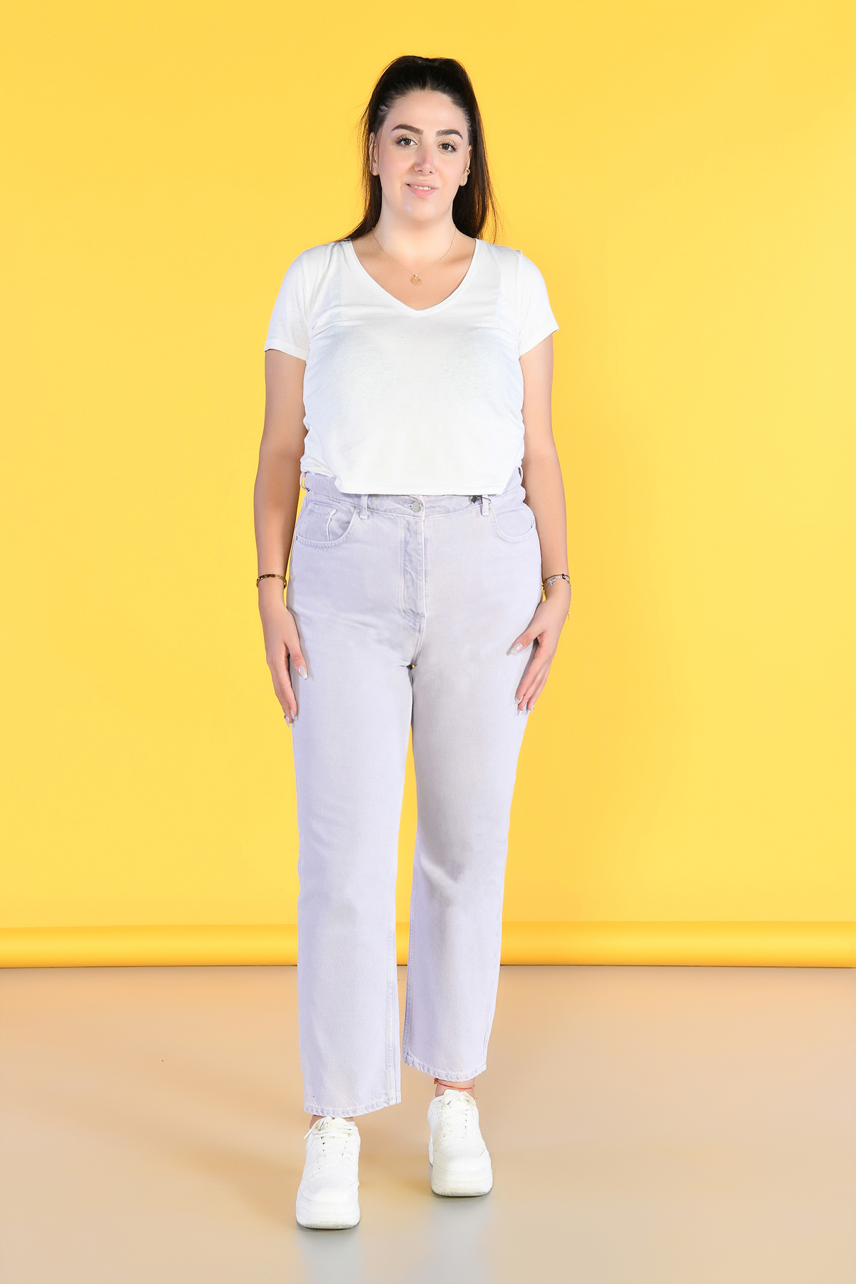Büyük Beden Lila Yüksek Bel Wide Leg Jeans