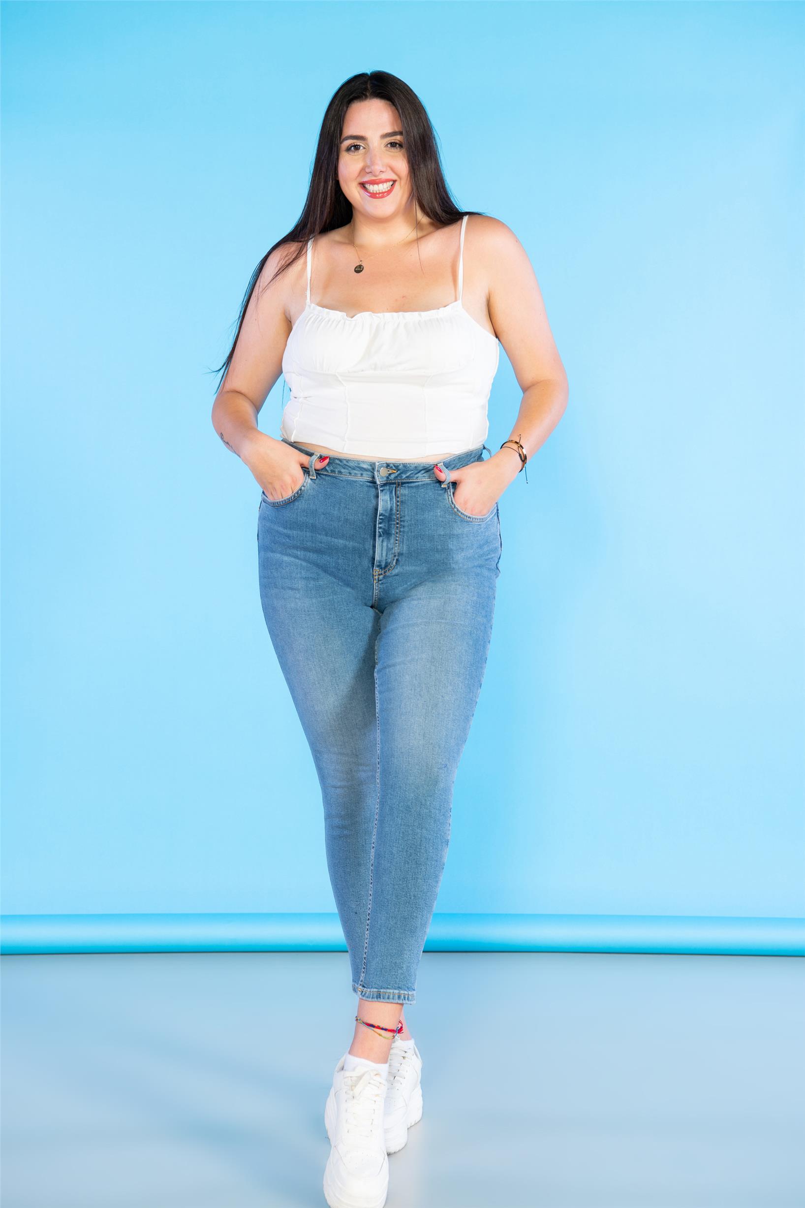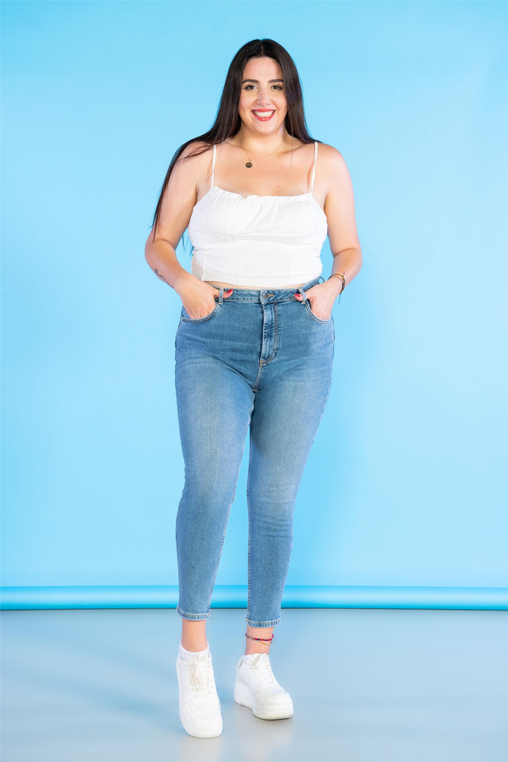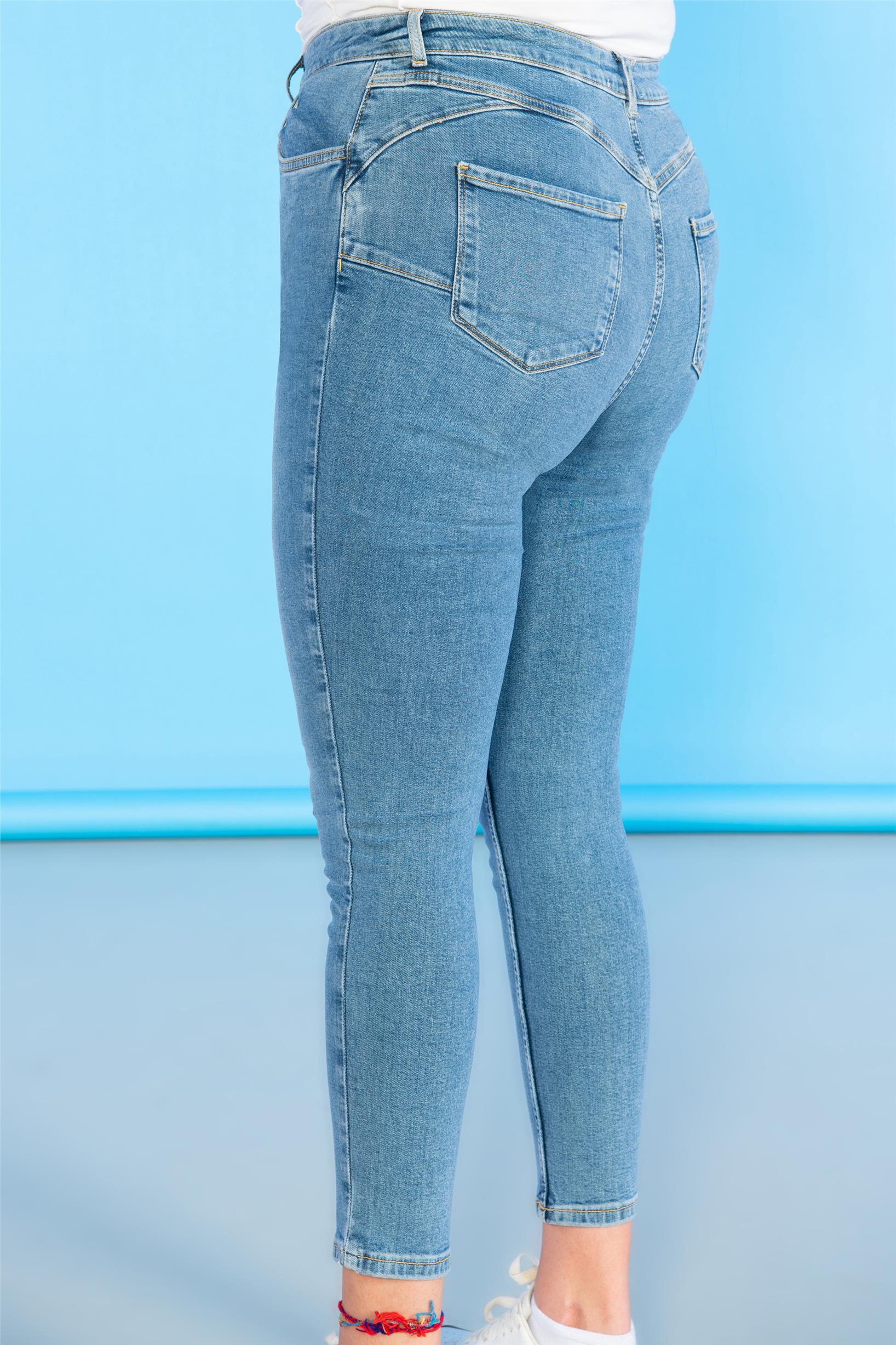 Büyük Beden Mavi Yüksek Bel Skinny Jeans