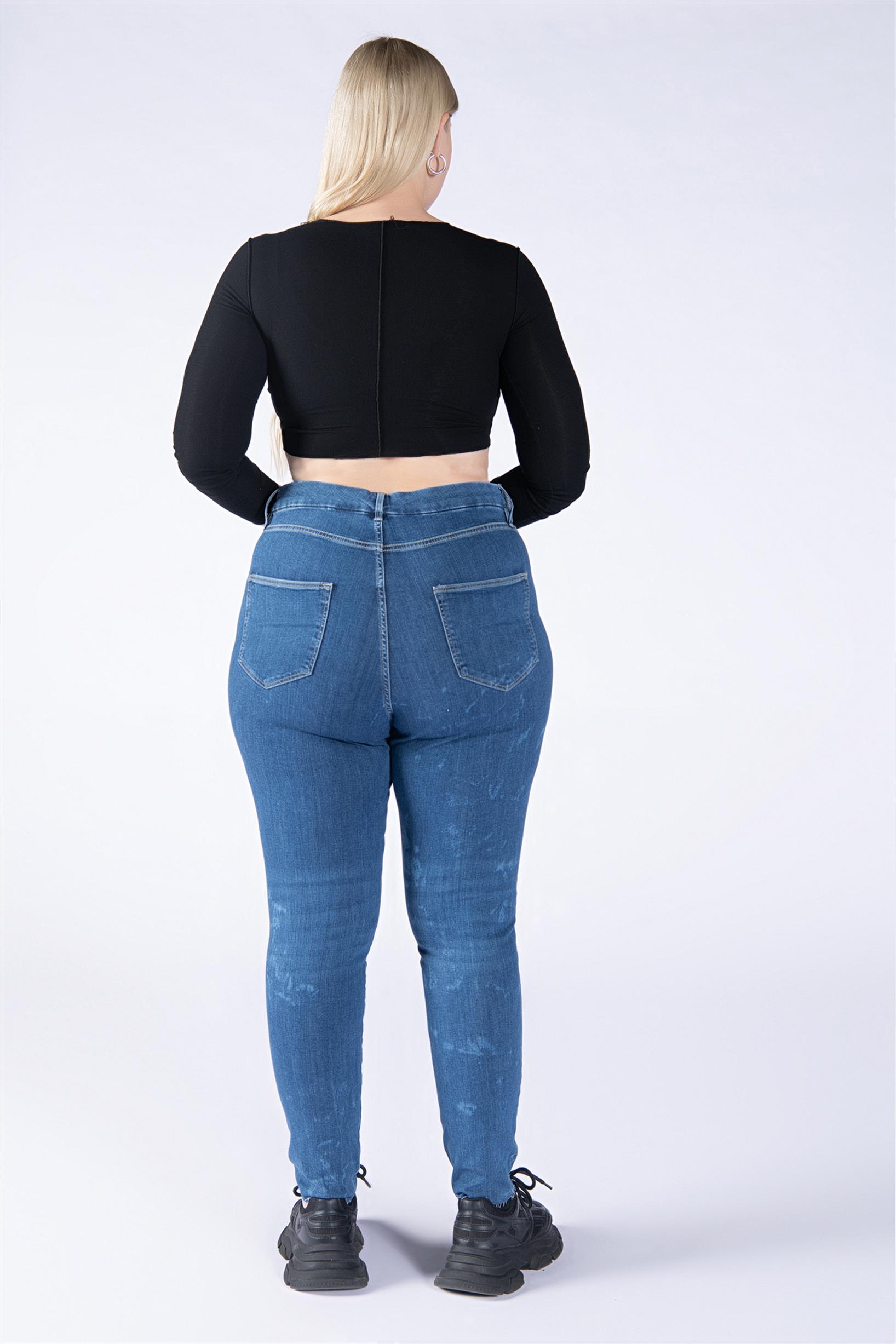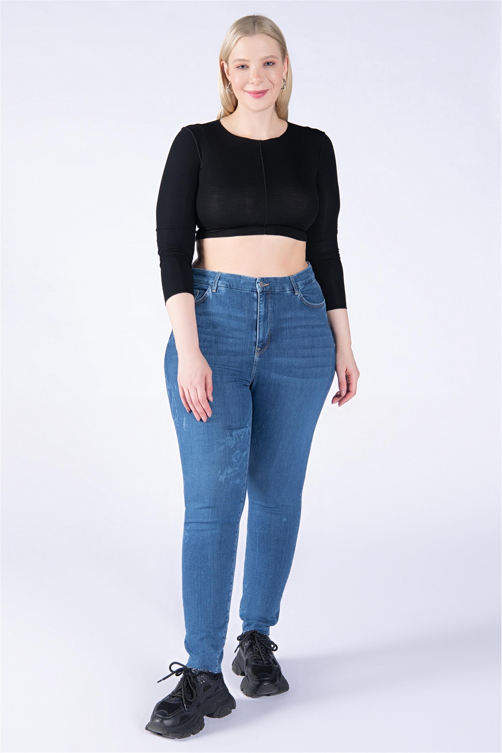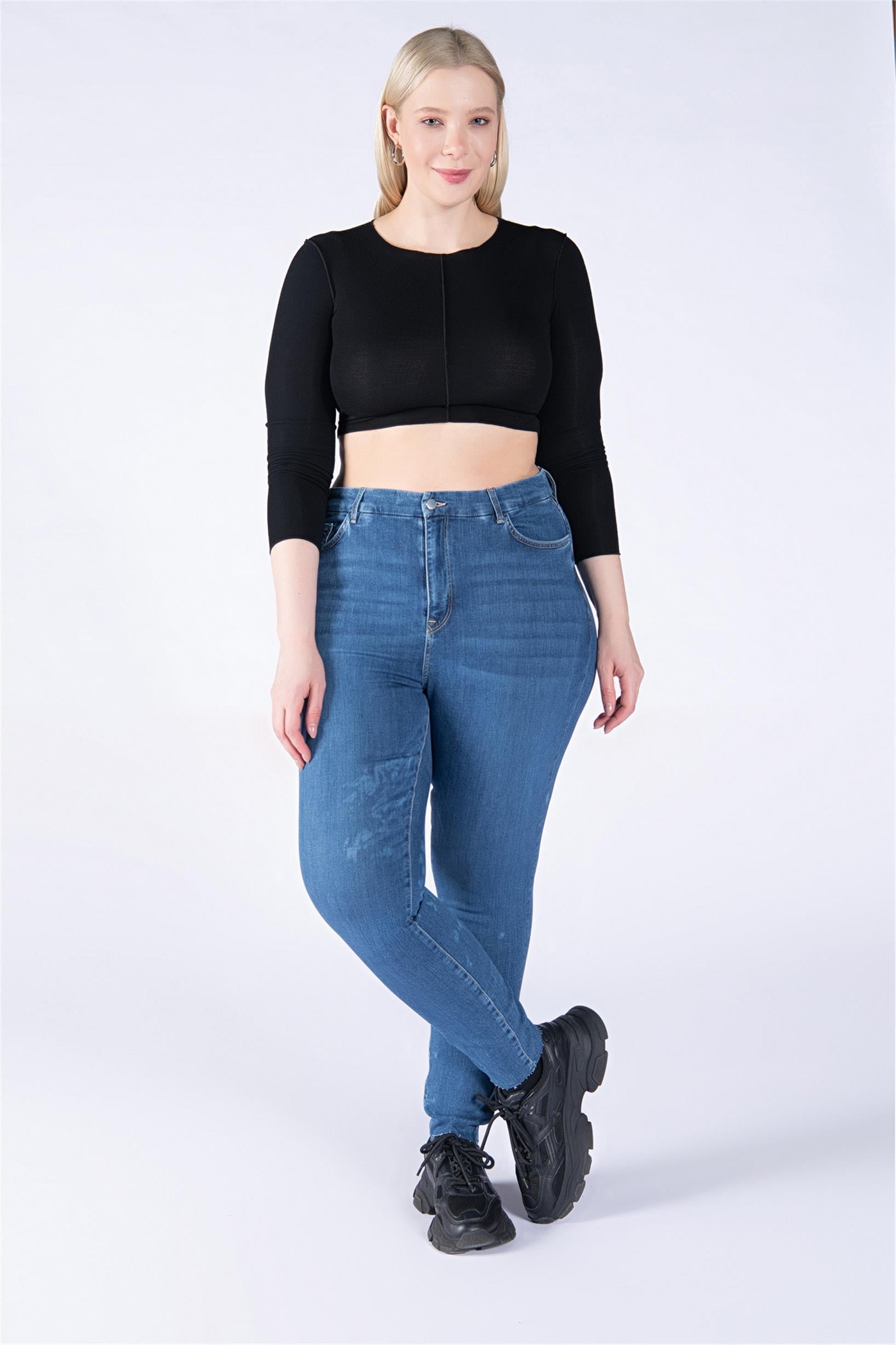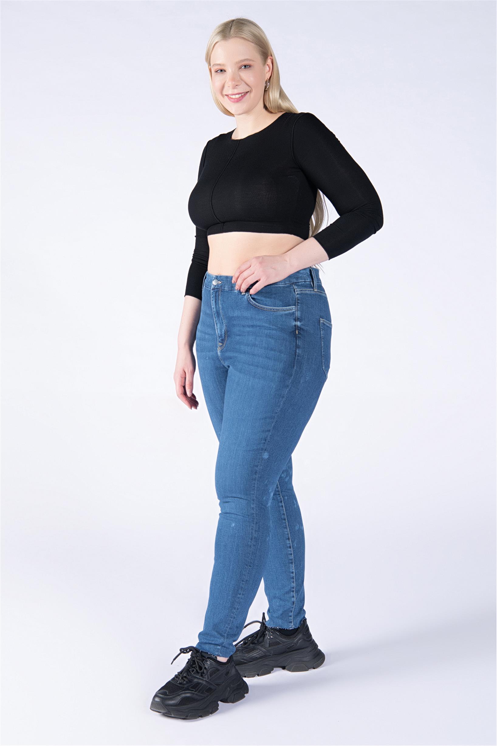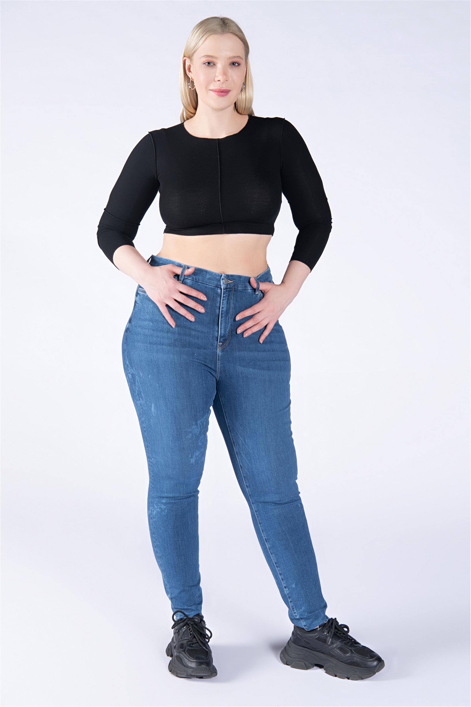 Büyük Beden Mavi Yüksek Bel Skinny Jeans