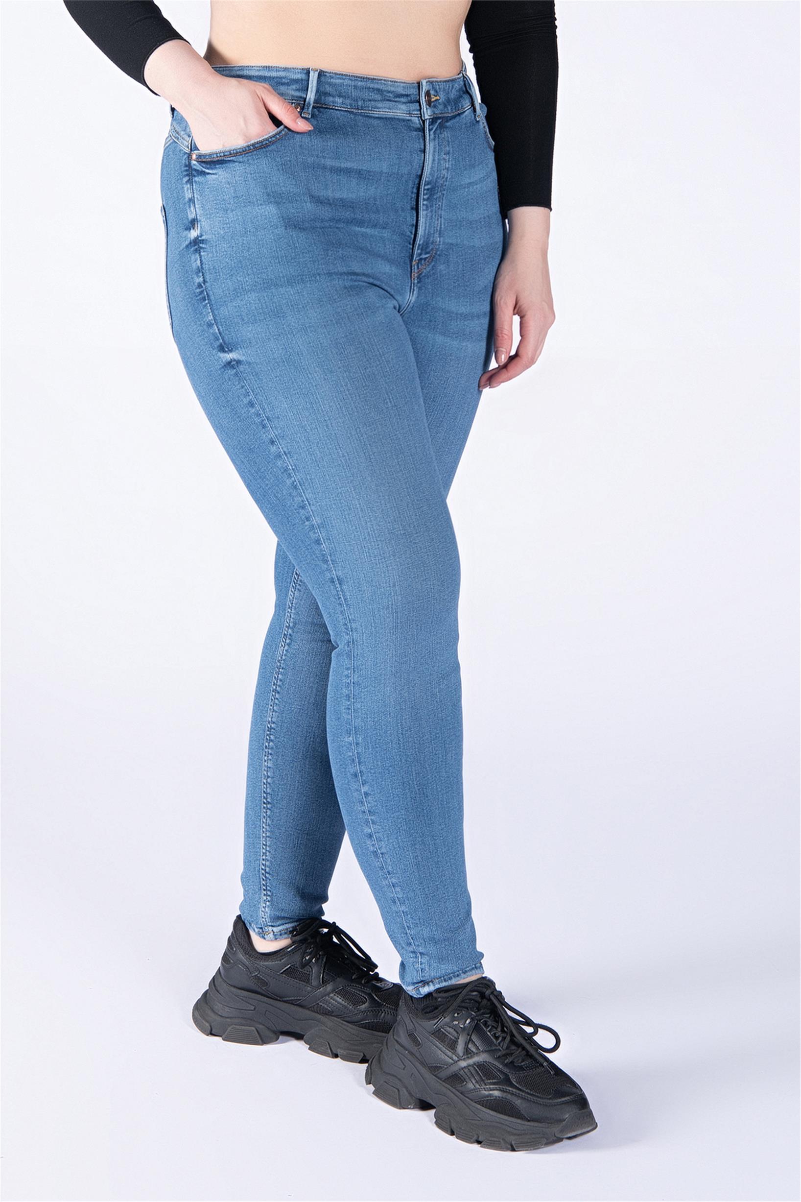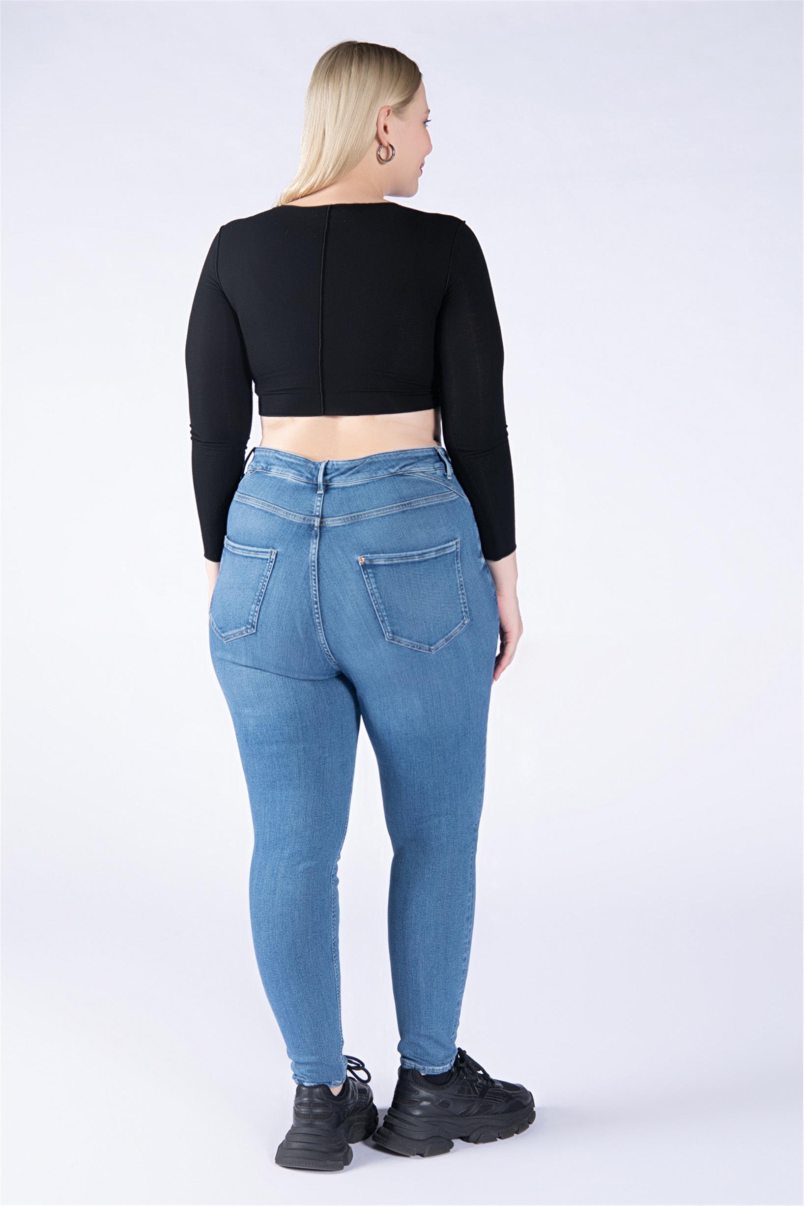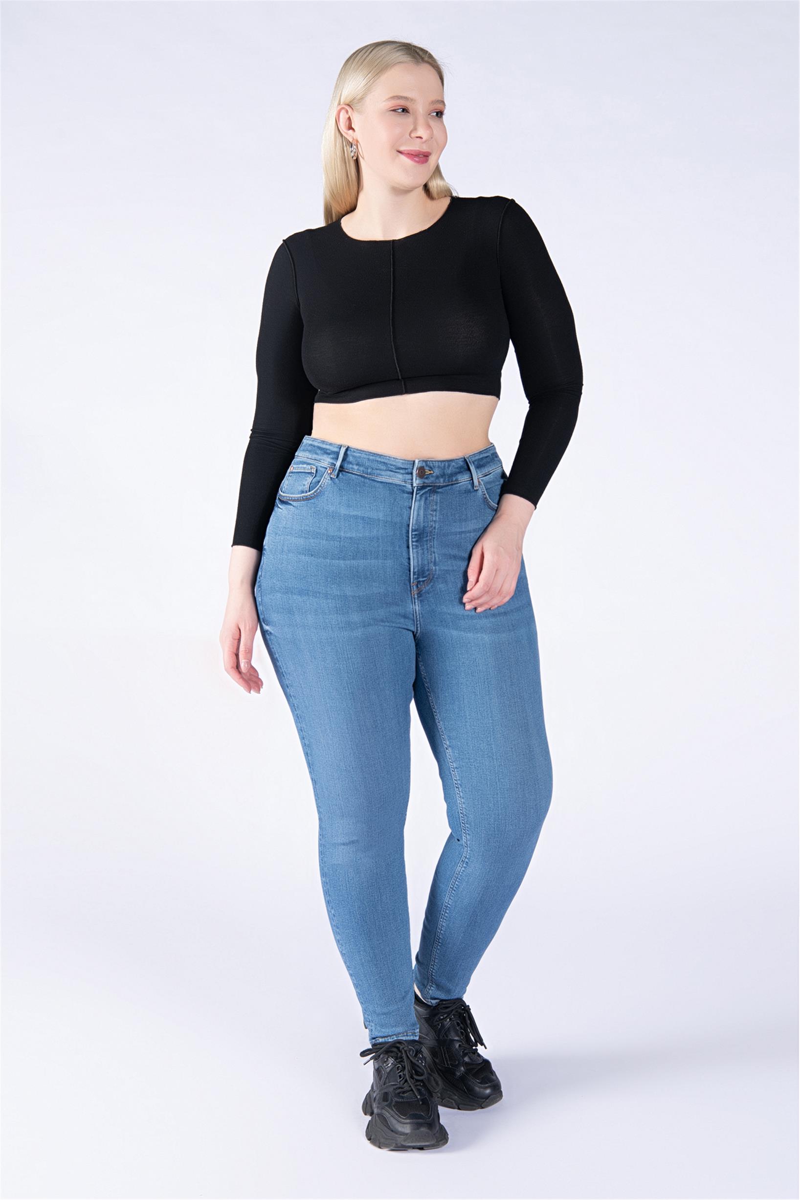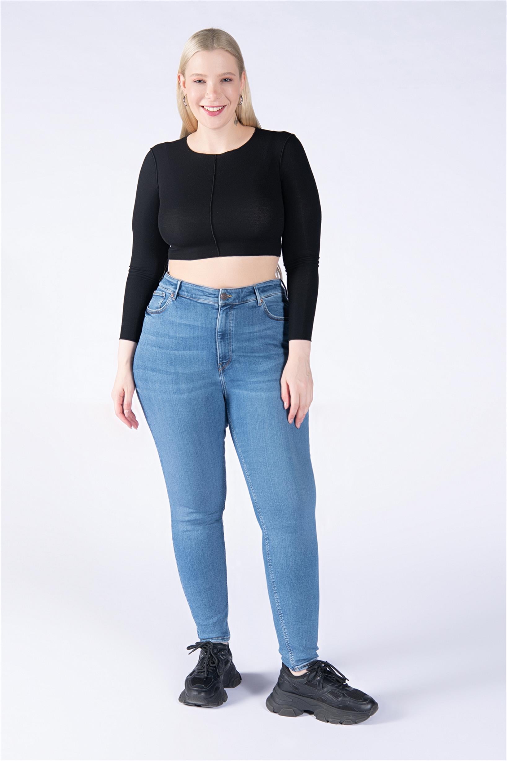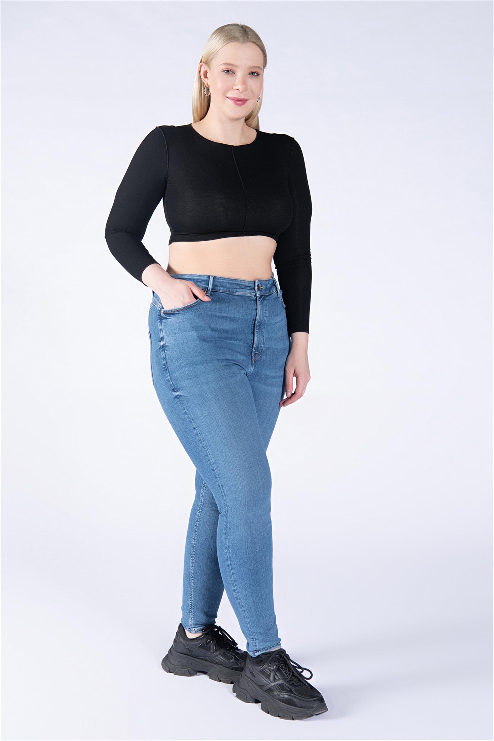 Büyük Beden Mavi Yüksek Bel Skinny Jeans