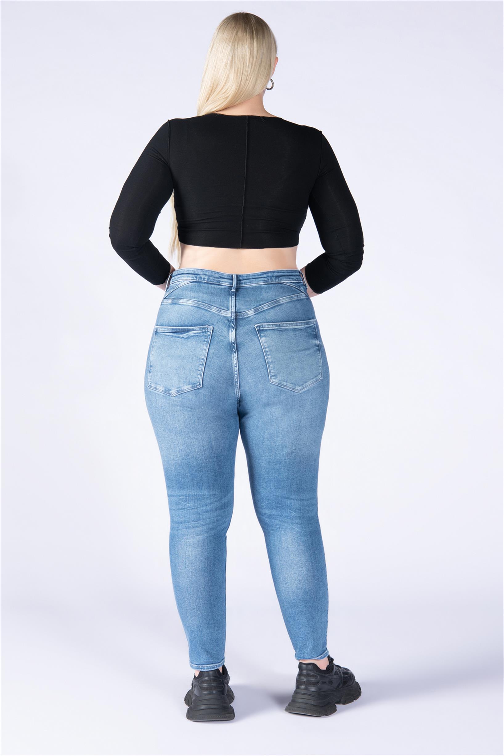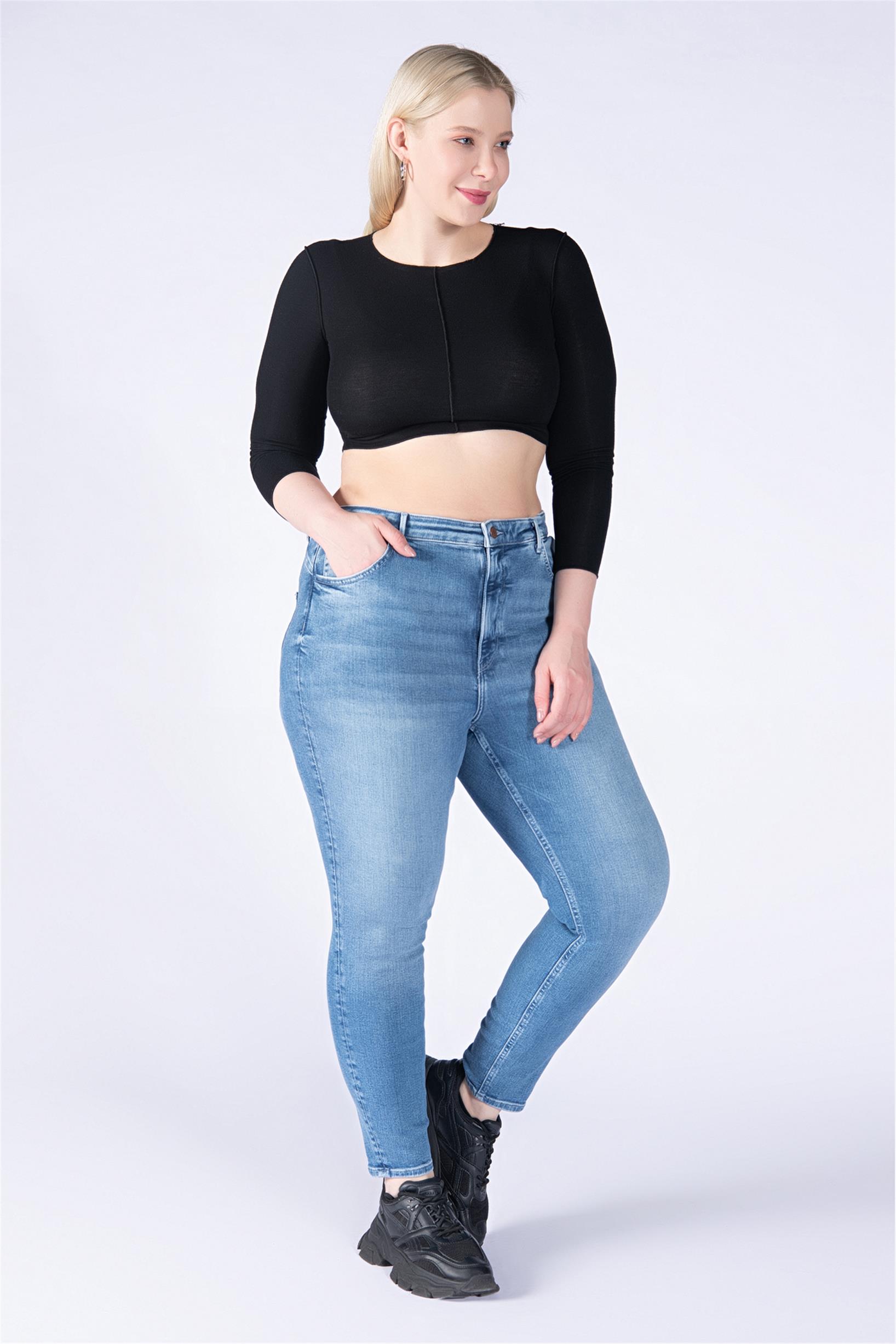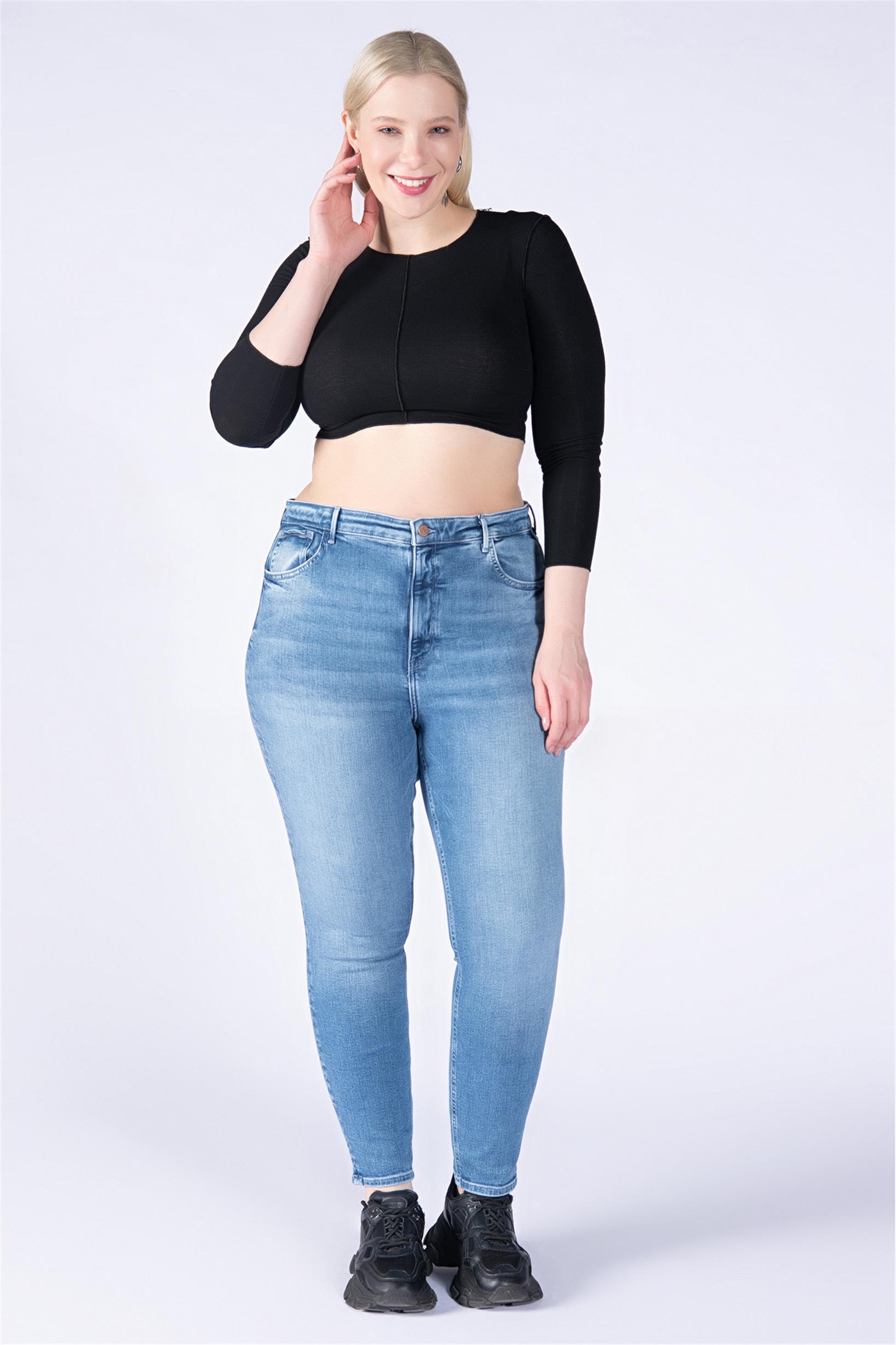 Büyük Beden Mavi Yüksek Bel Skinny Jeans