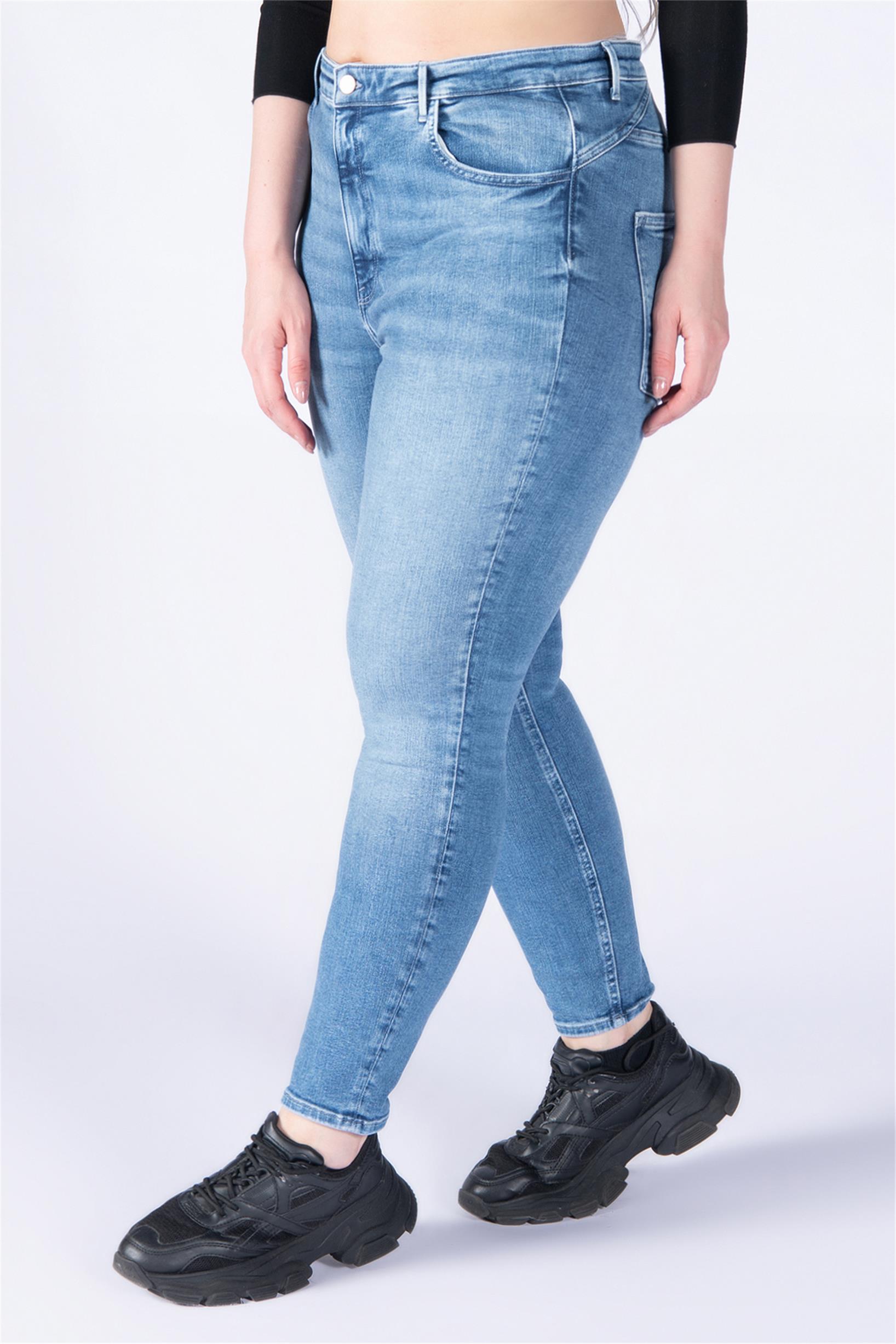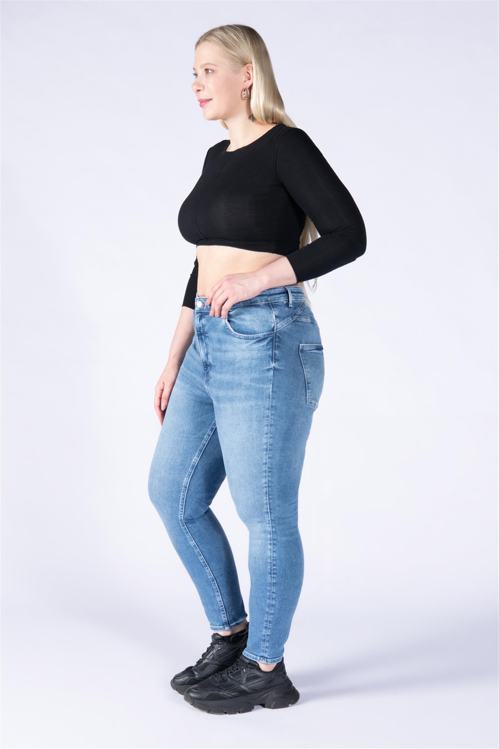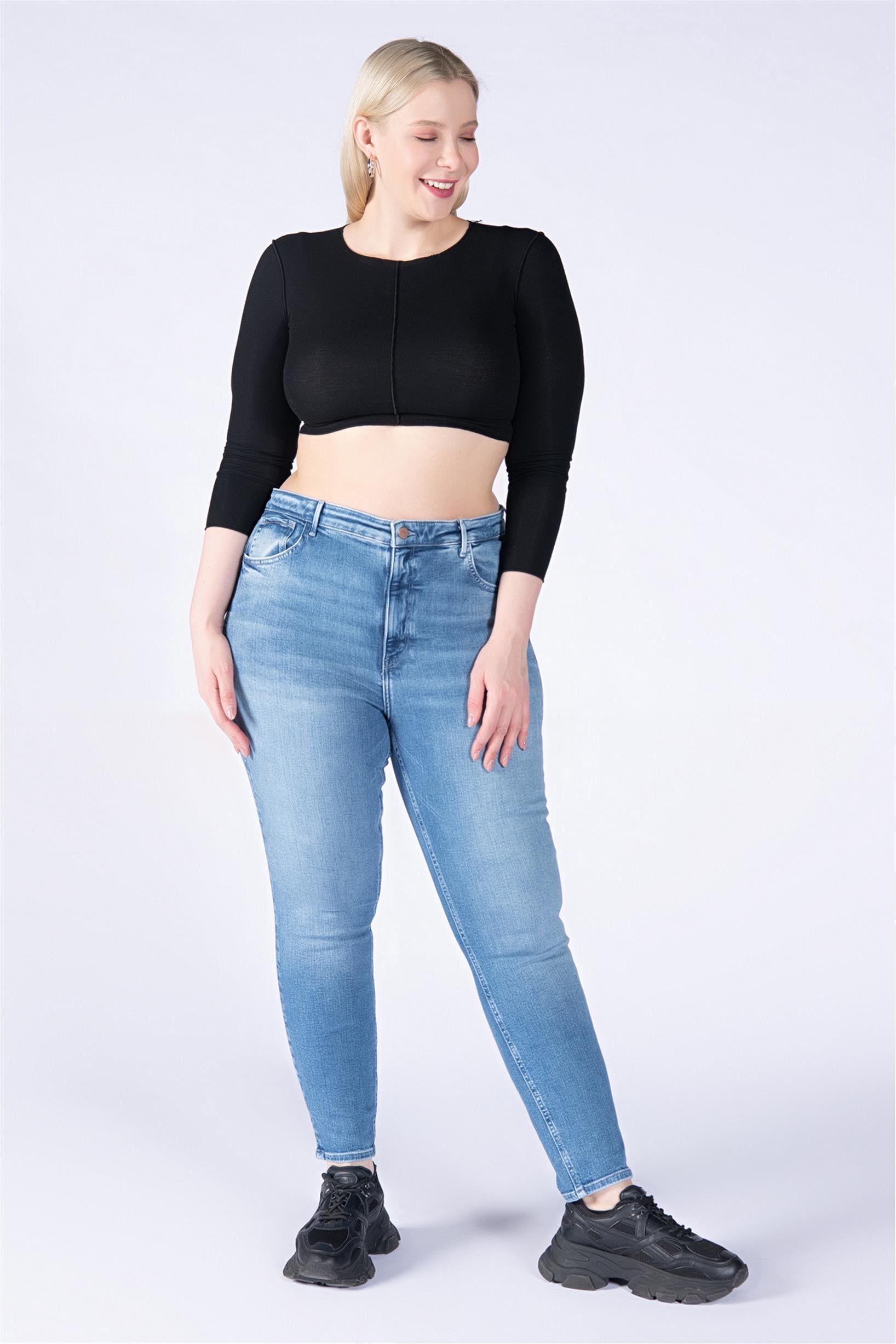 Büyük Beden Mavi Yüksek Bel Skinny Jeans