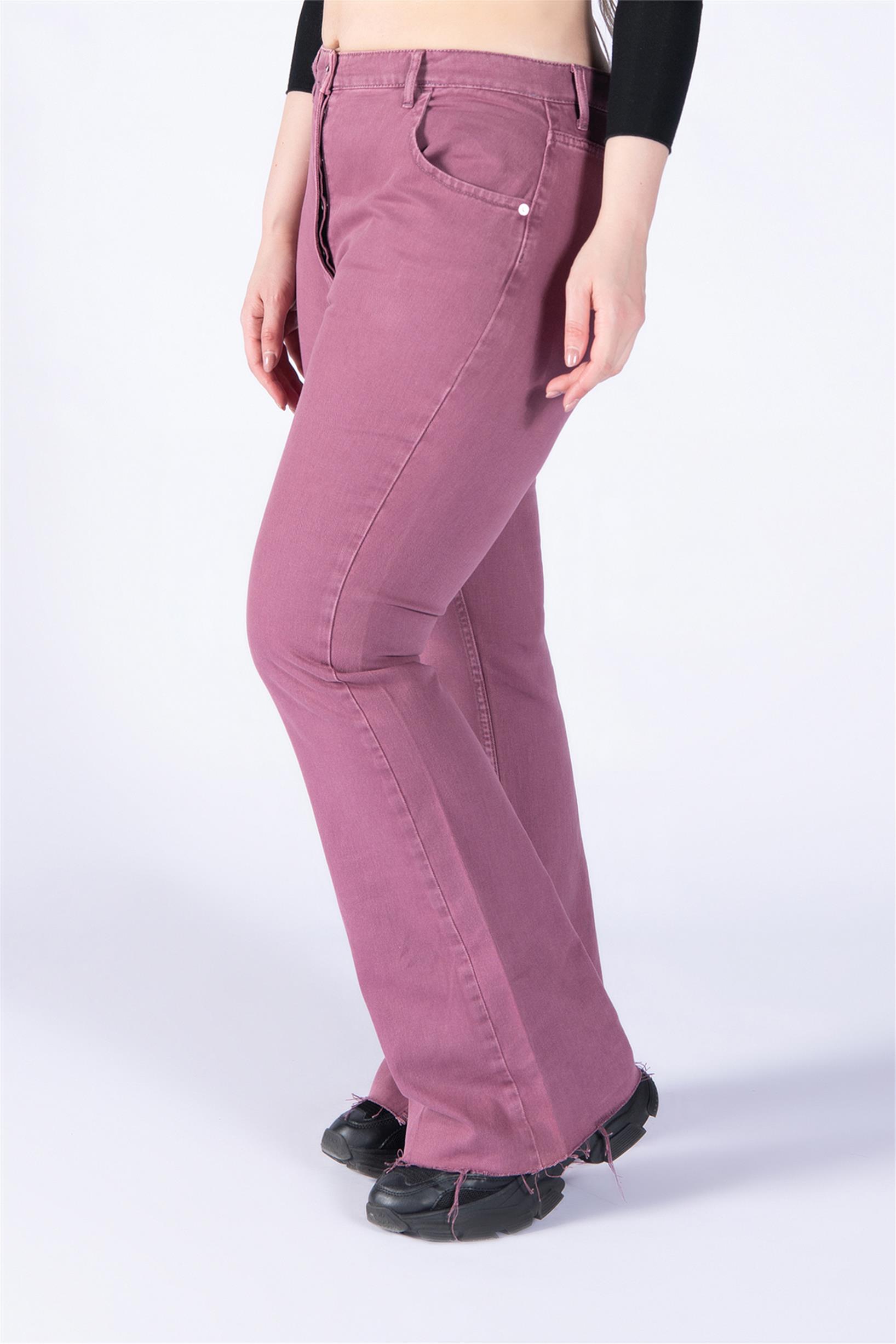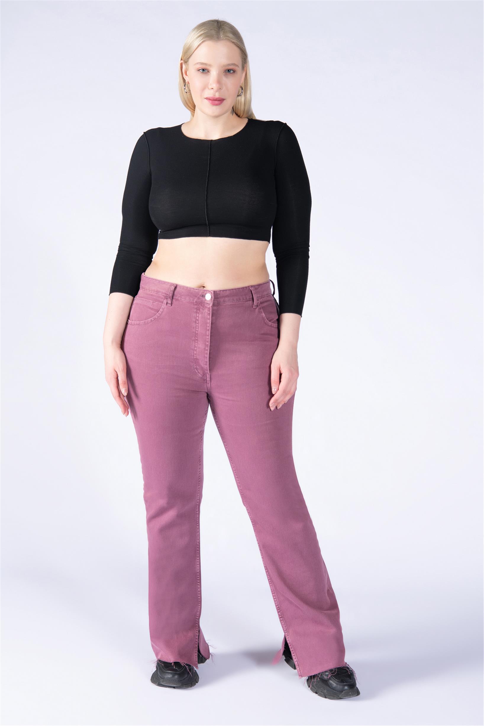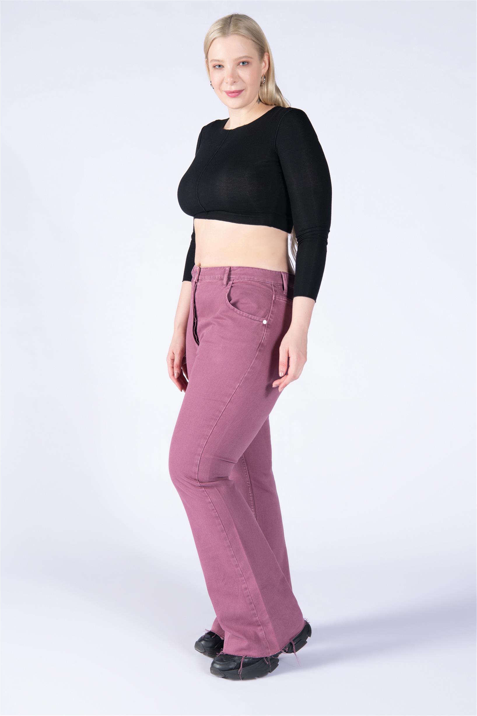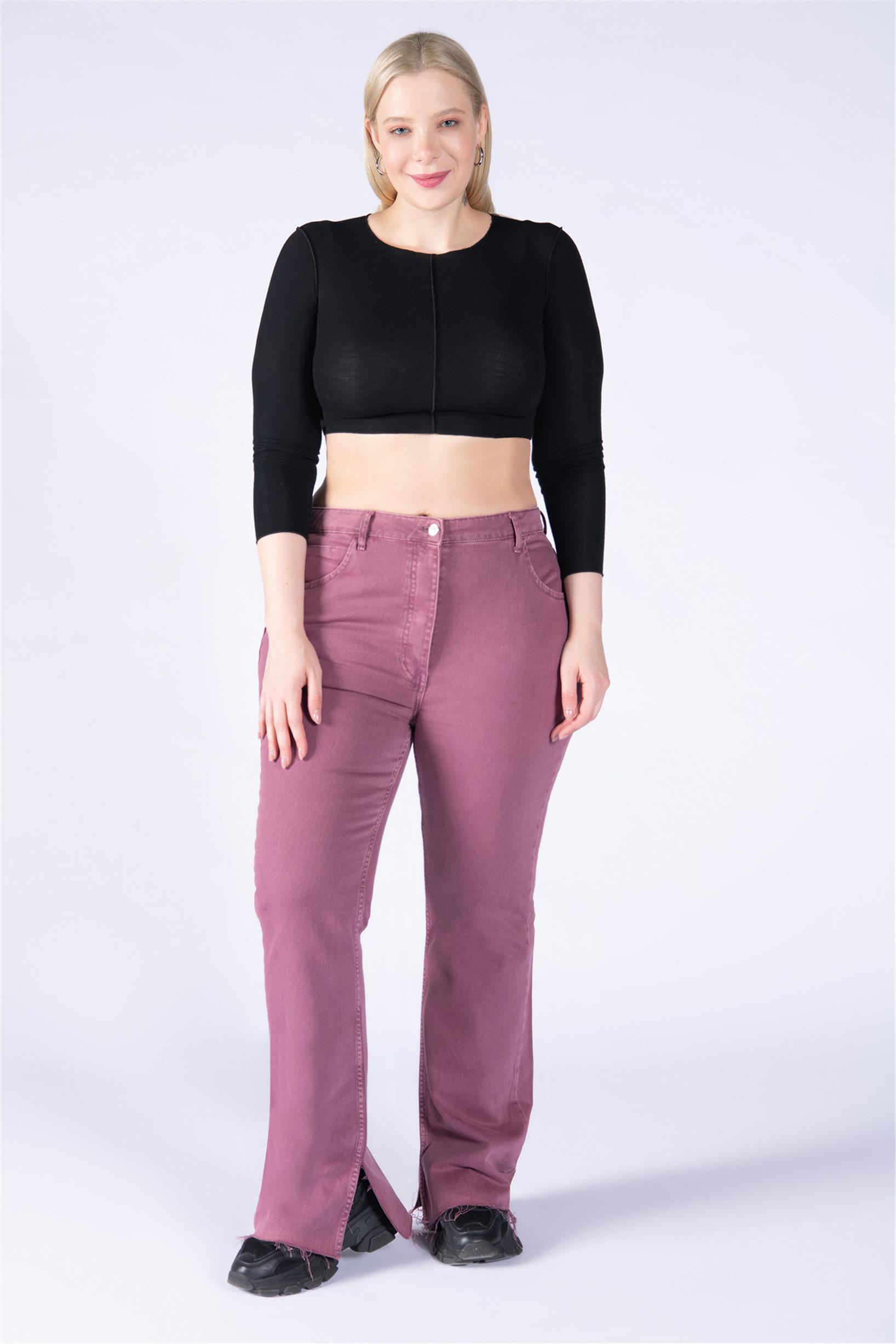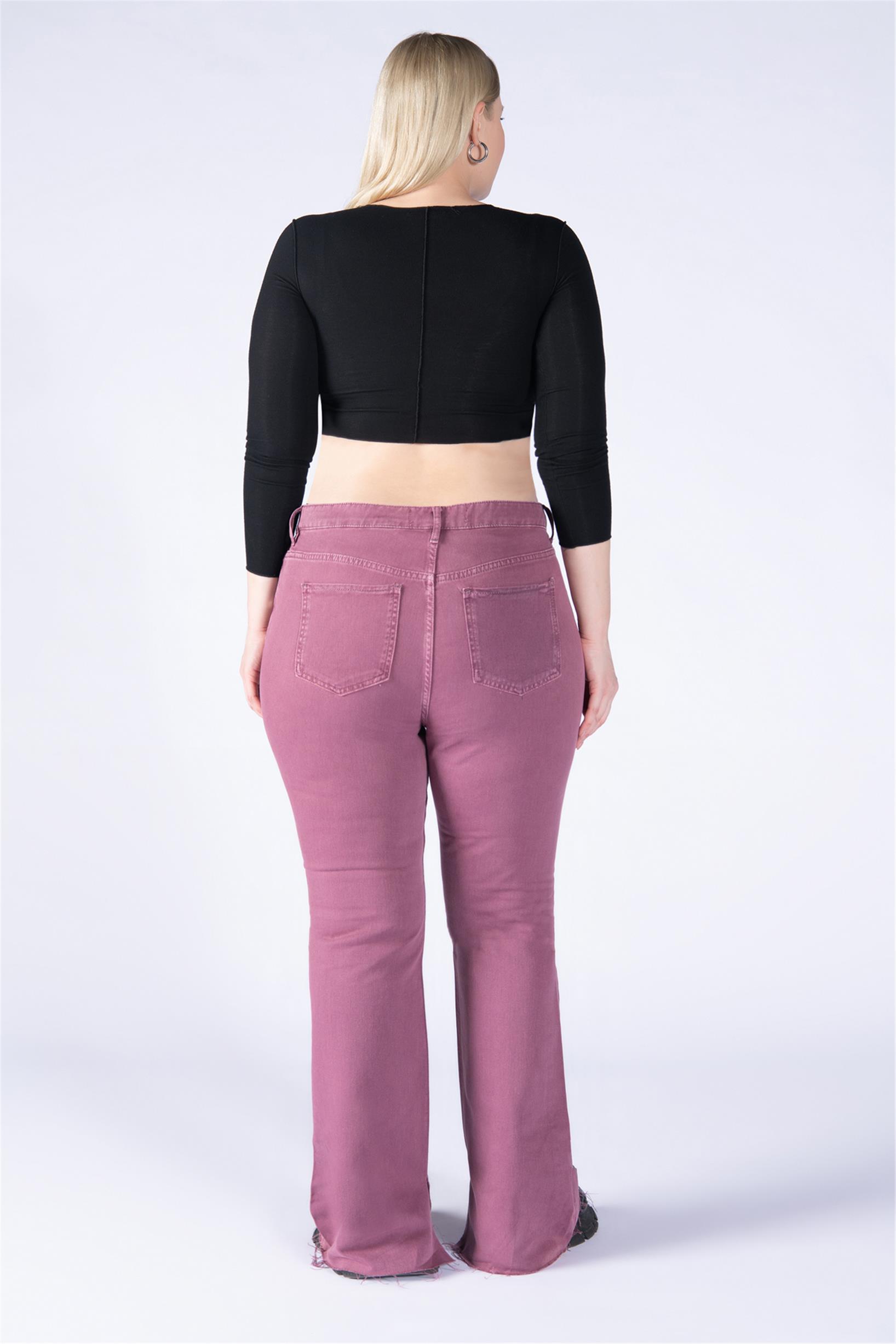 Büyük Beden Mor Yüksek Bel Paça Kesik Flare Jeans