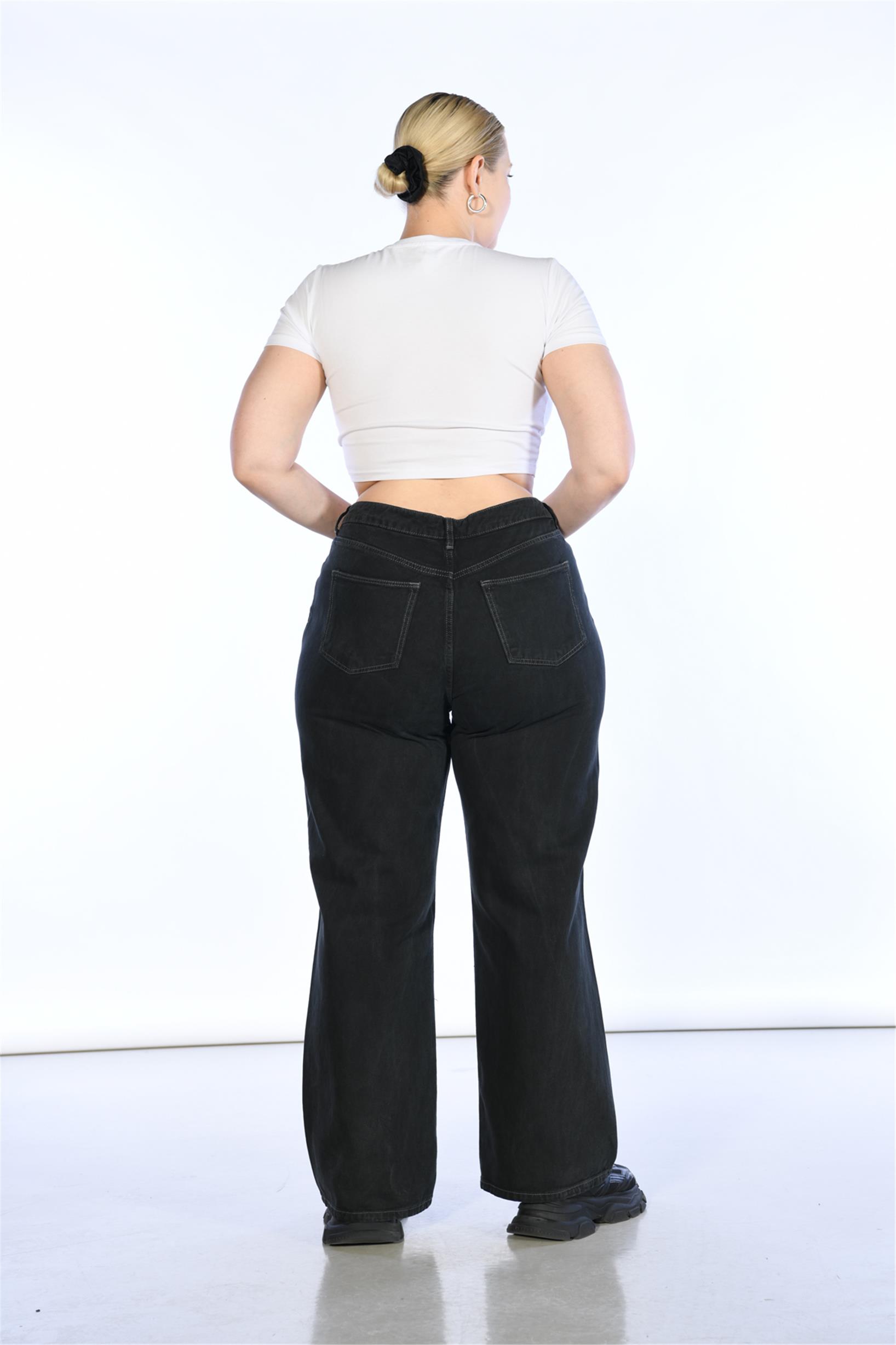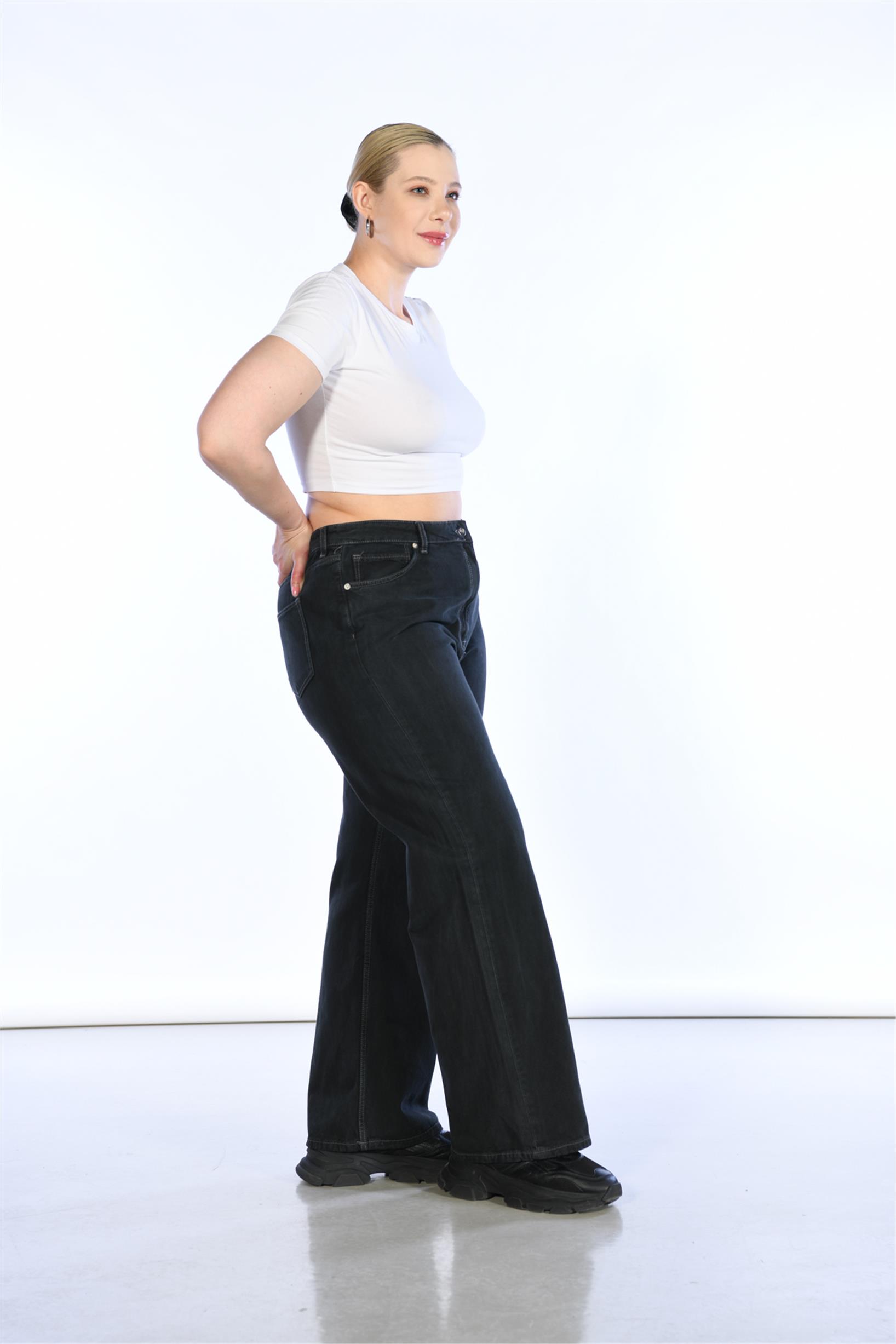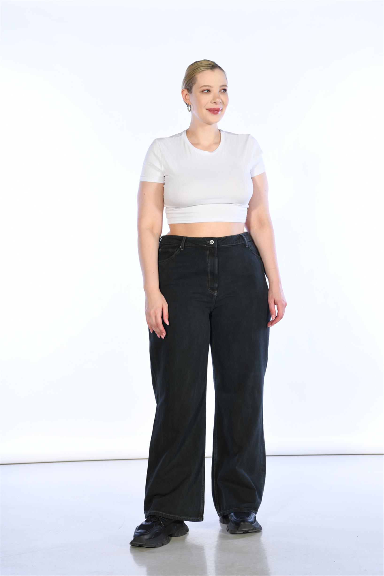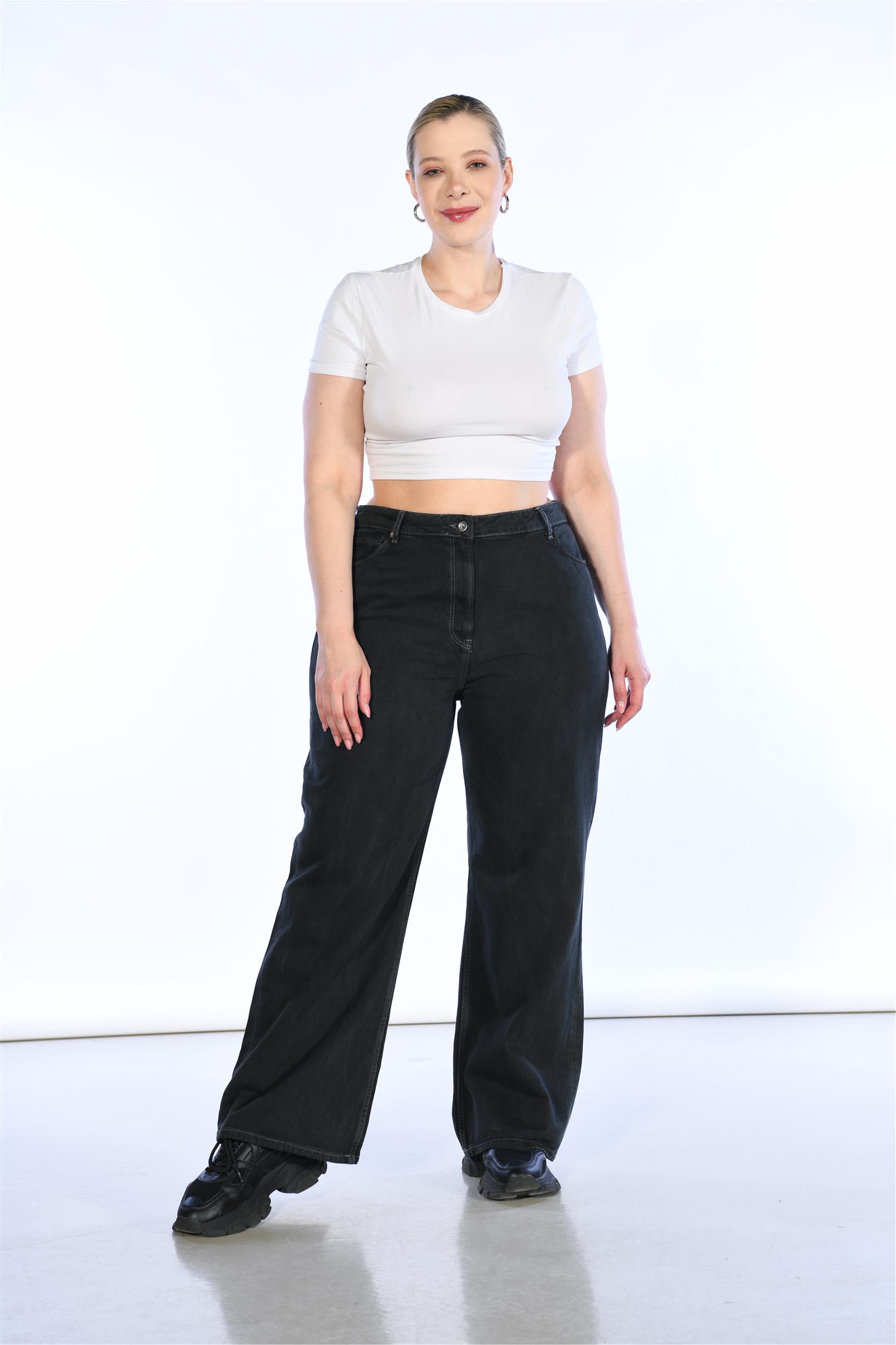 Büyük Beden Siyah Yüksek Bel Flare Jeans
