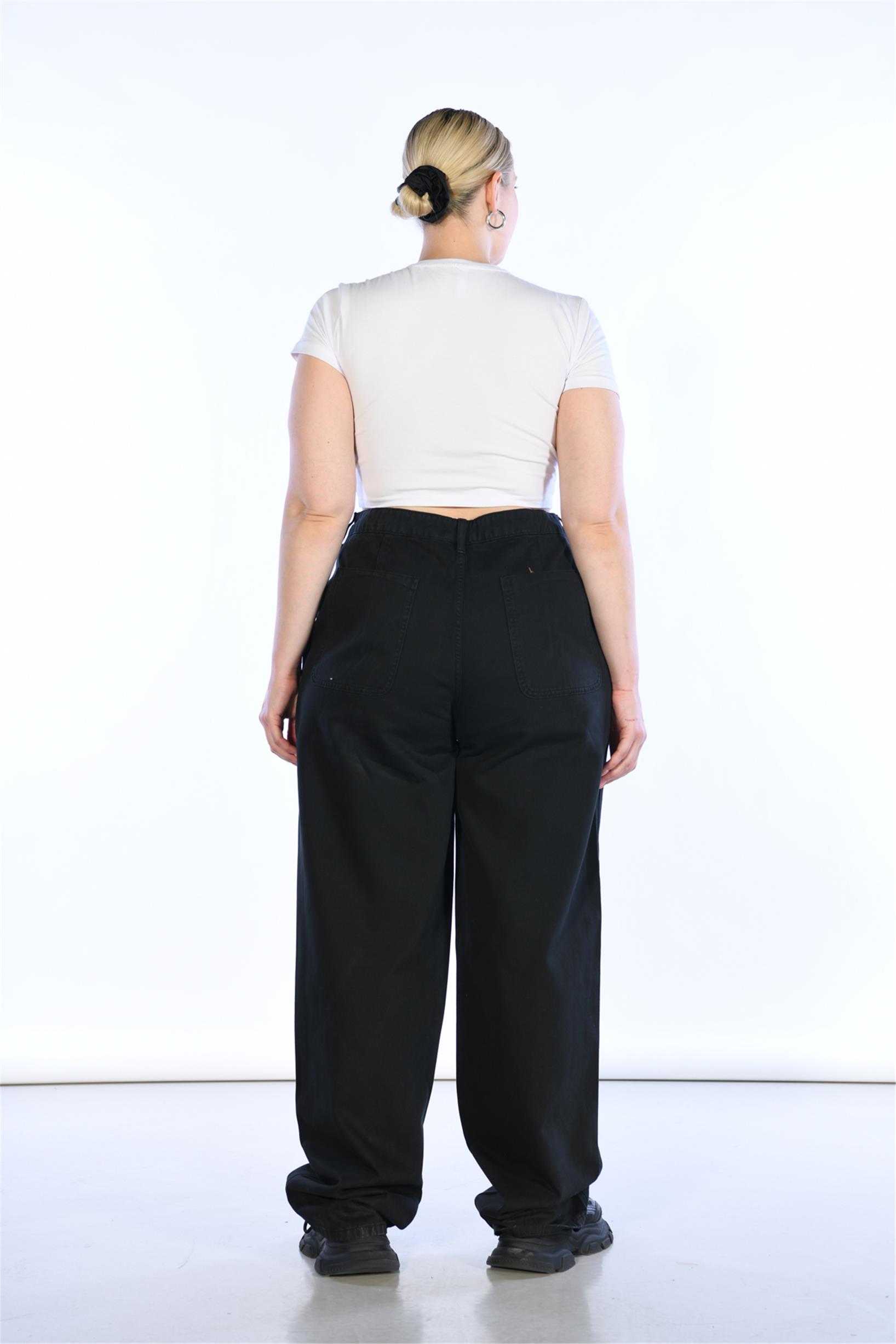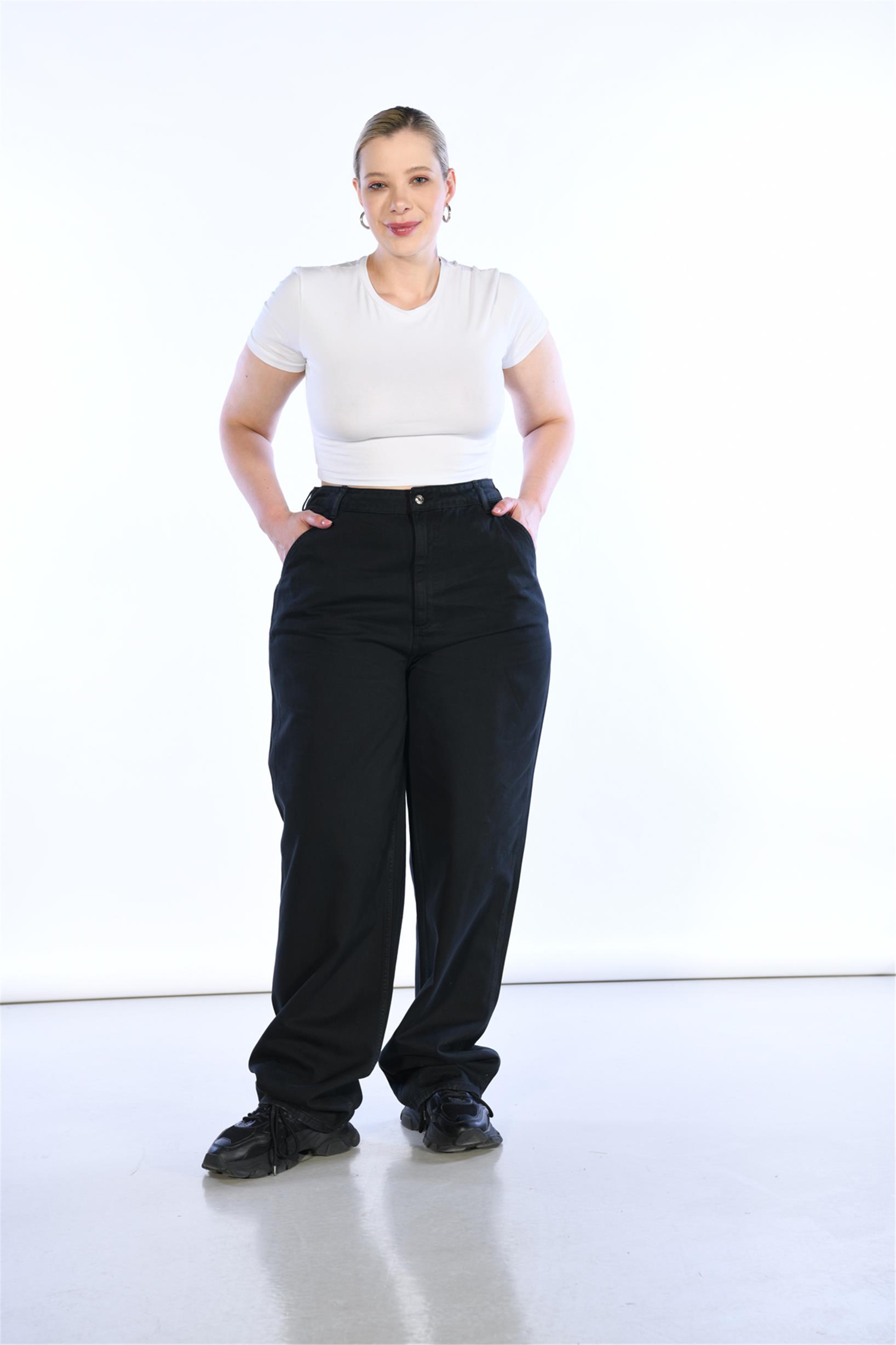 Büyük Beden Siyah Yüksek Bel Wide Leg Jeans