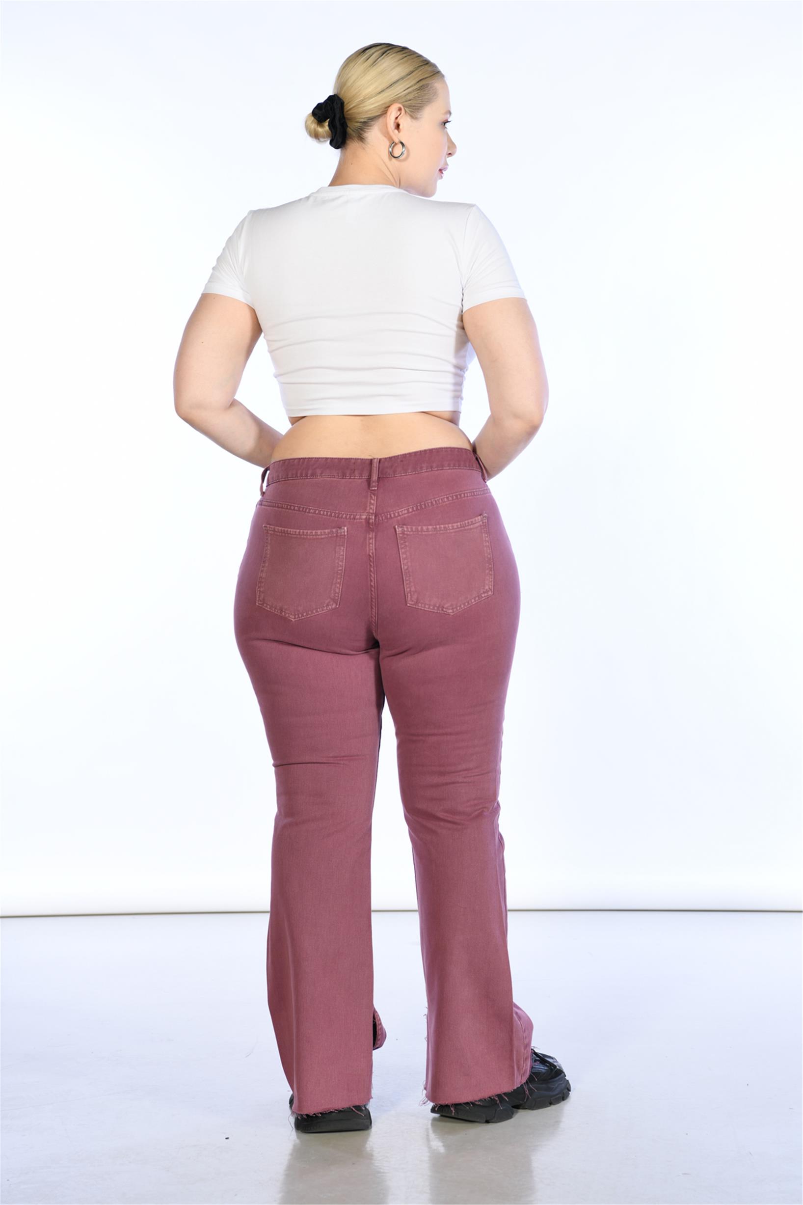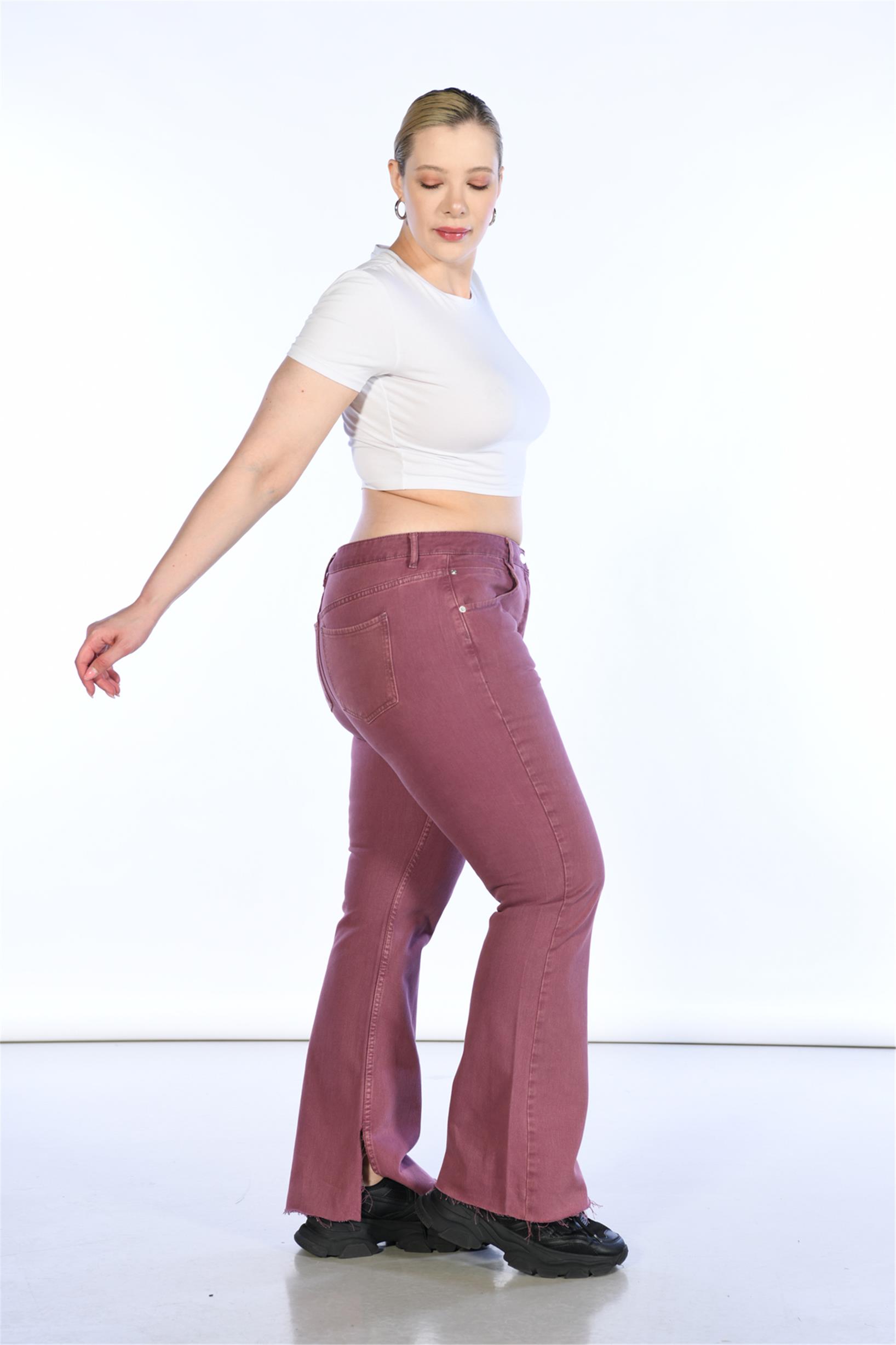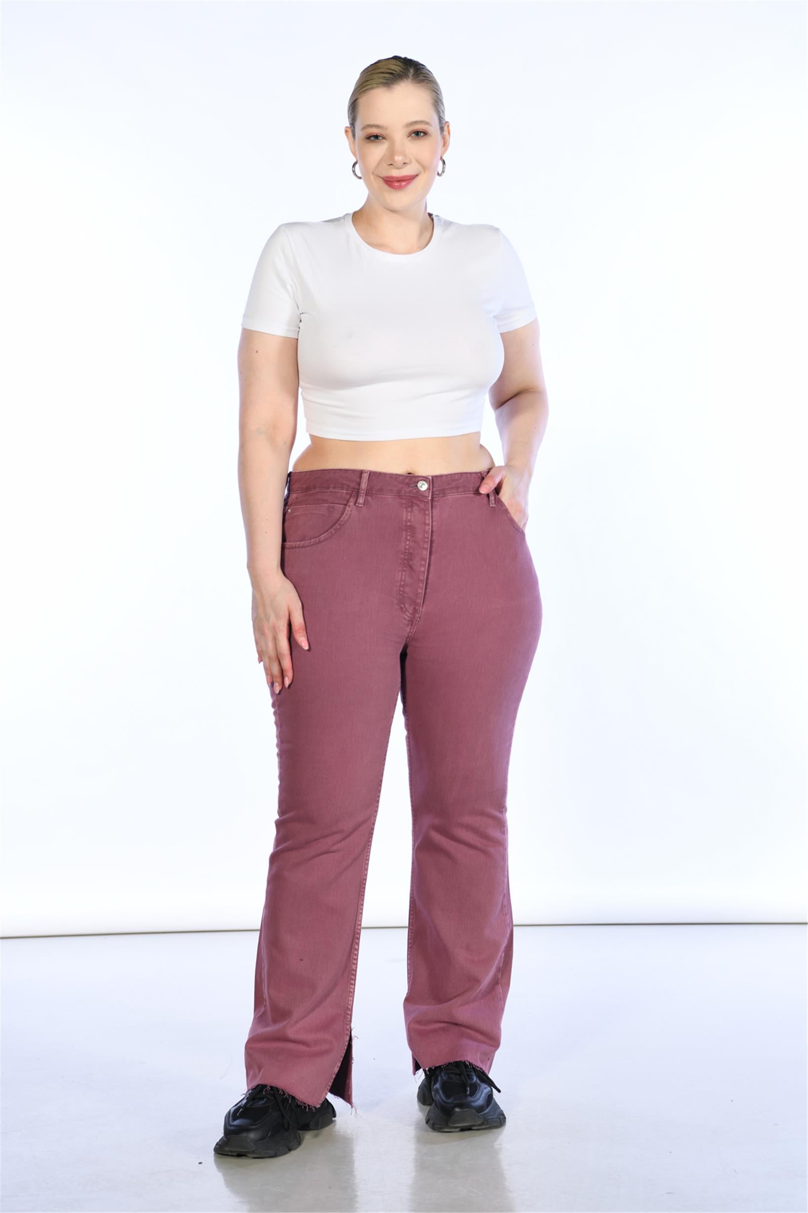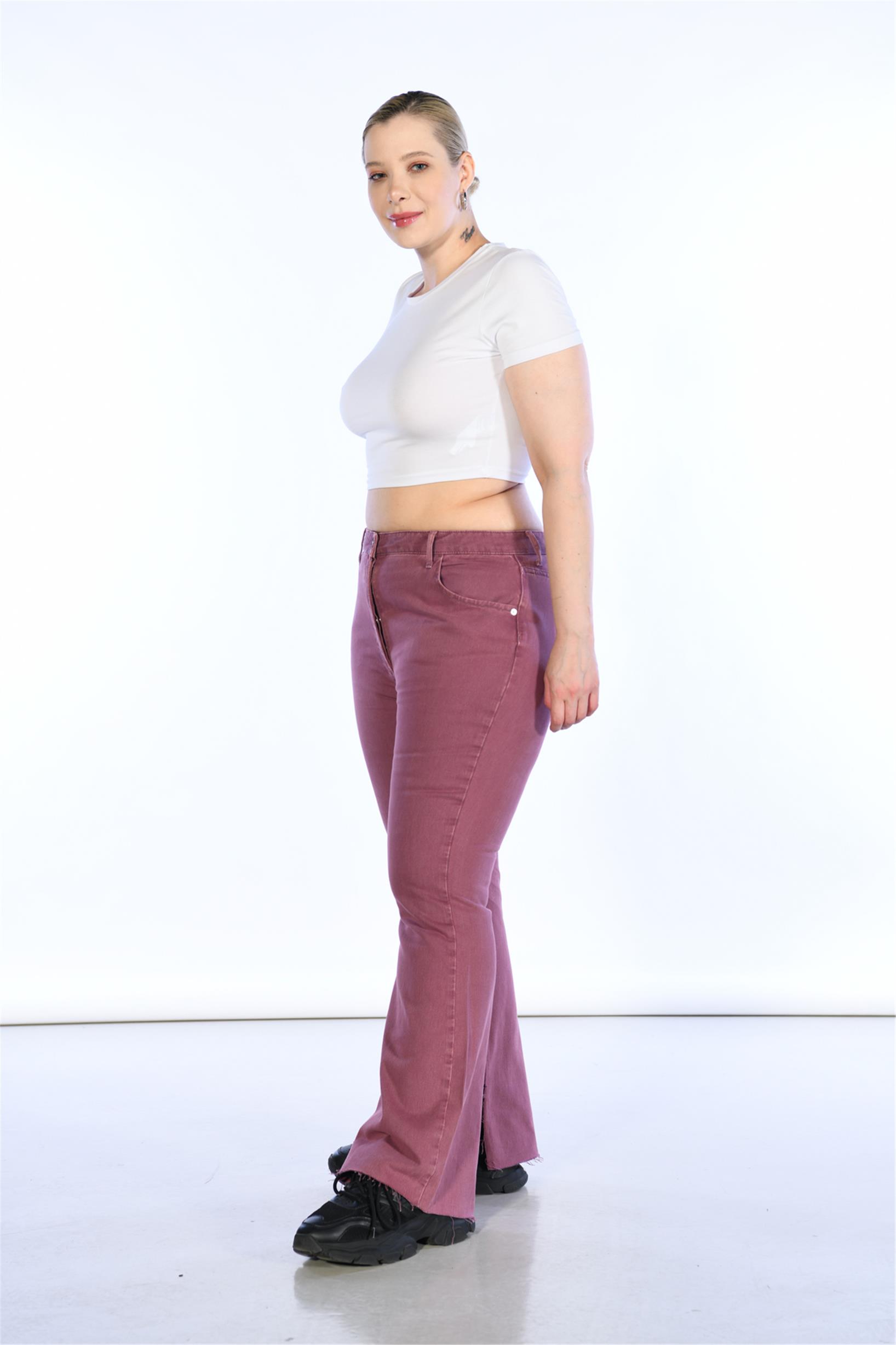 Büyük Beden Vizon Yüksek Bel Flare Jeans