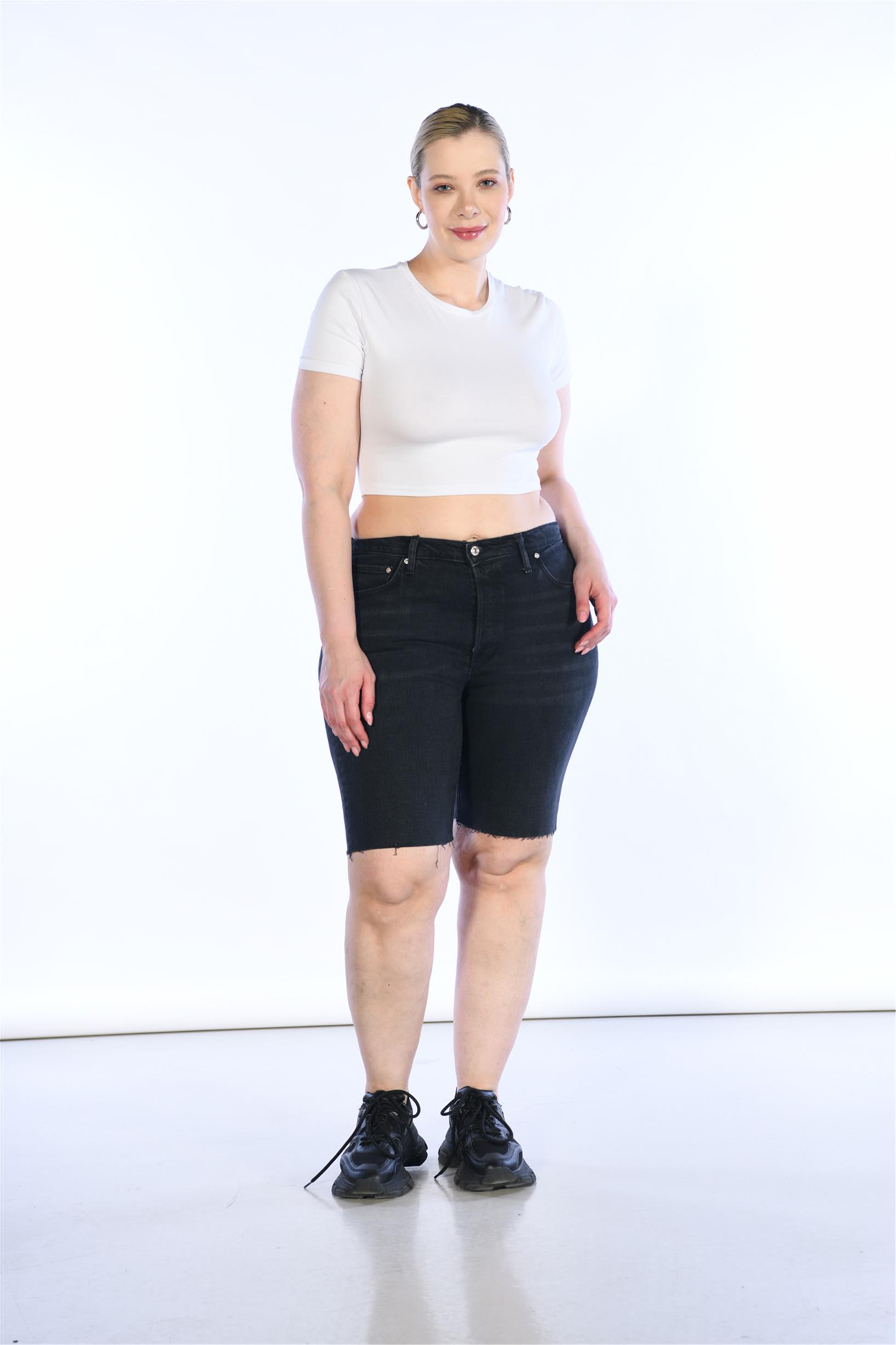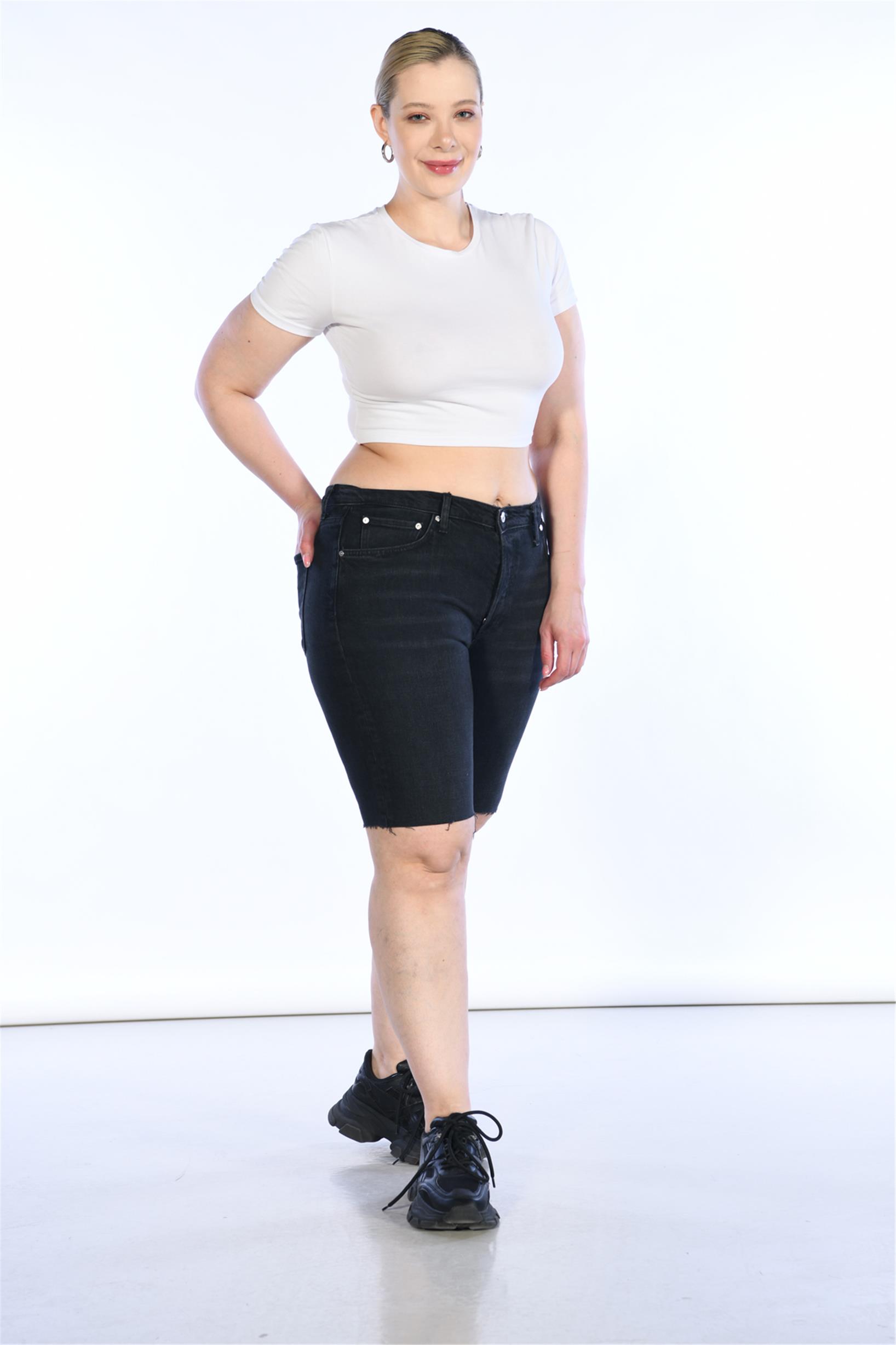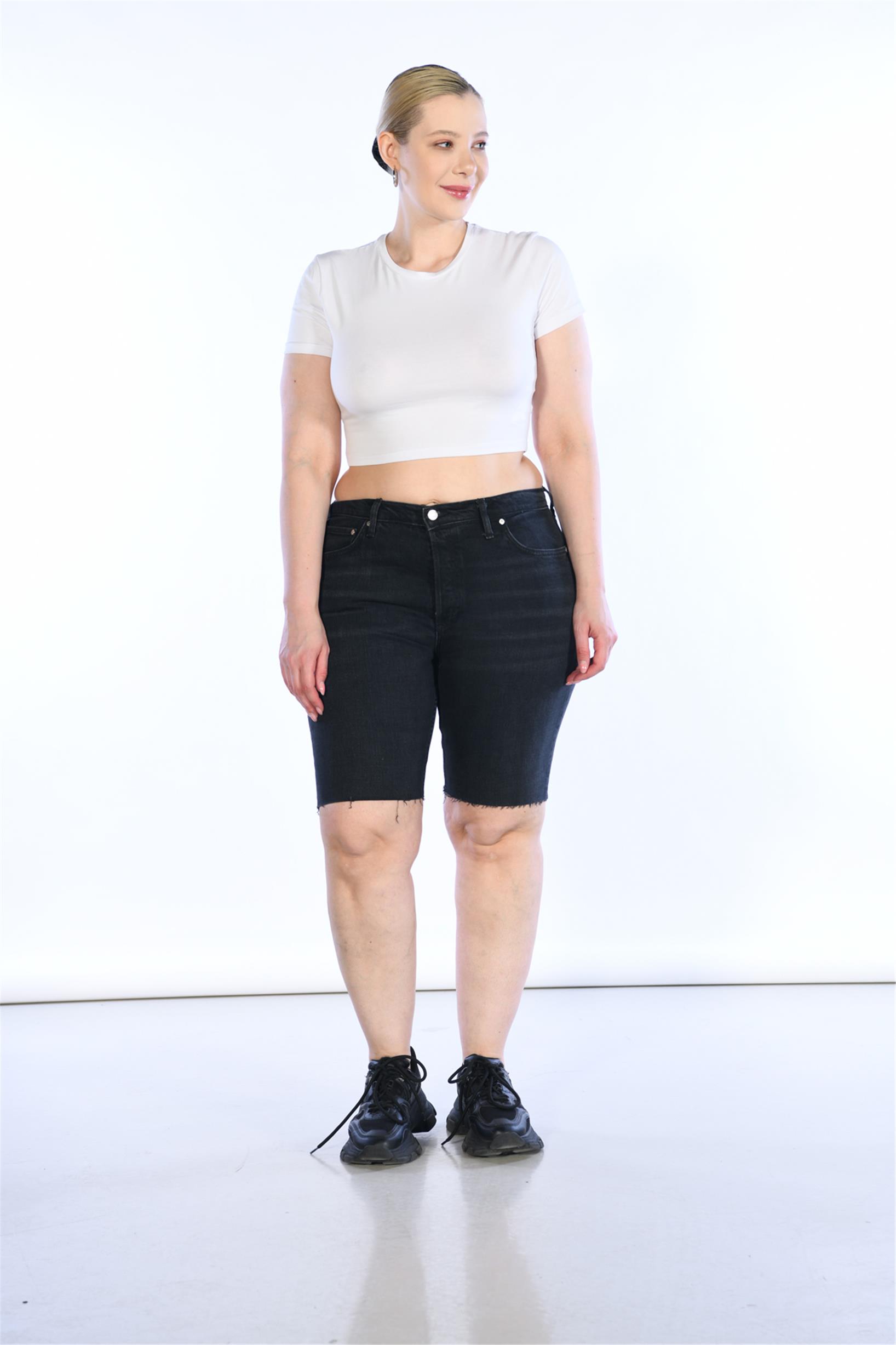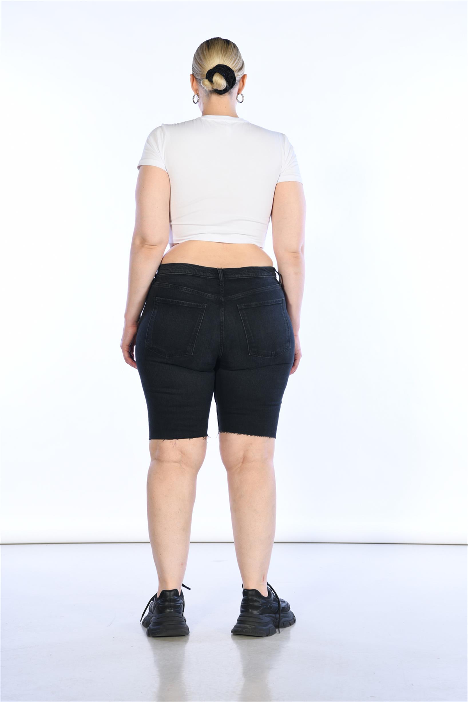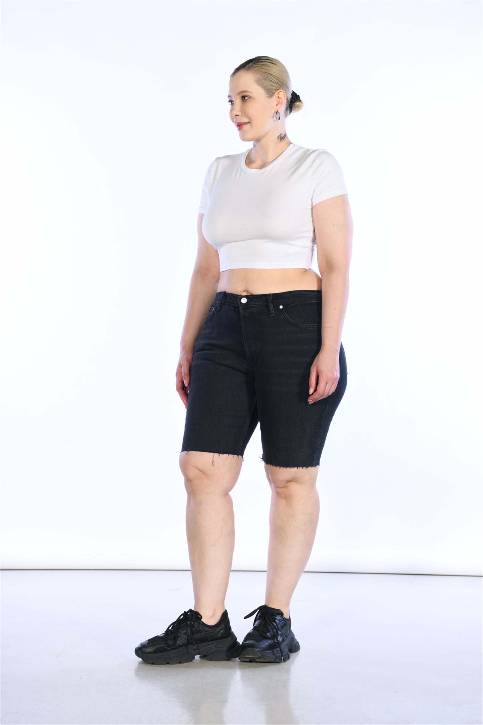 Büyük Beden Yüksek Bel Bermuda Kot Şort