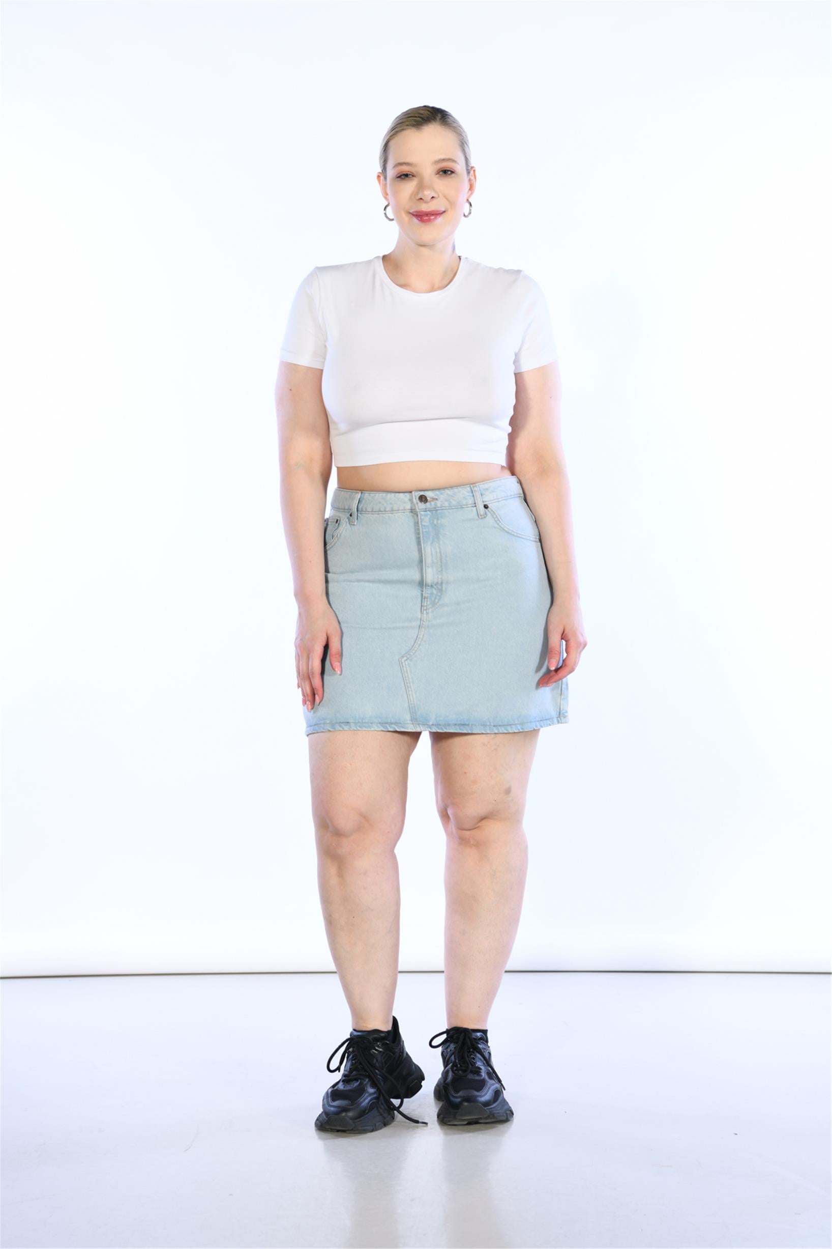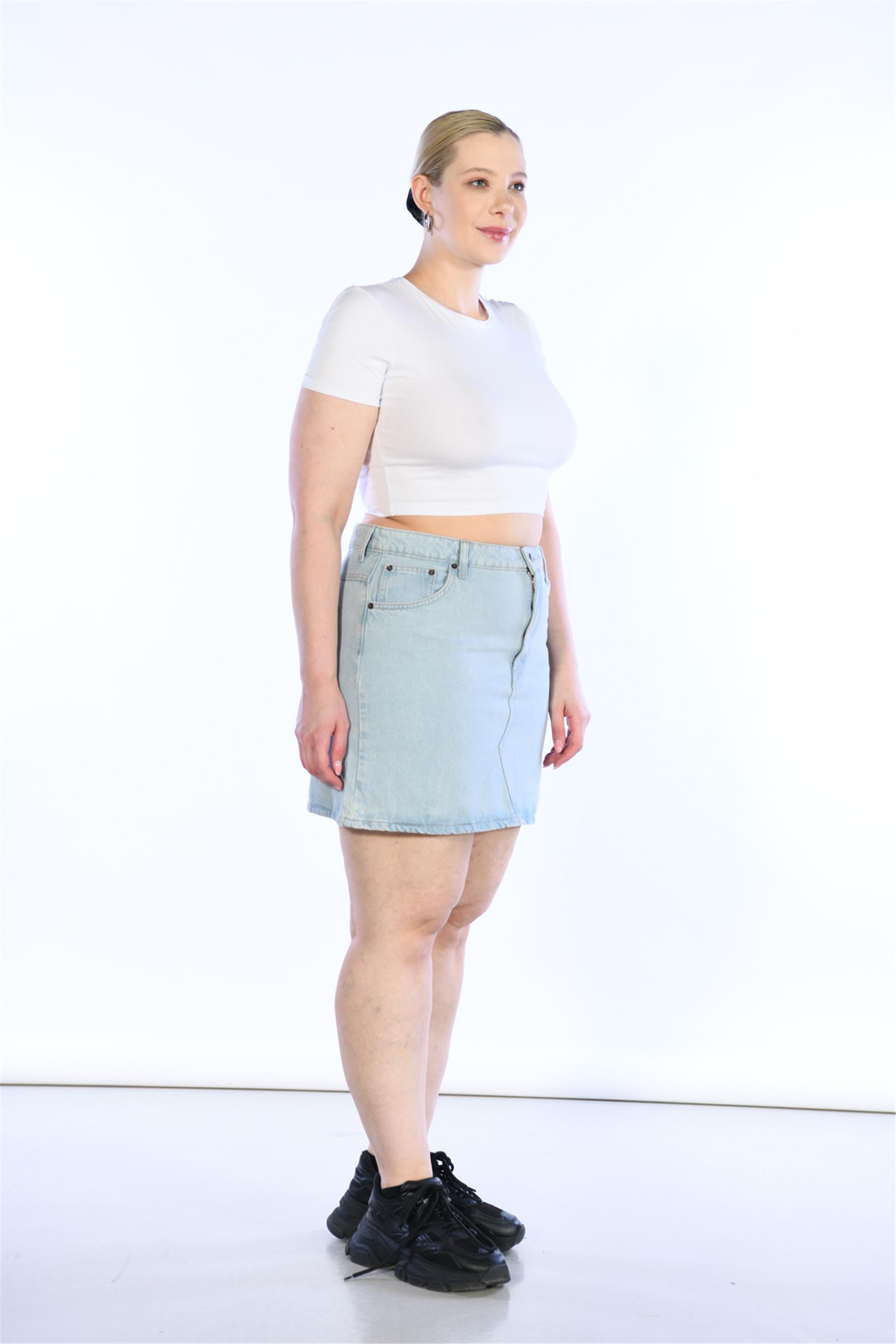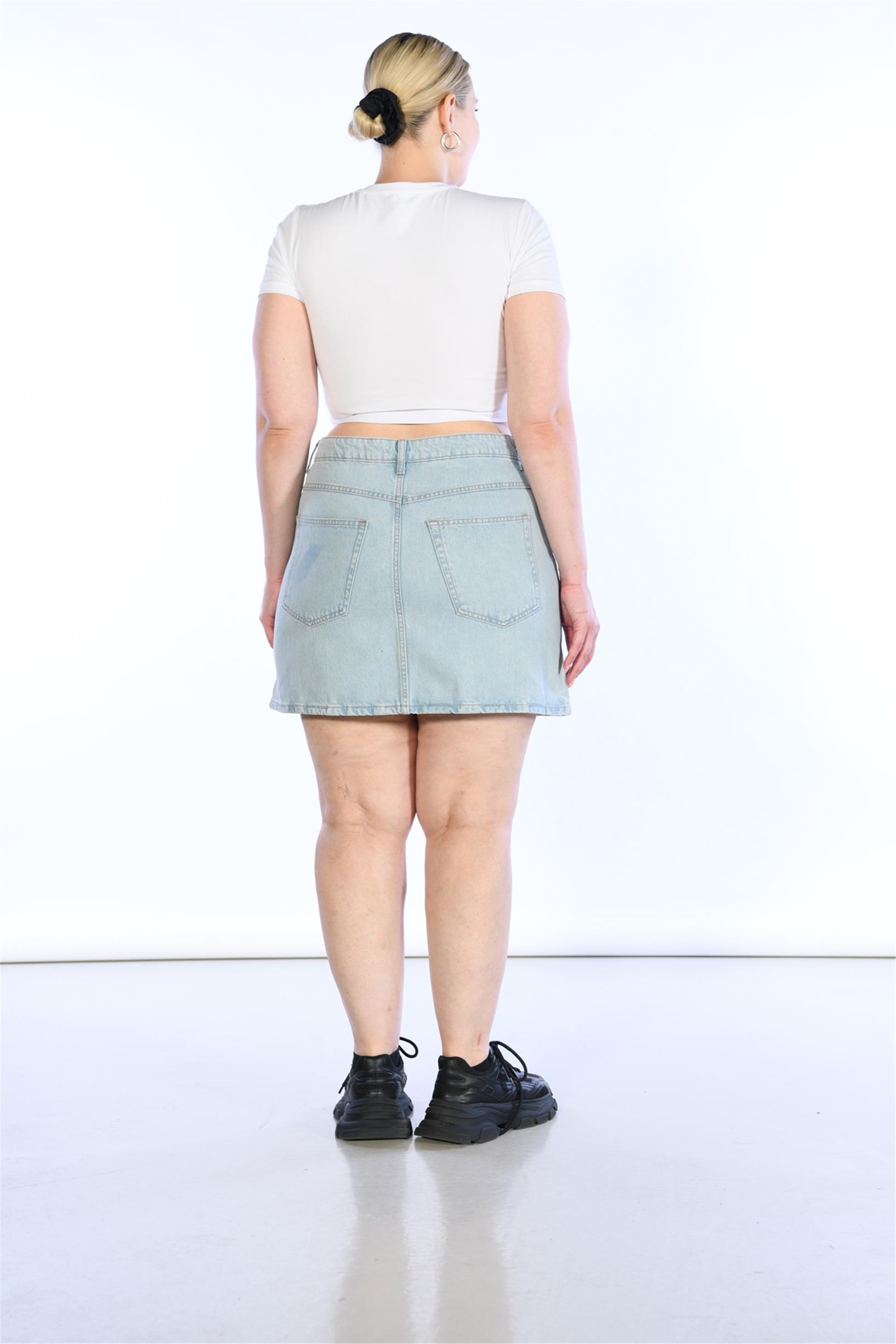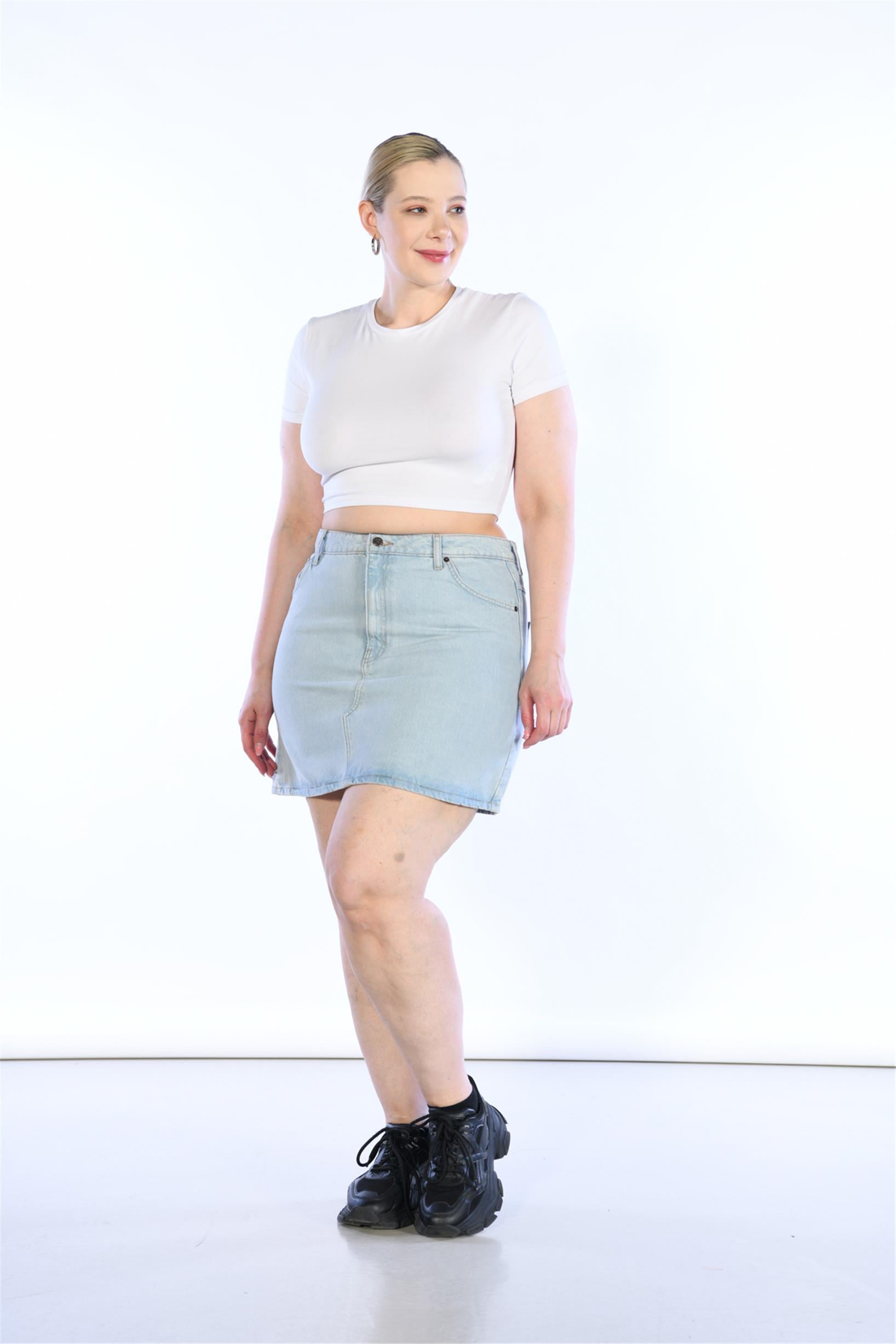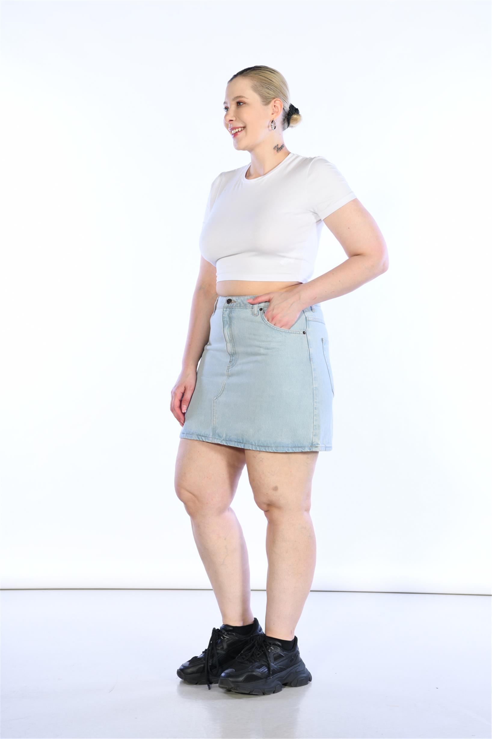 Büyük Beden Yüksek Bel Mini Kot Etek