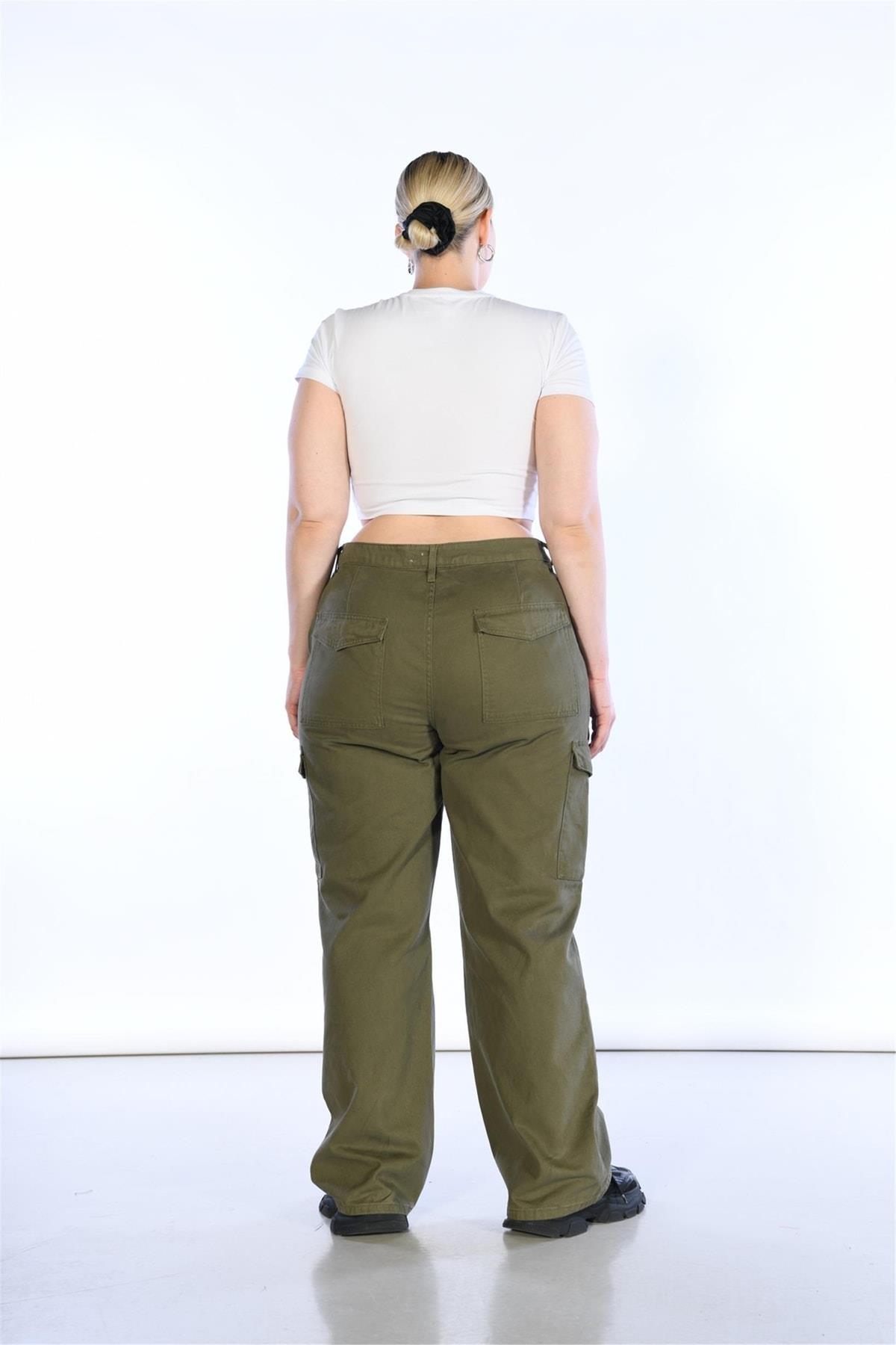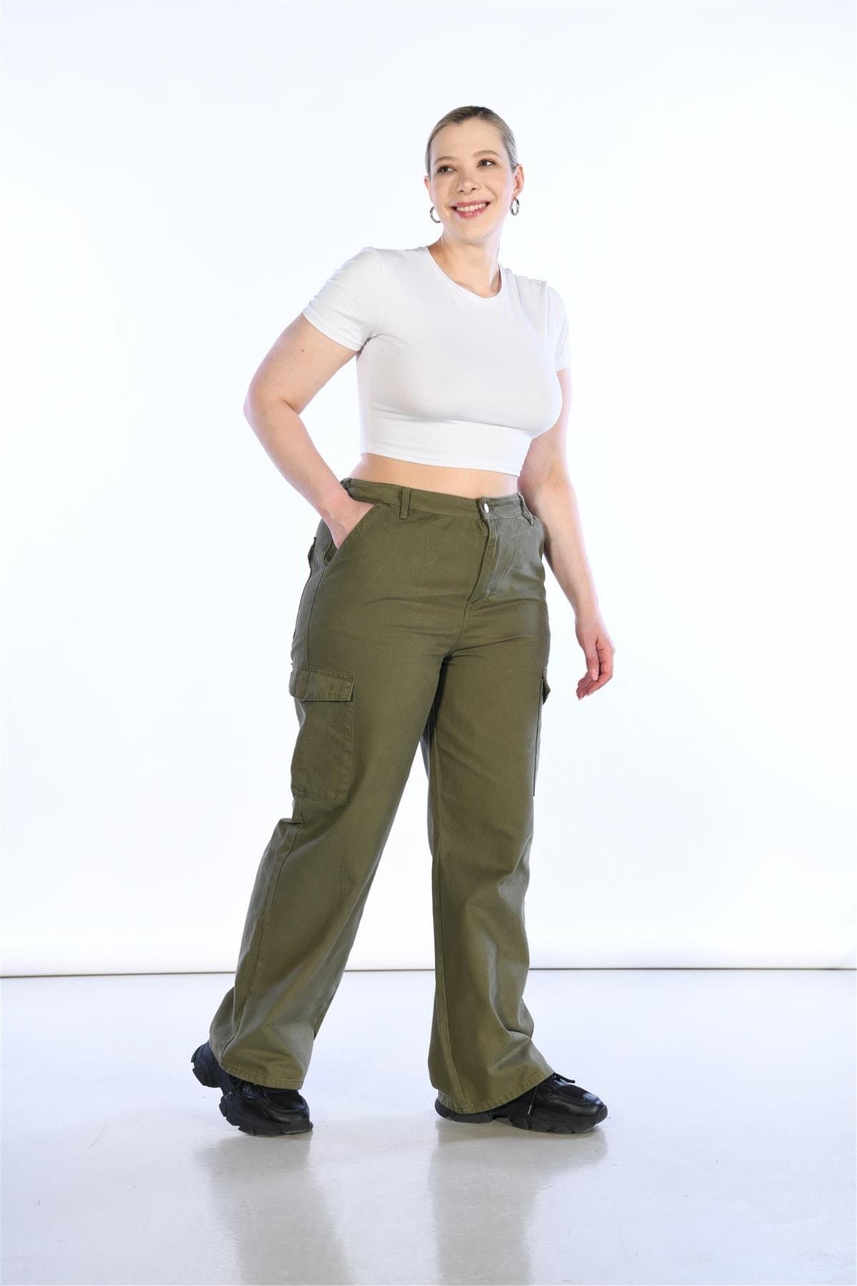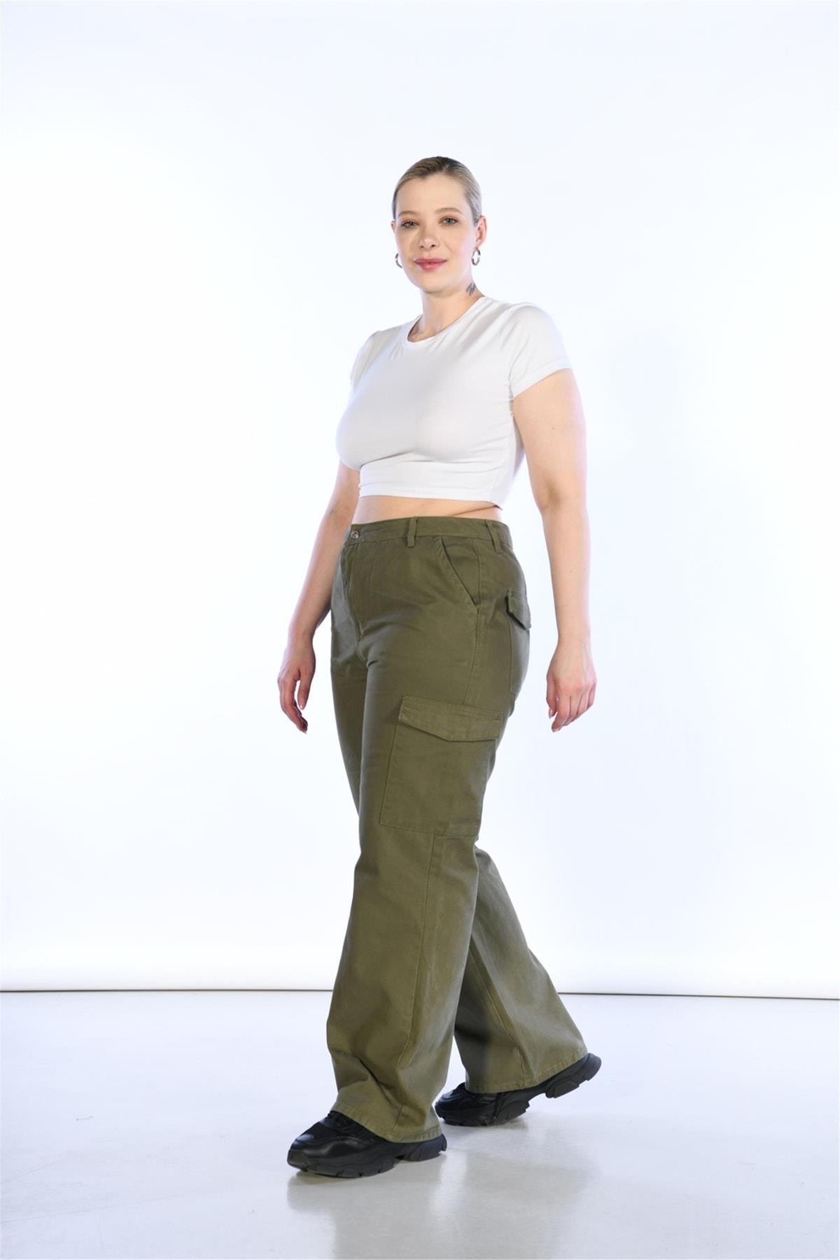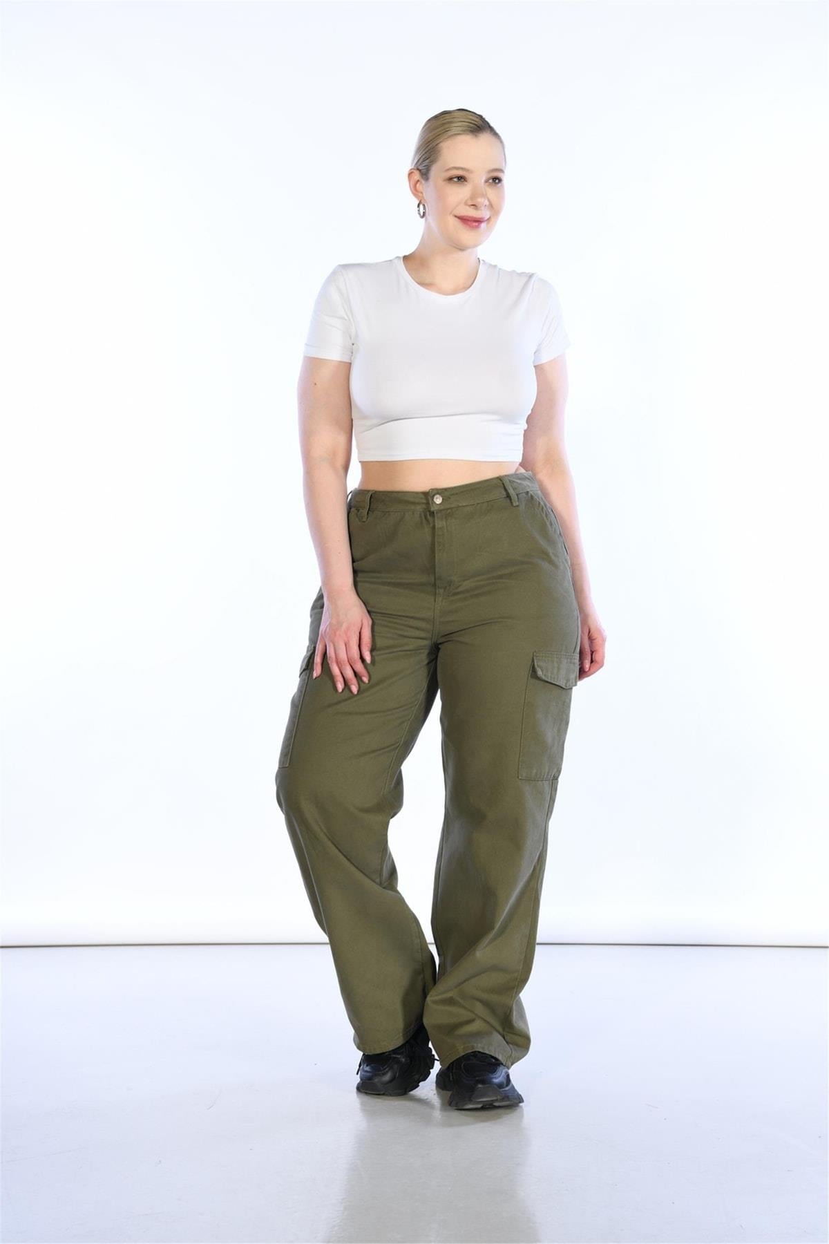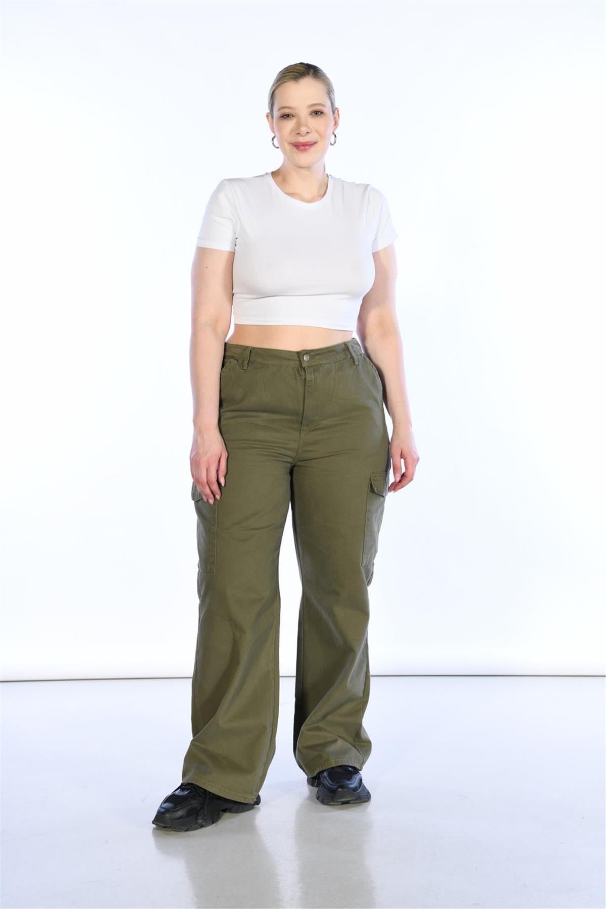 Büyük Beden Yüksek Bel Wide Leg Kargo Pantolon