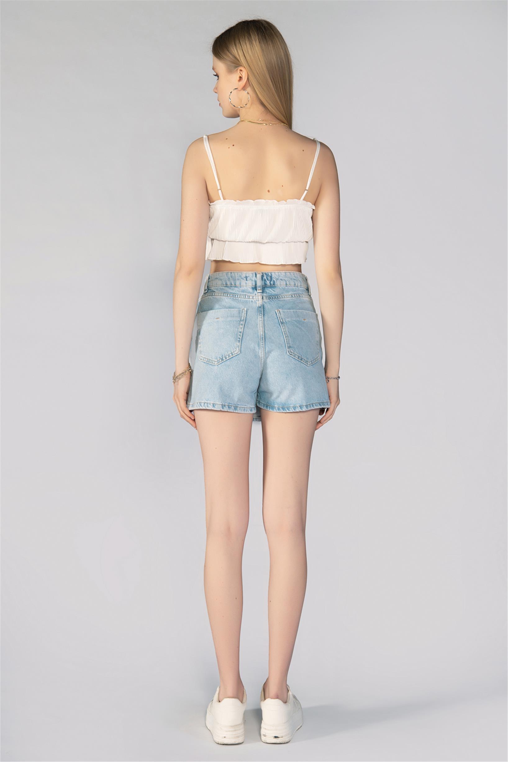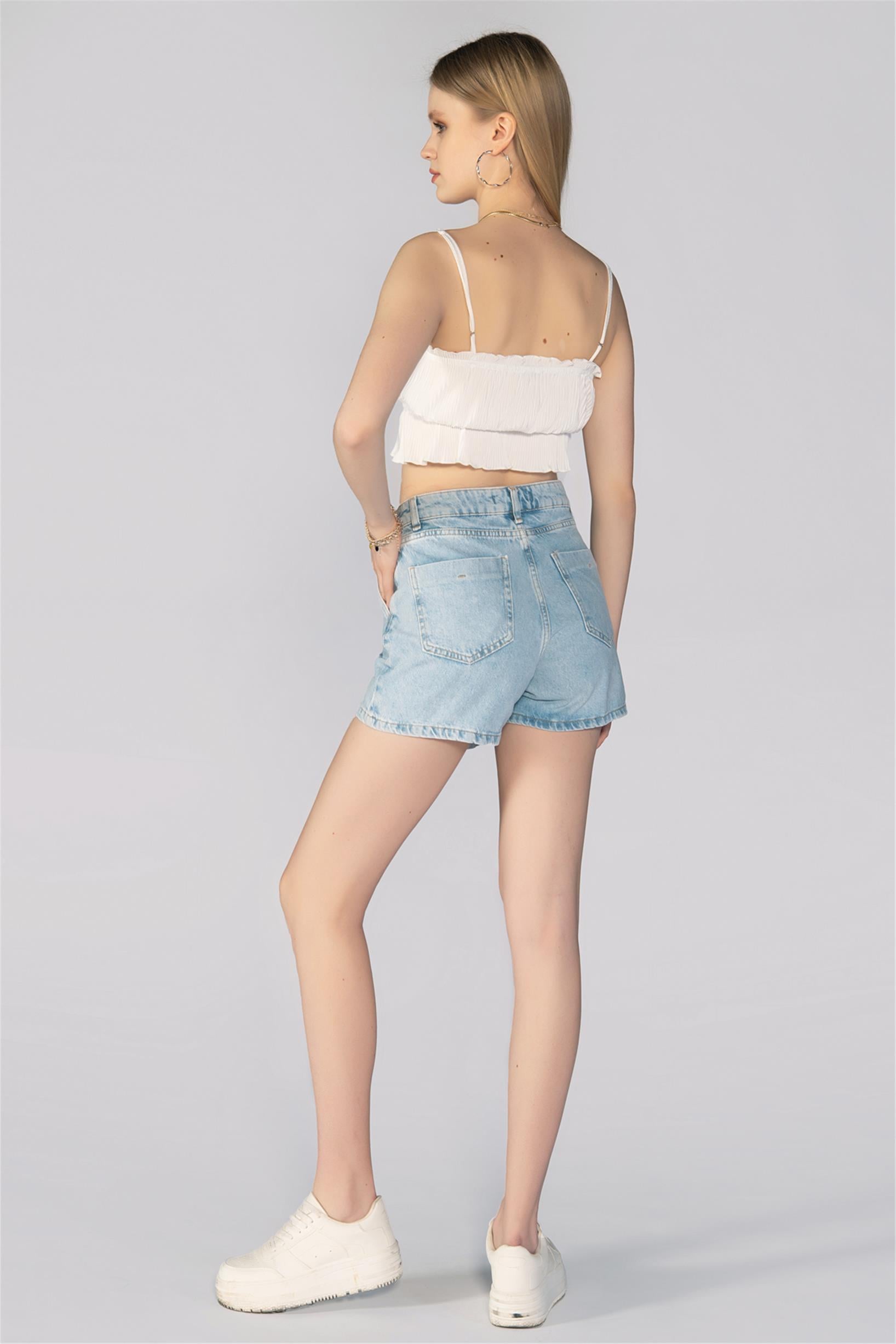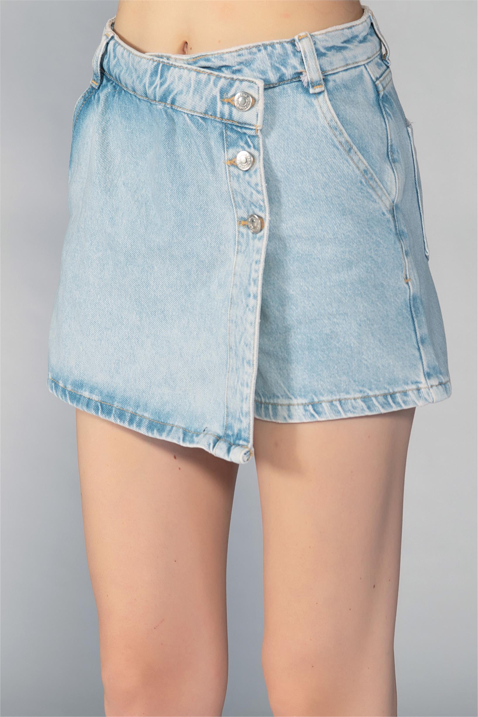 Buz Mavi Düğmeli Denim Şort Etek