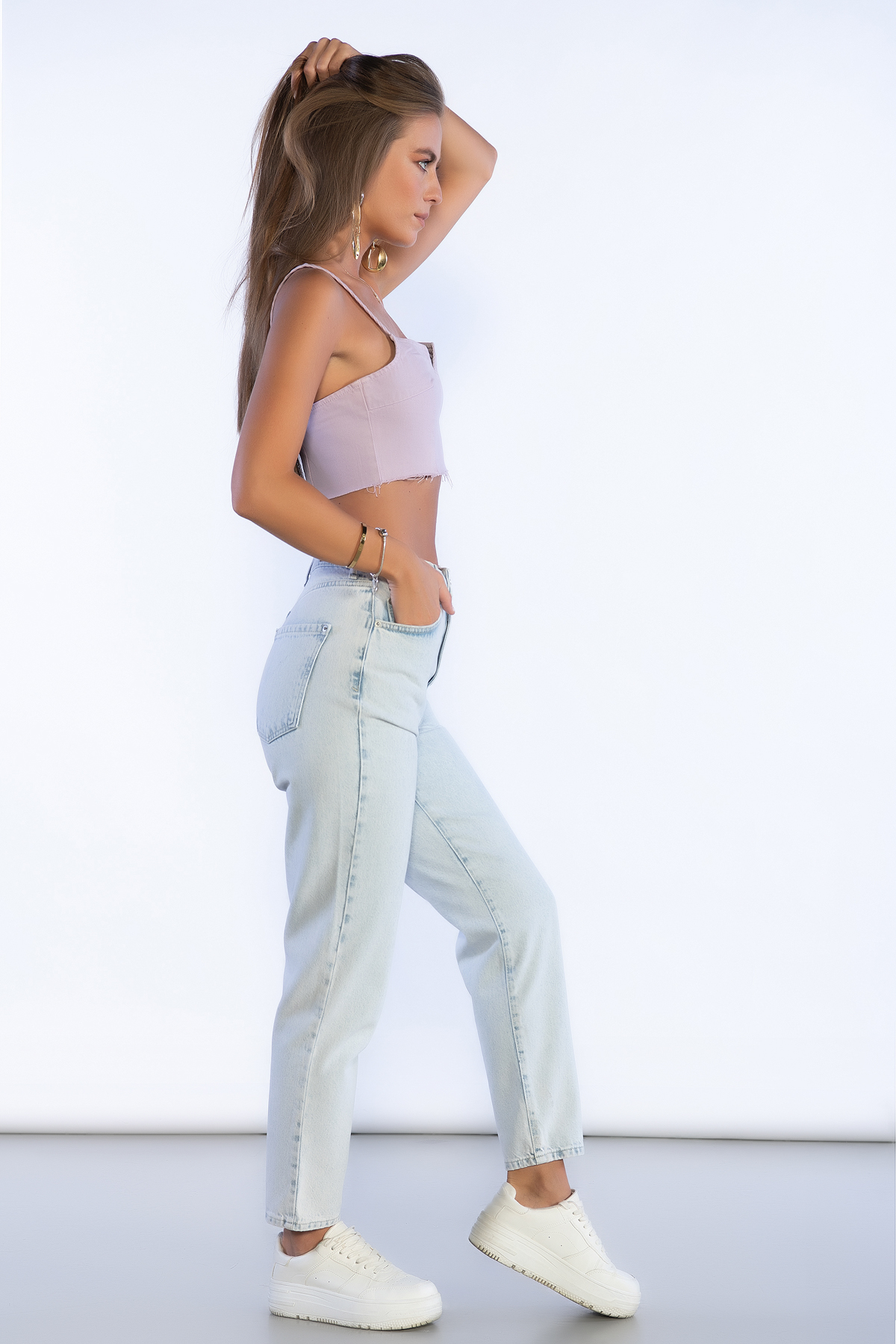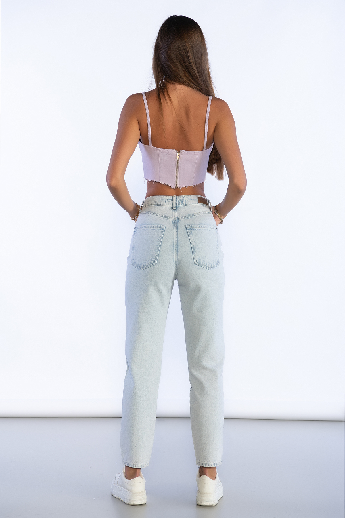 Buz Mavi Yüksek Bel Mom Jeans