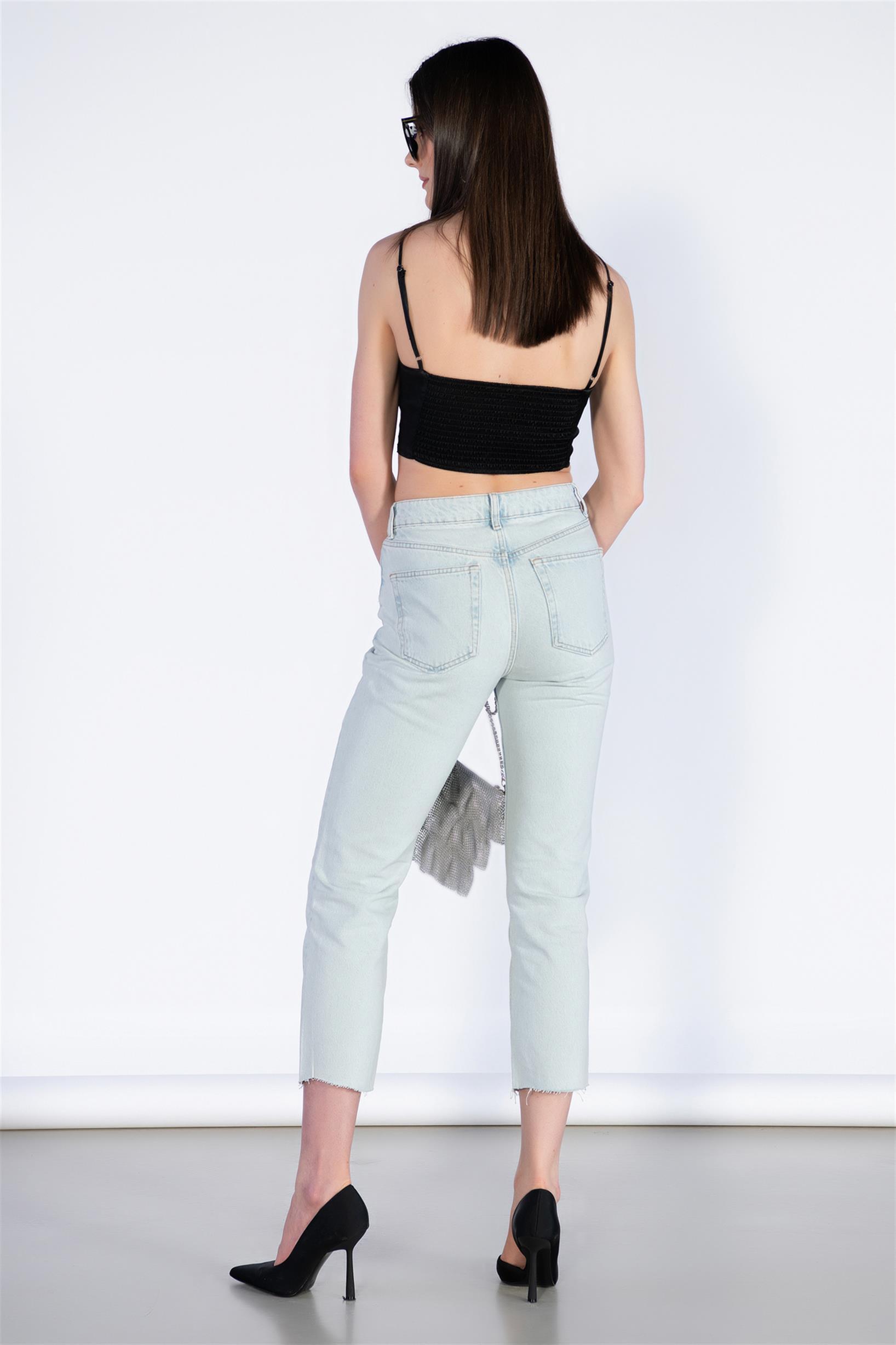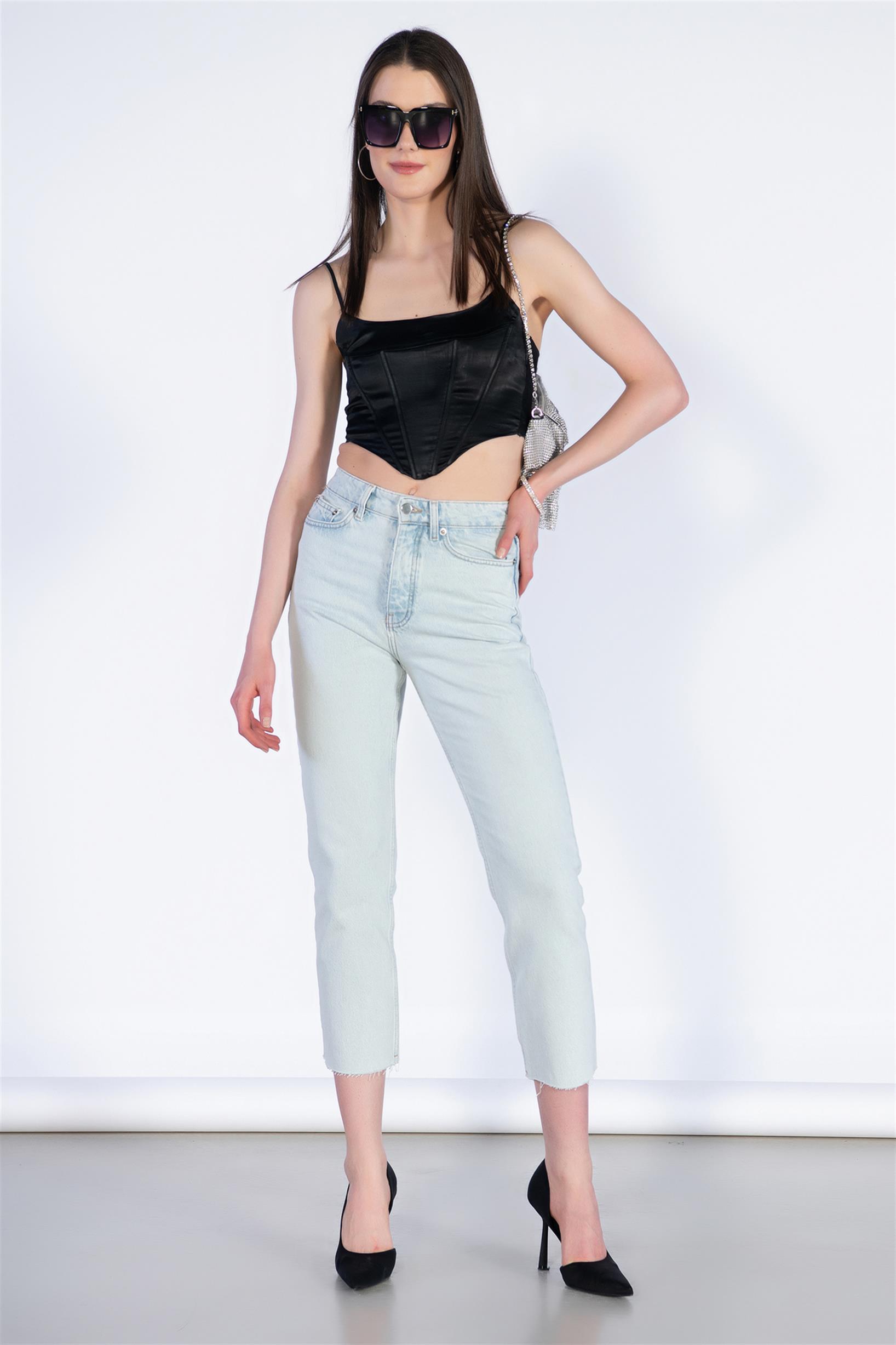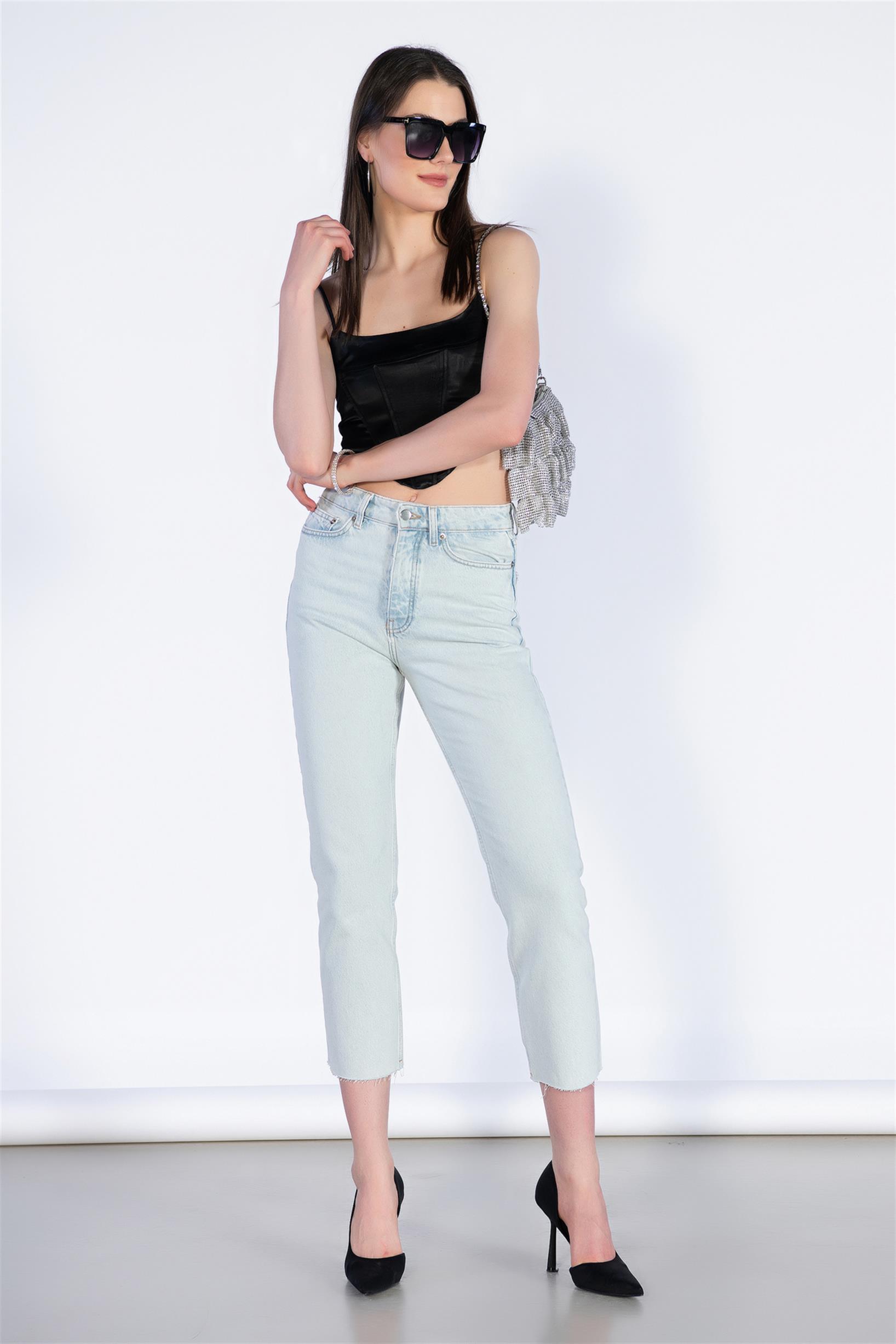 Buz Mavi Yüksek Bel Mom Jeans