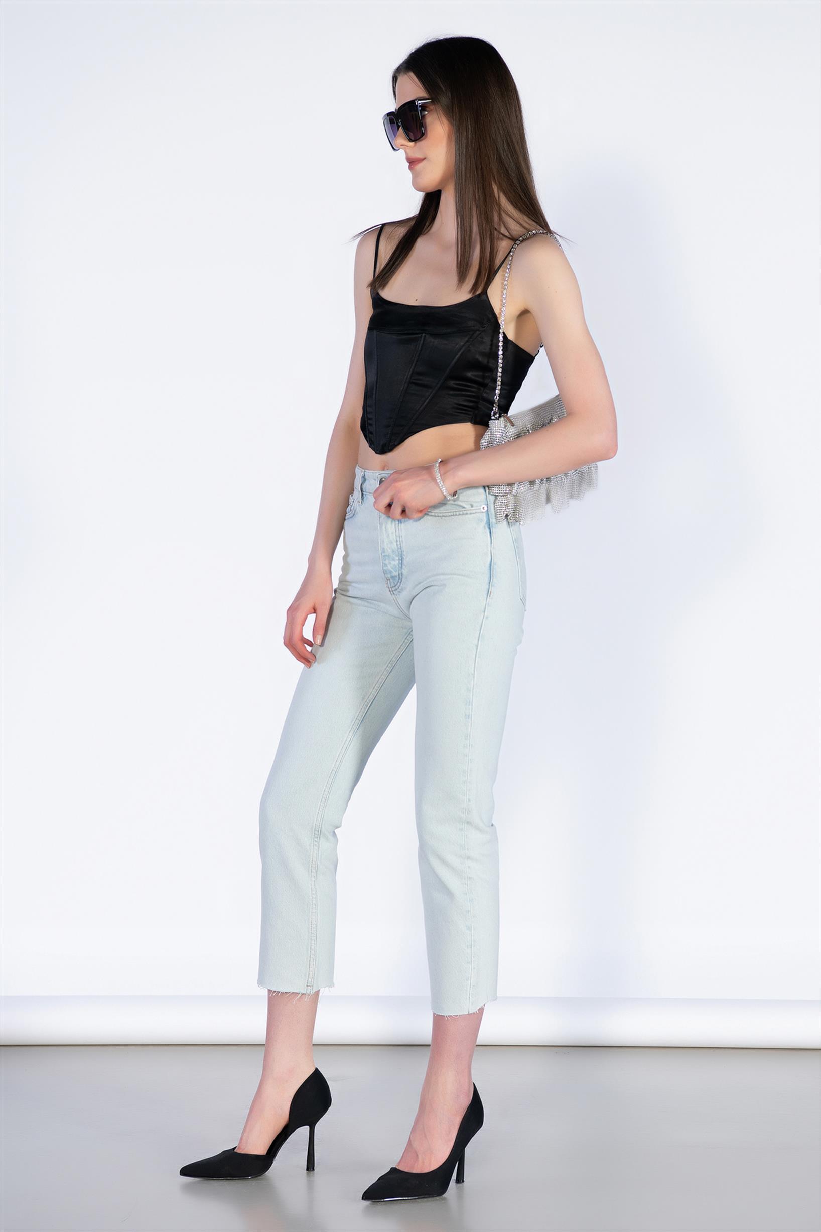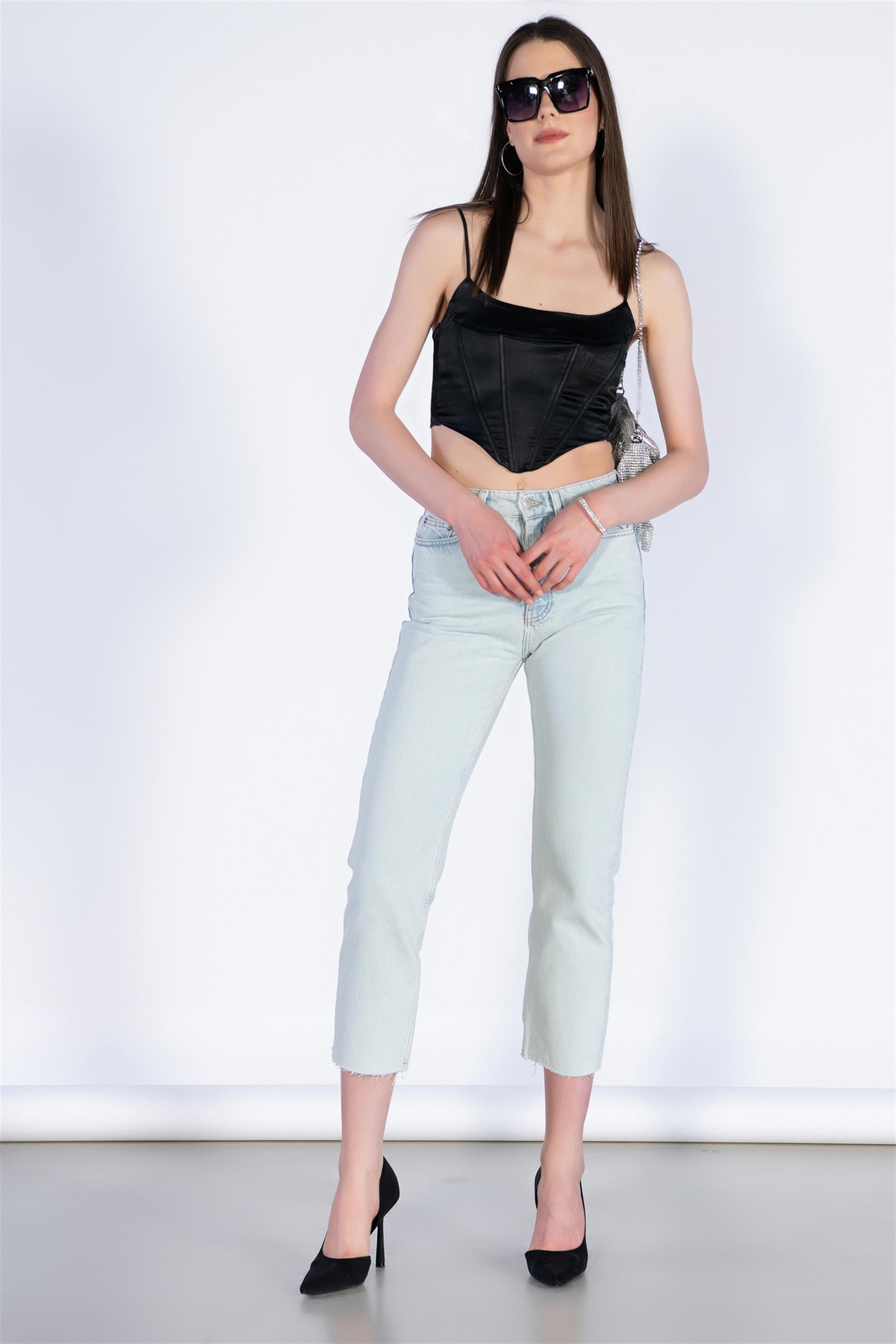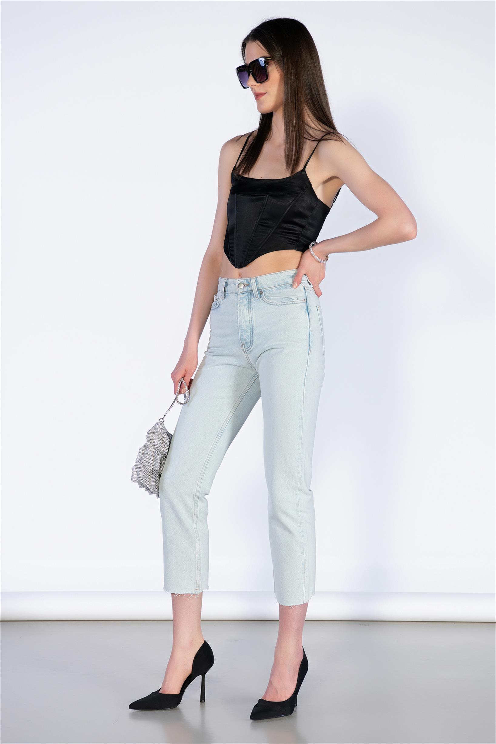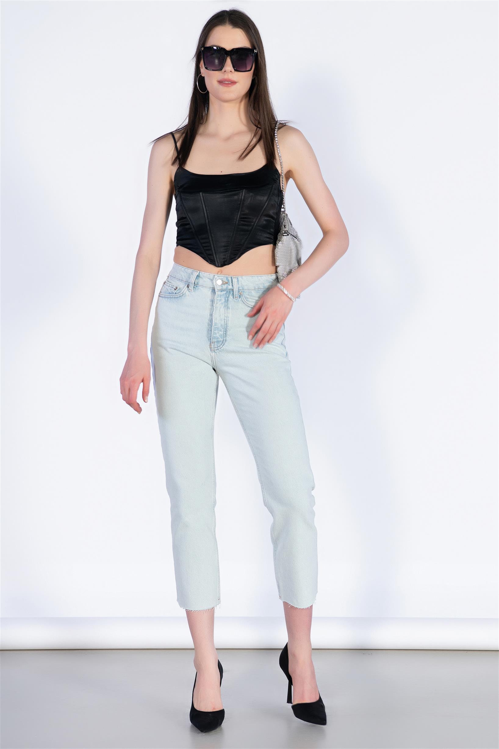 Buz Mavi Yüksek Bel Mom Jeans