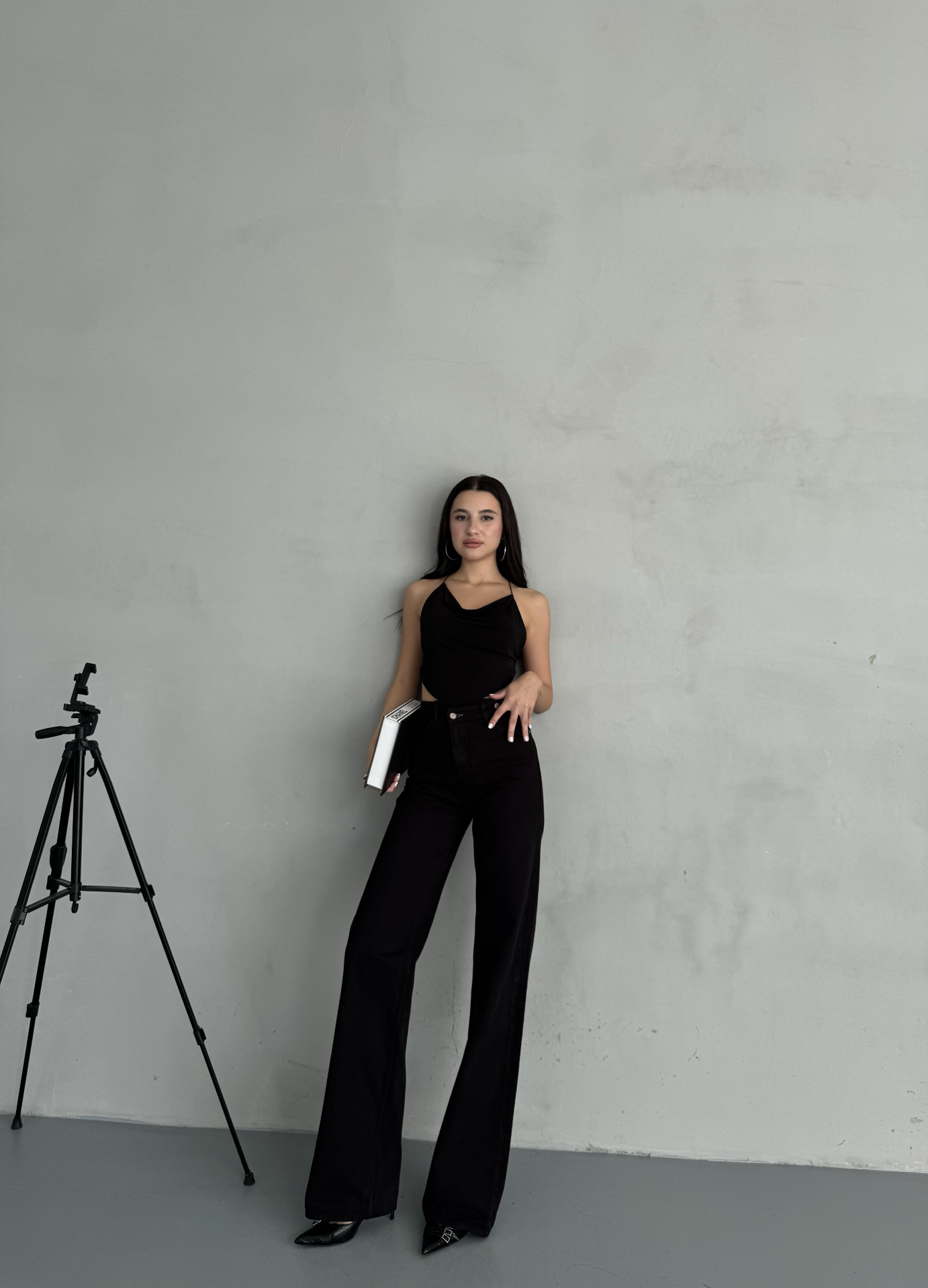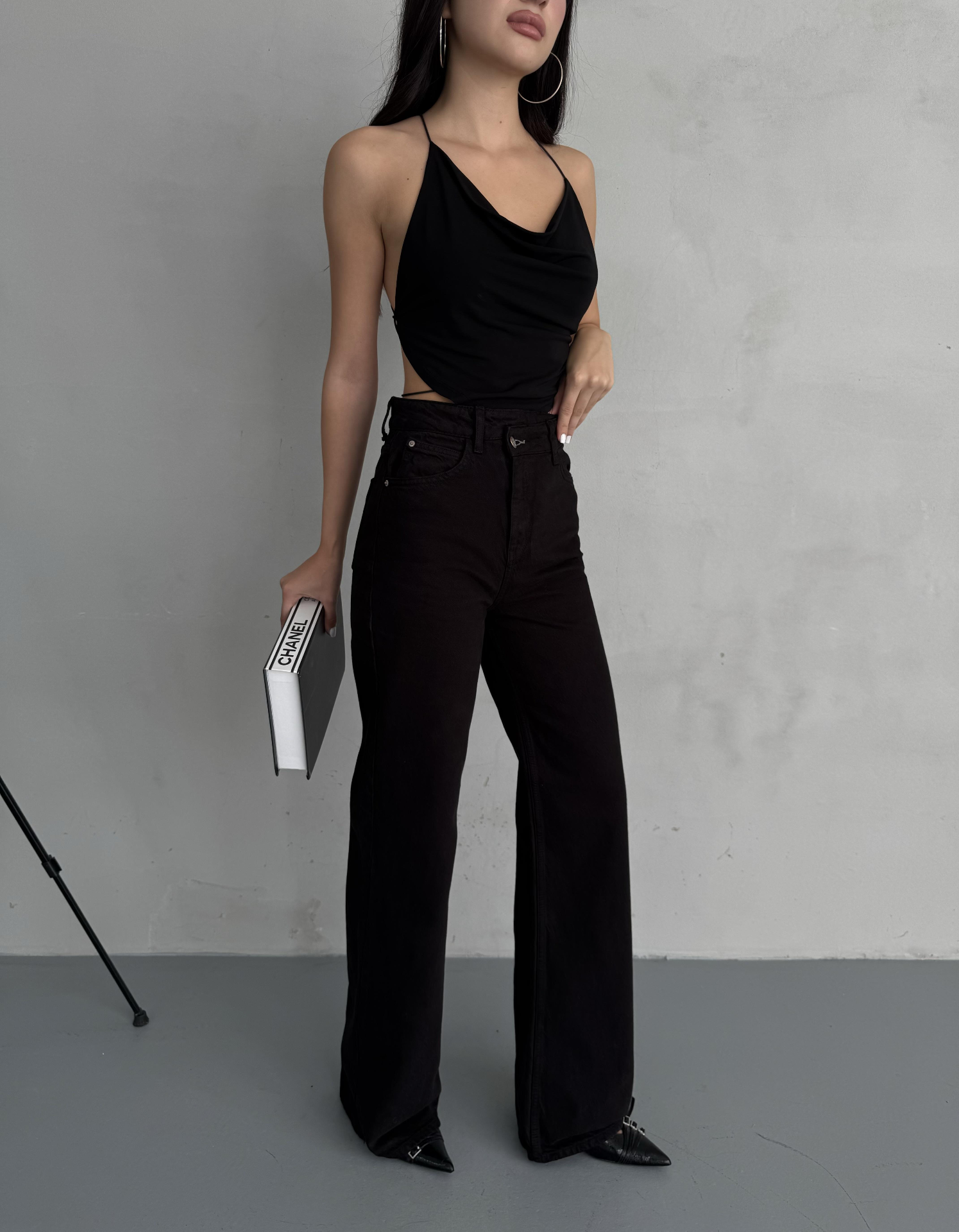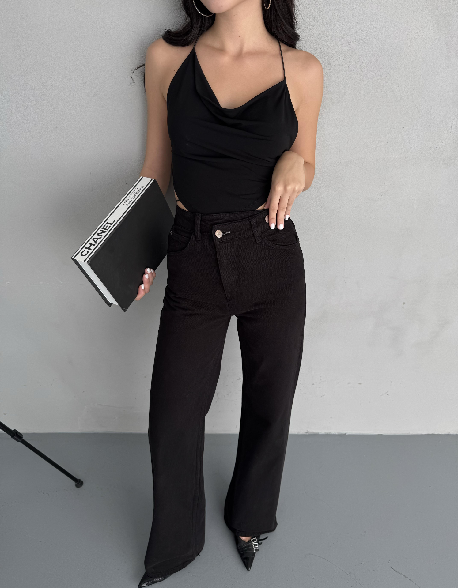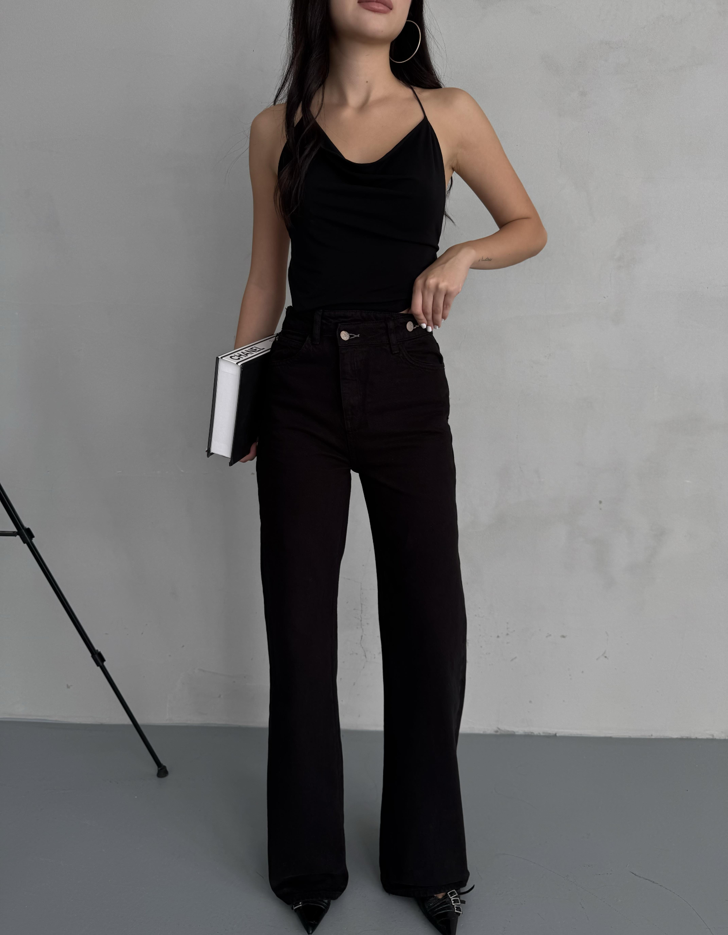 Çarpraz Kemerli Yuksel Bel Wide Leg Jean