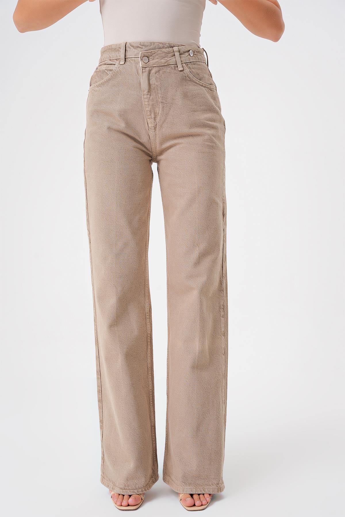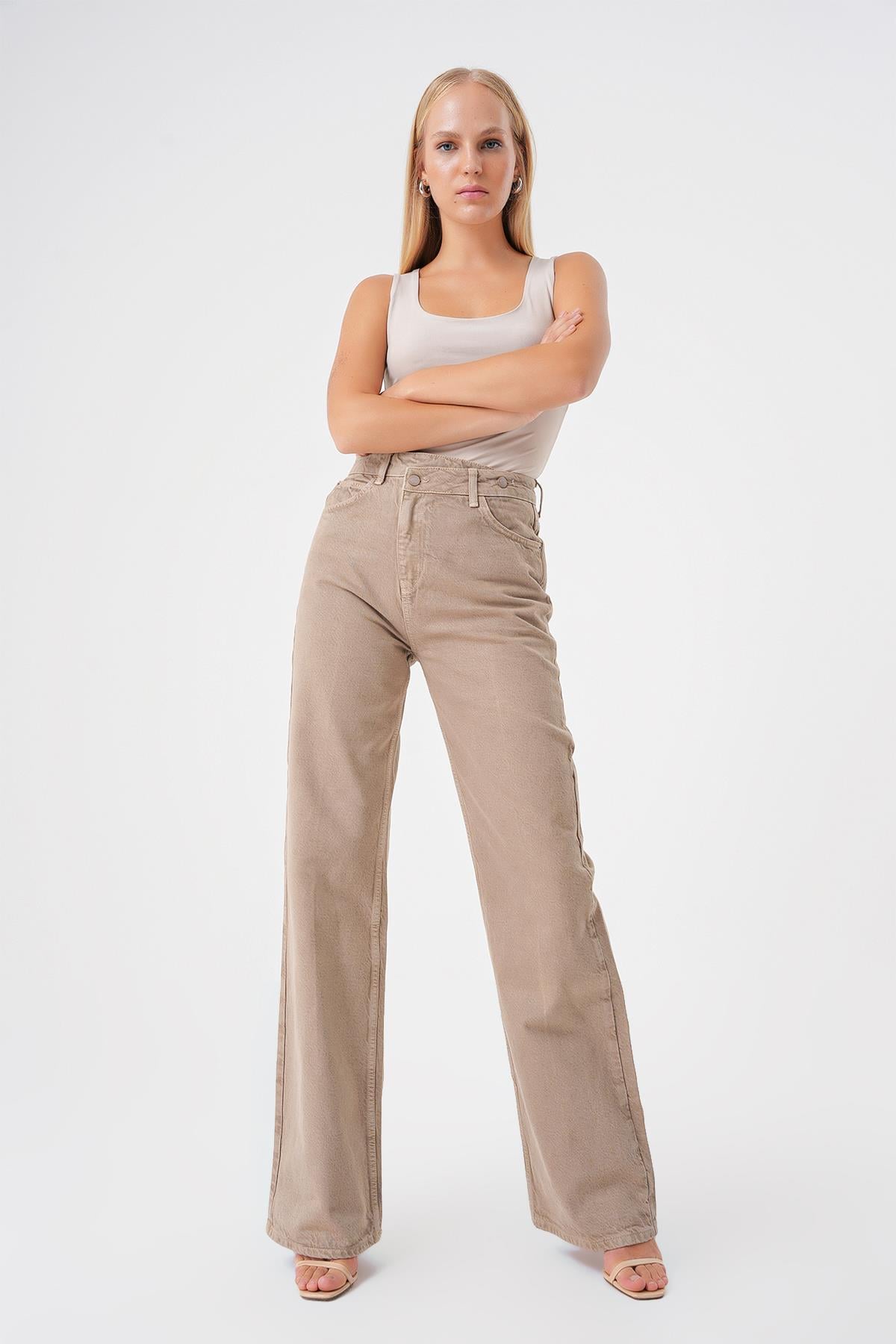 Çarpraz Kemerli Yuksel Bel Wide Leg Jean