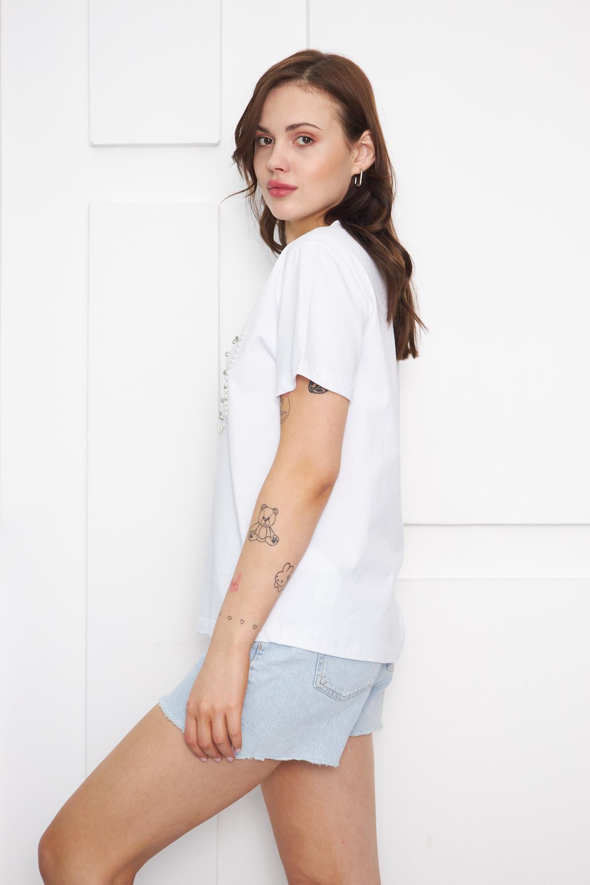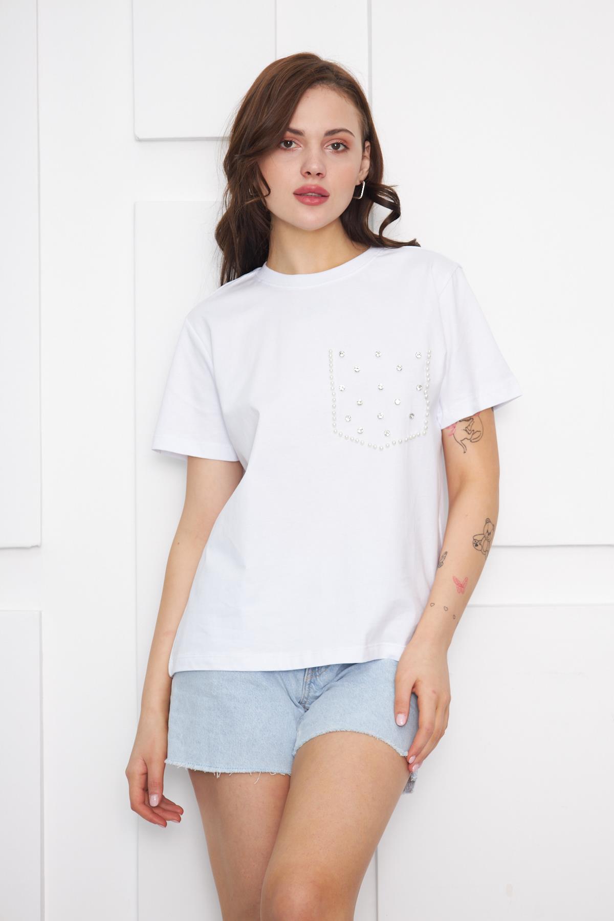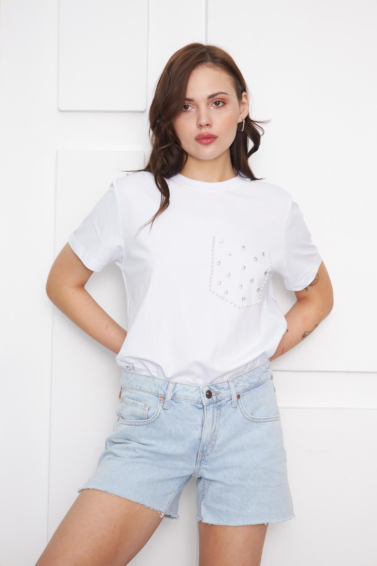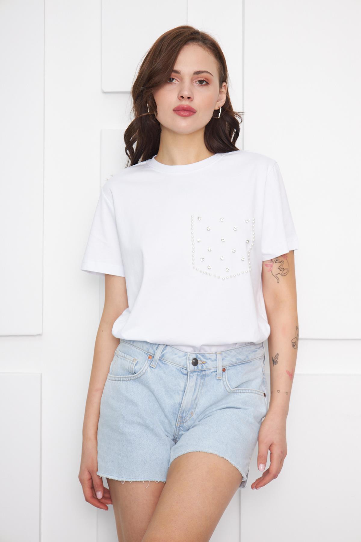 Cep Taş ve Boncuklu T- Shirt