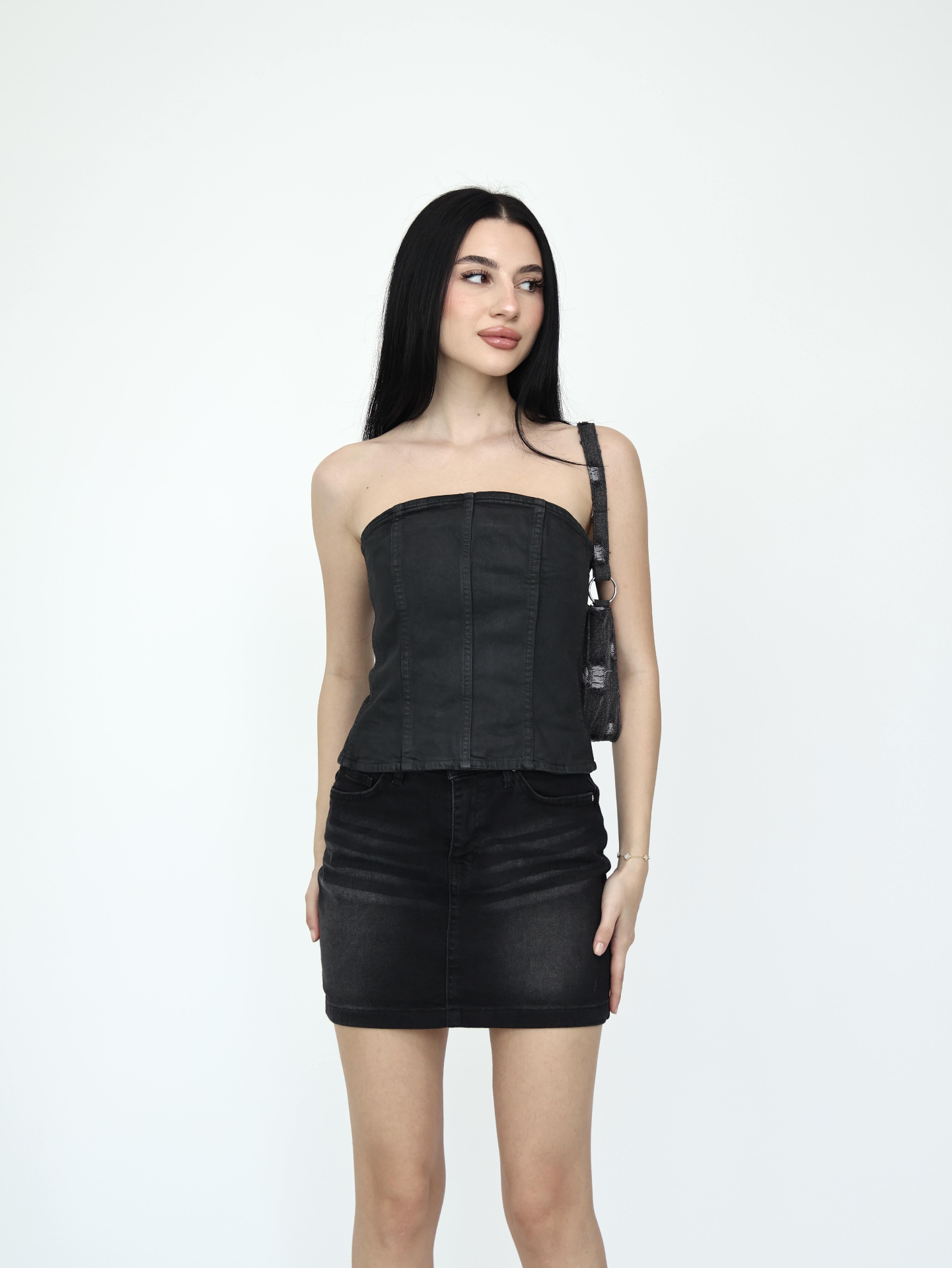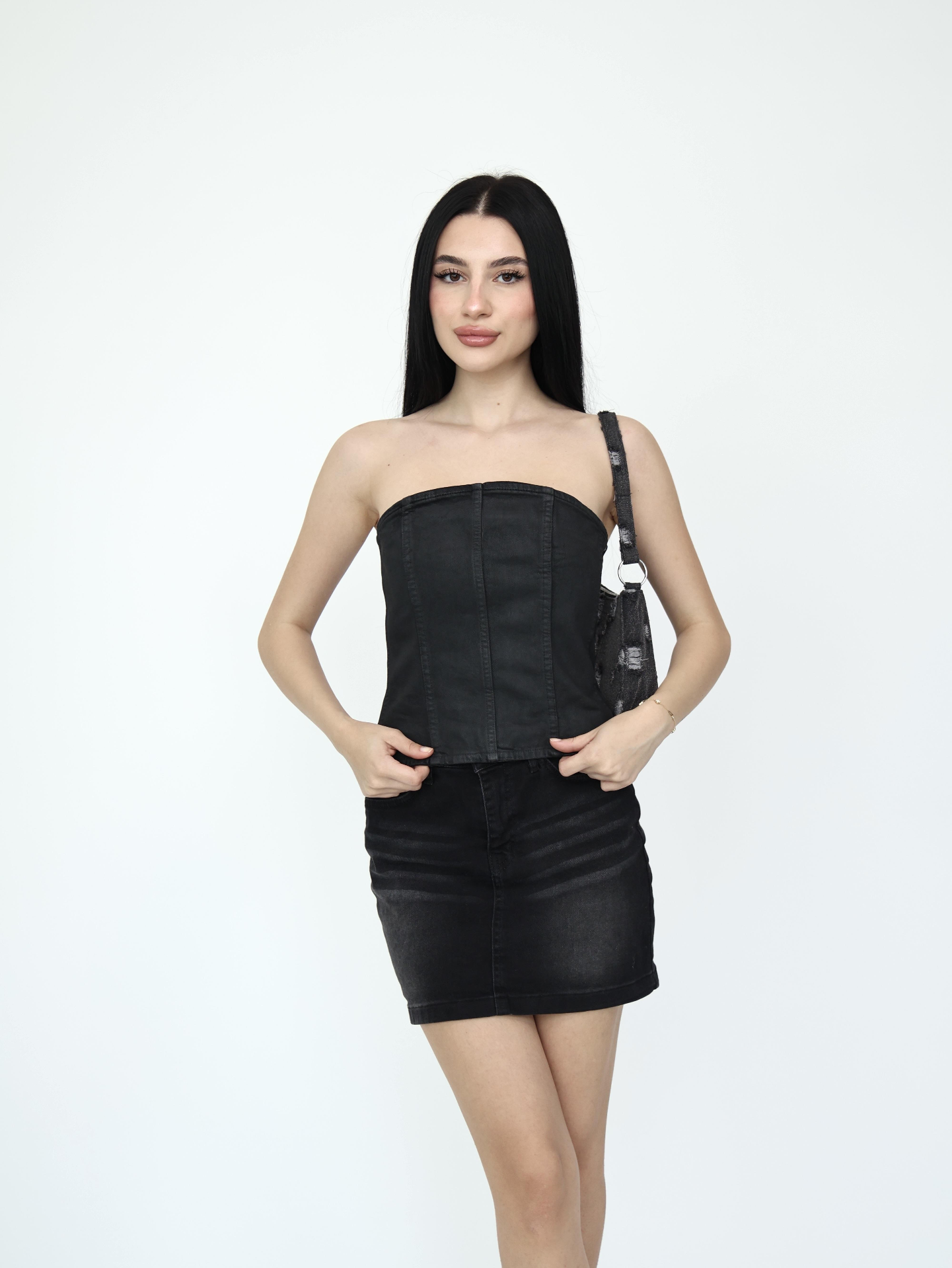 Denim Straplez Yaka Bluız