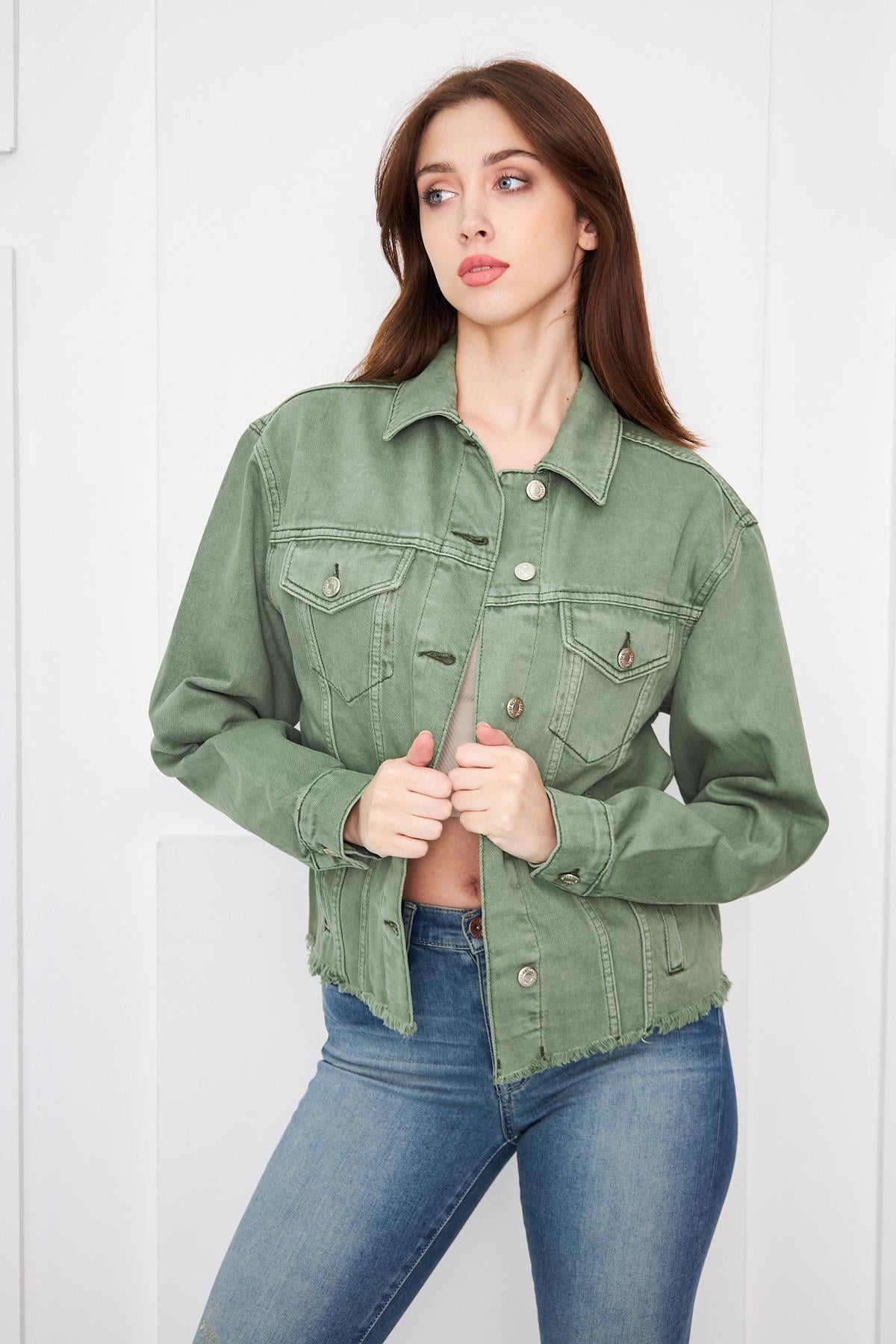 Dikiş Detay Oversize Kot Ceket
