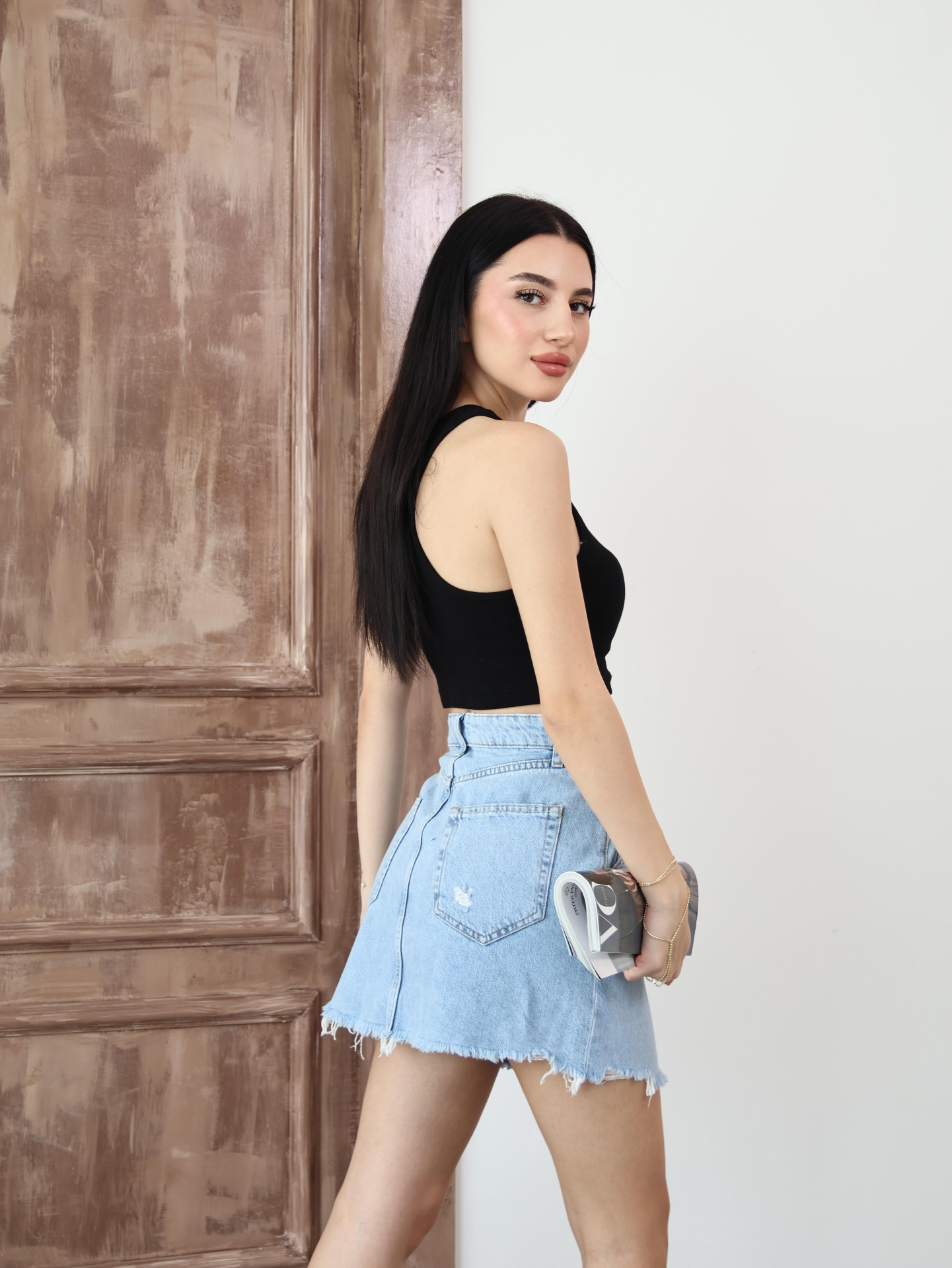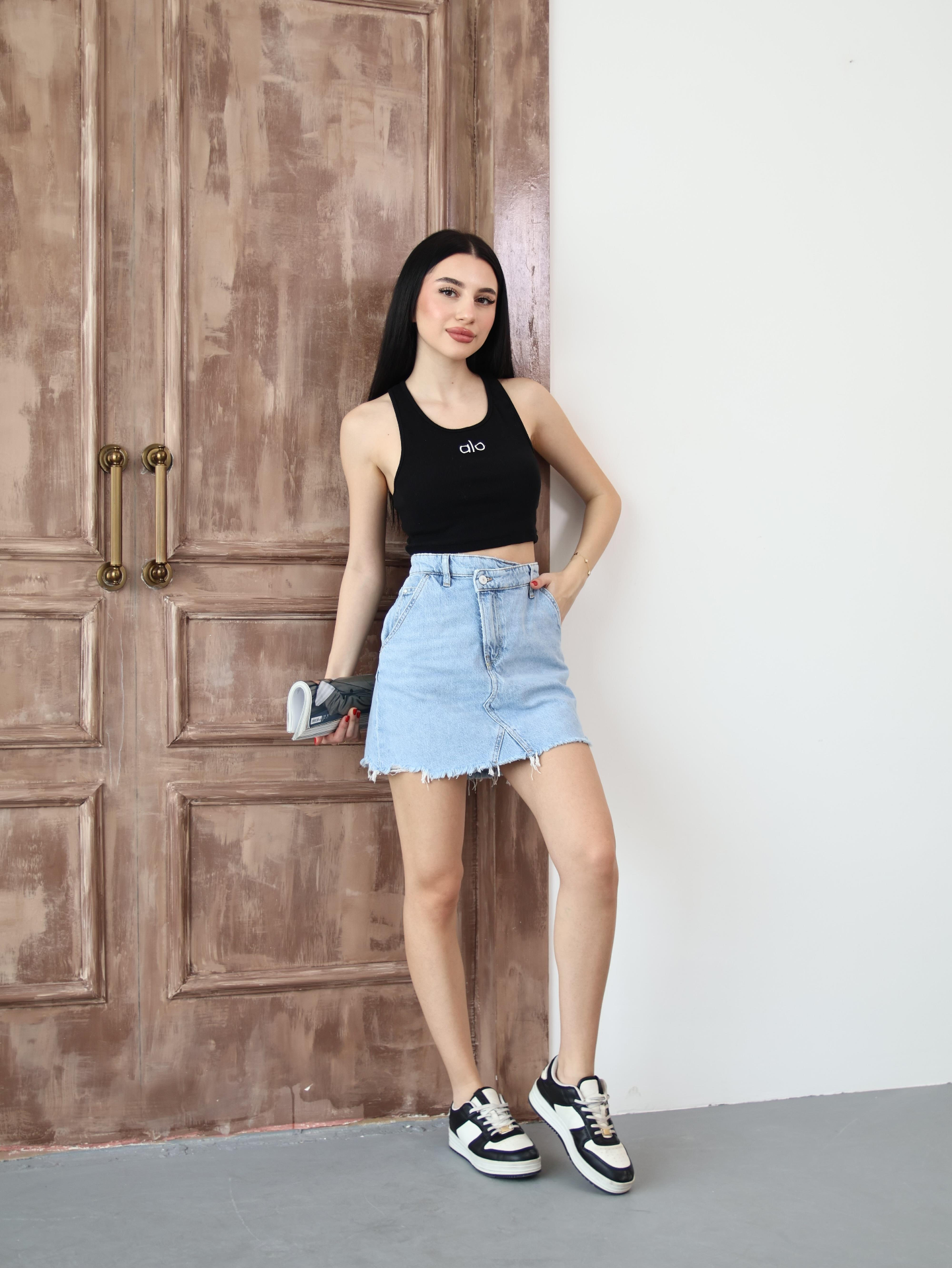 Düğme Detaylı Denim Etek