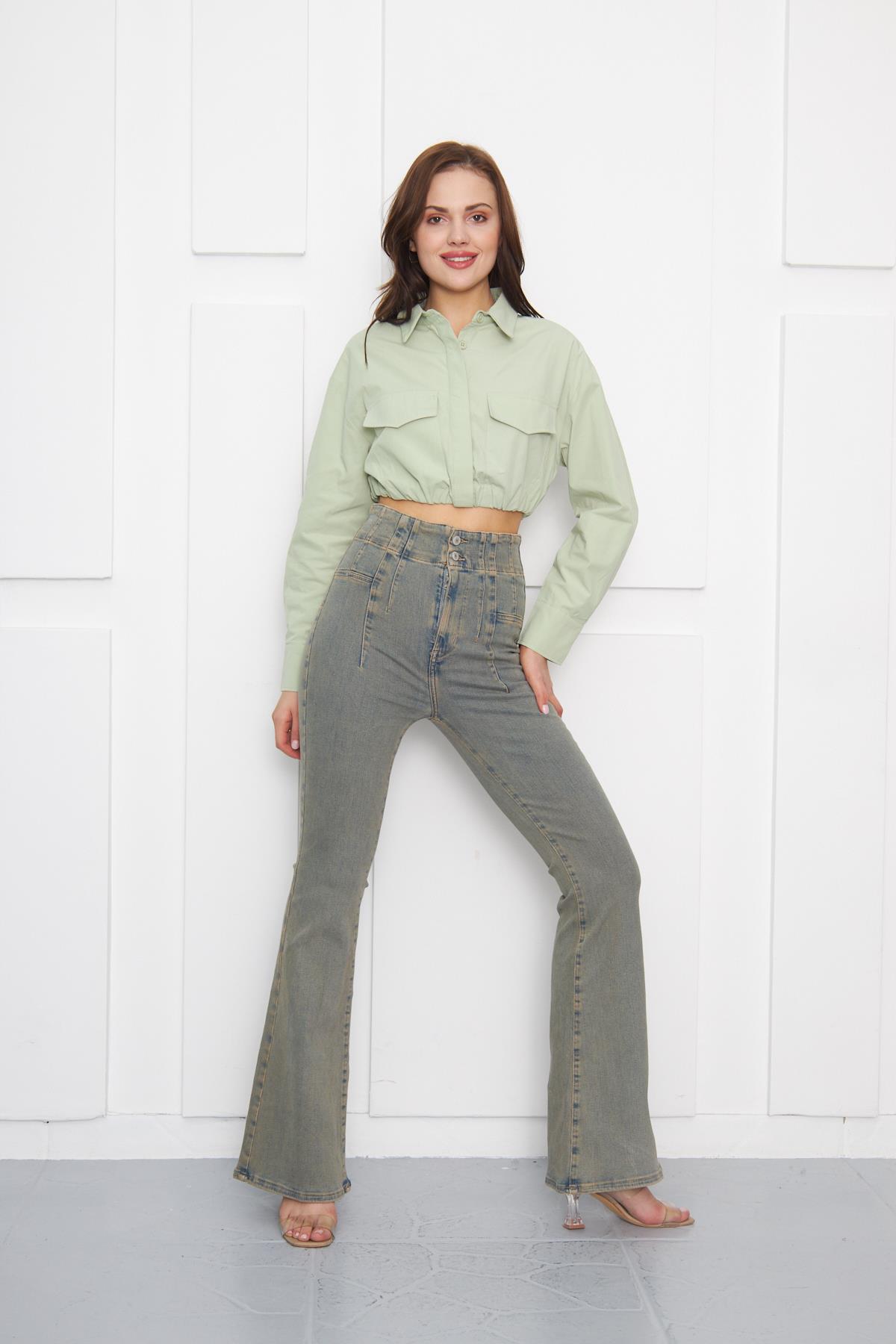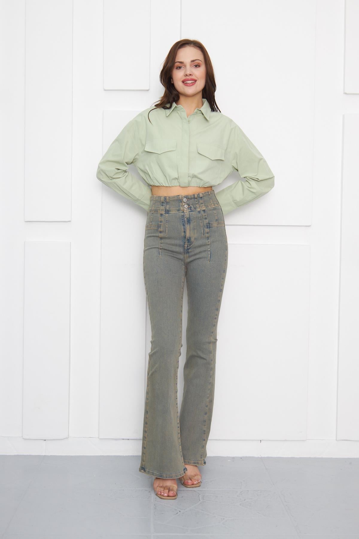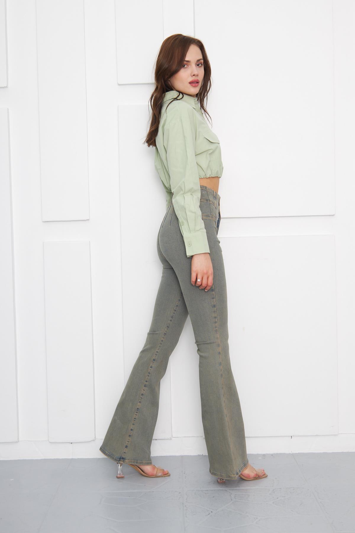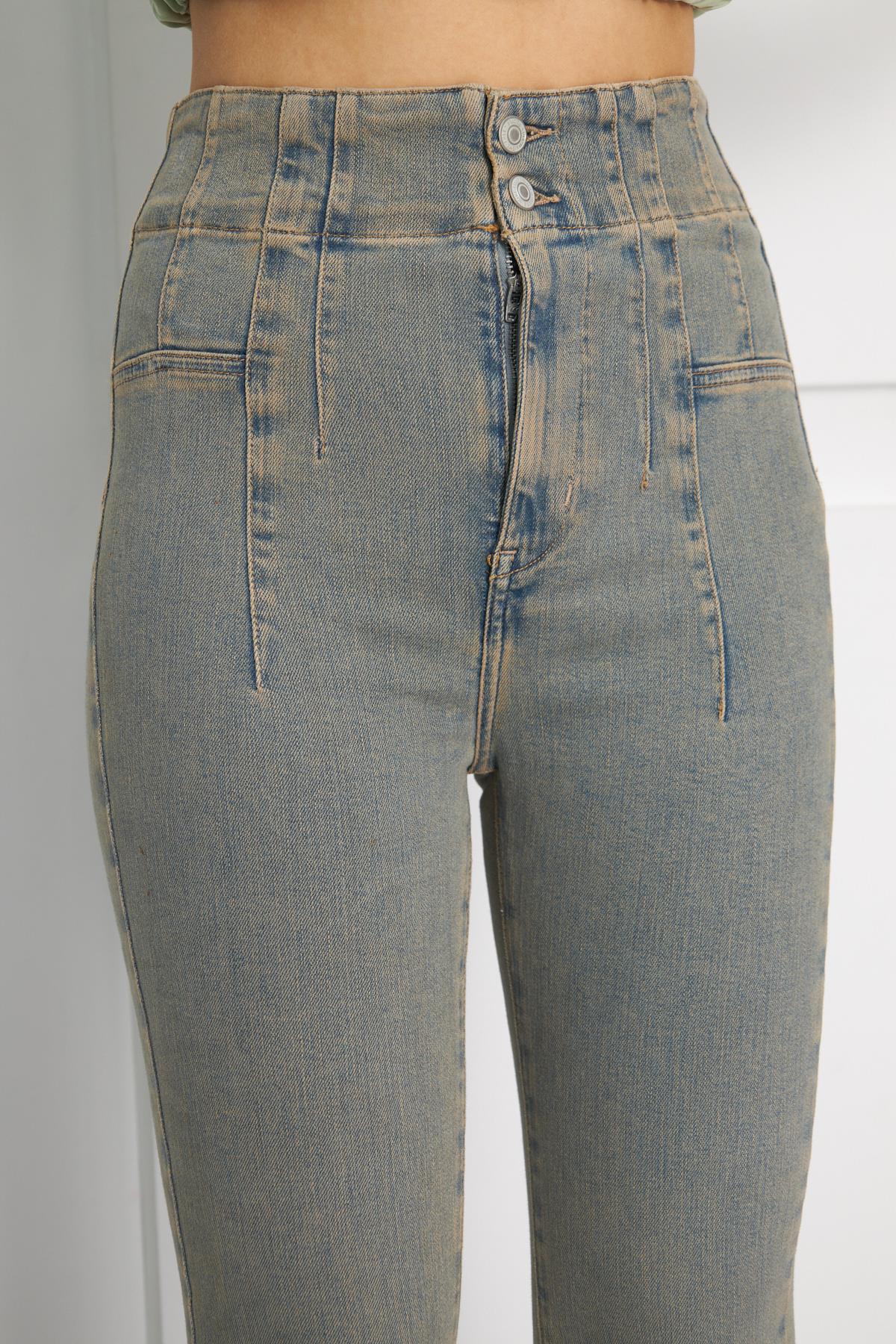 Flare Dikiş Detaylı Denim Pantolon