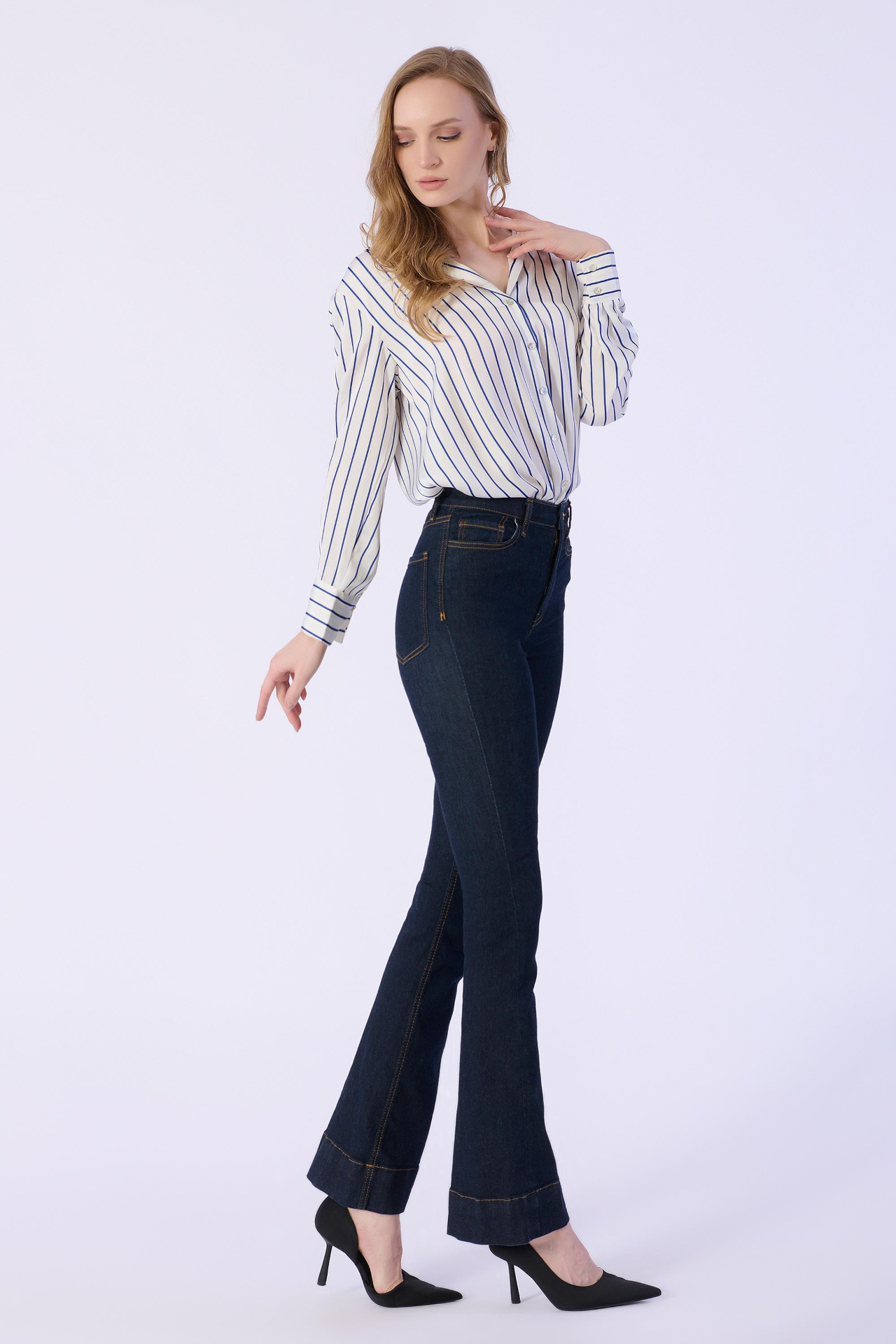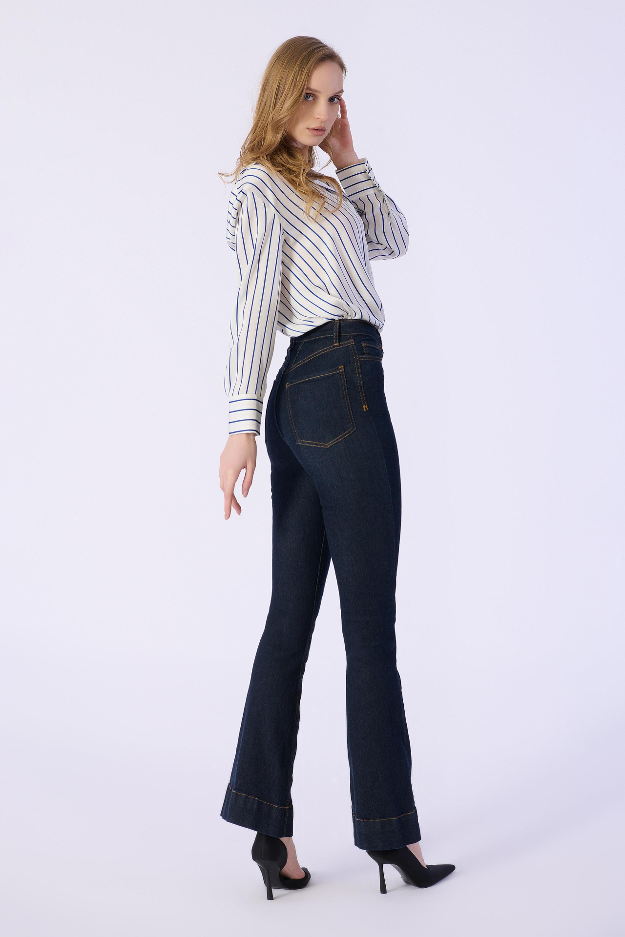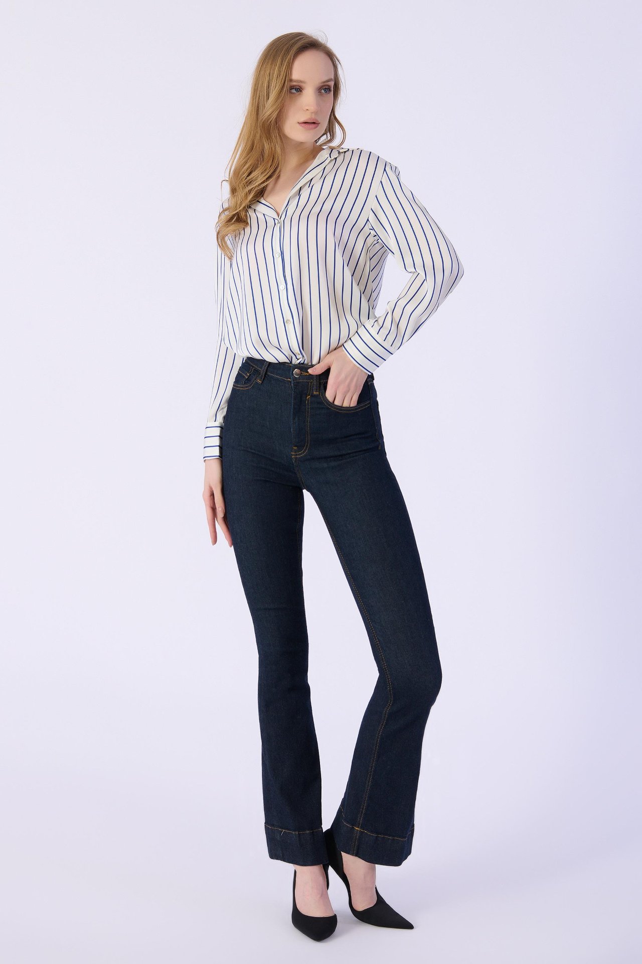 Flare Kalıp Düz Denim Pantolon