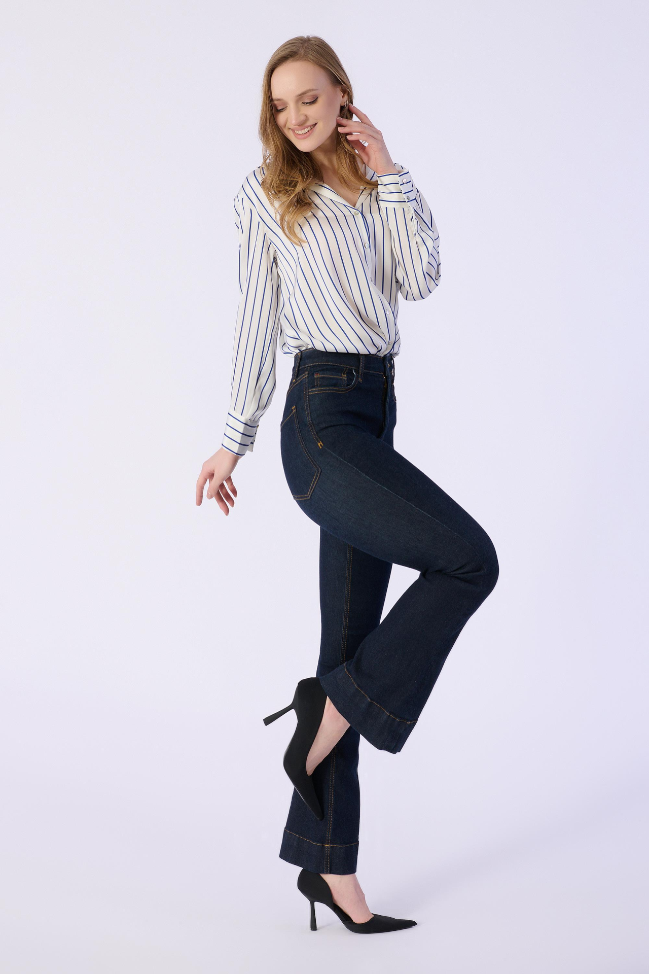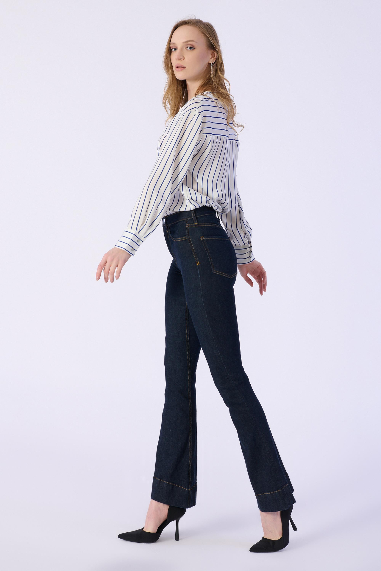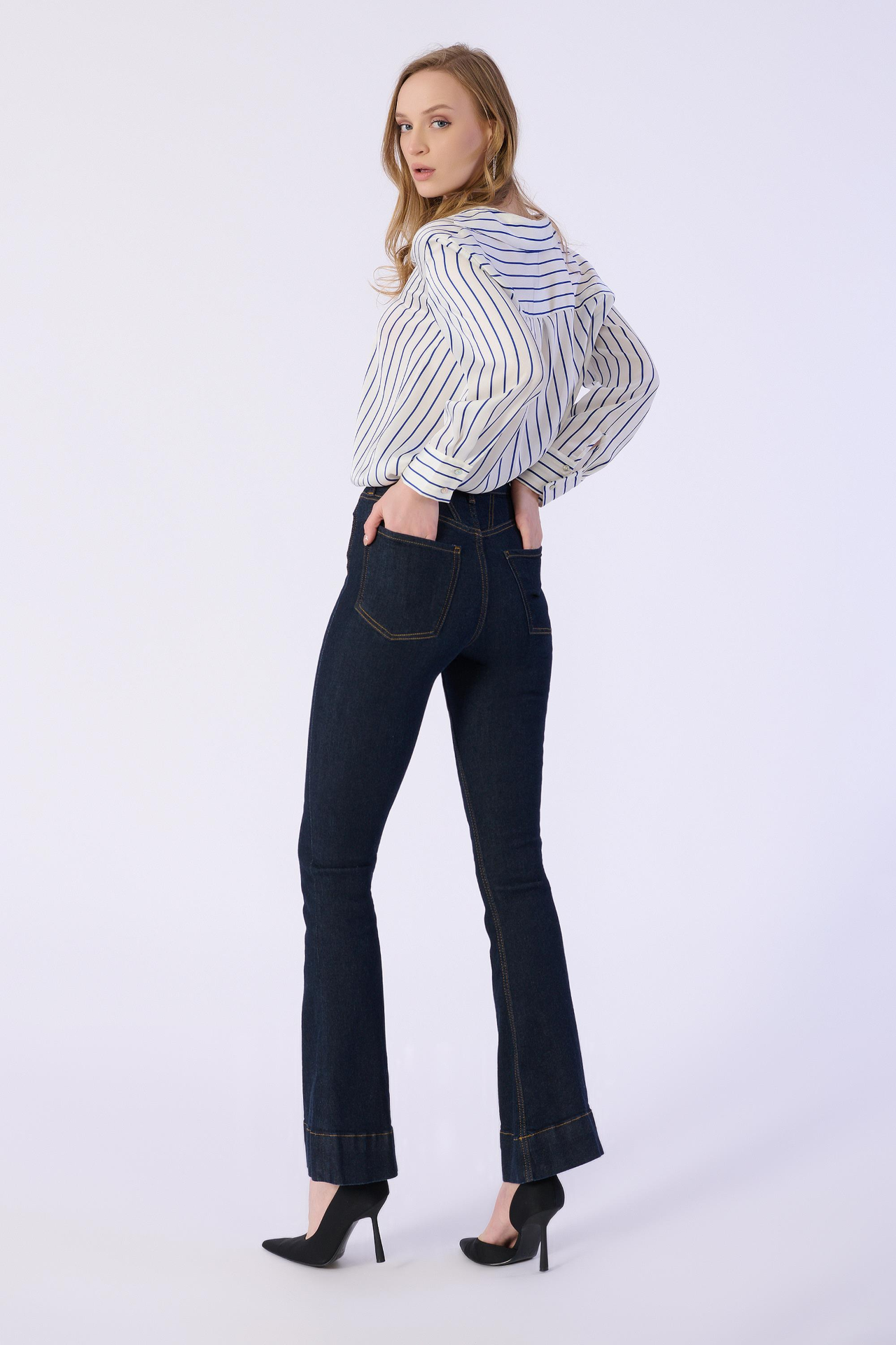 Flare Kalıp Düz Denim Pantolon
