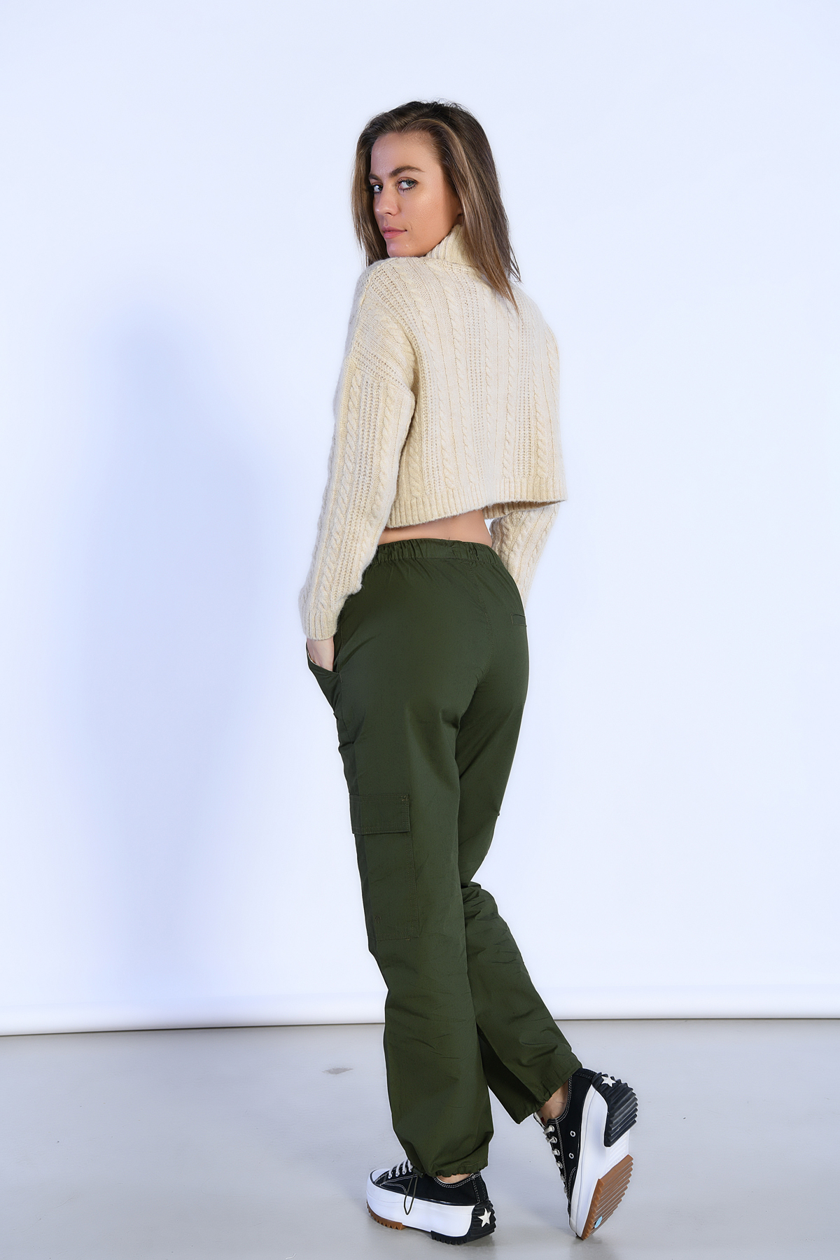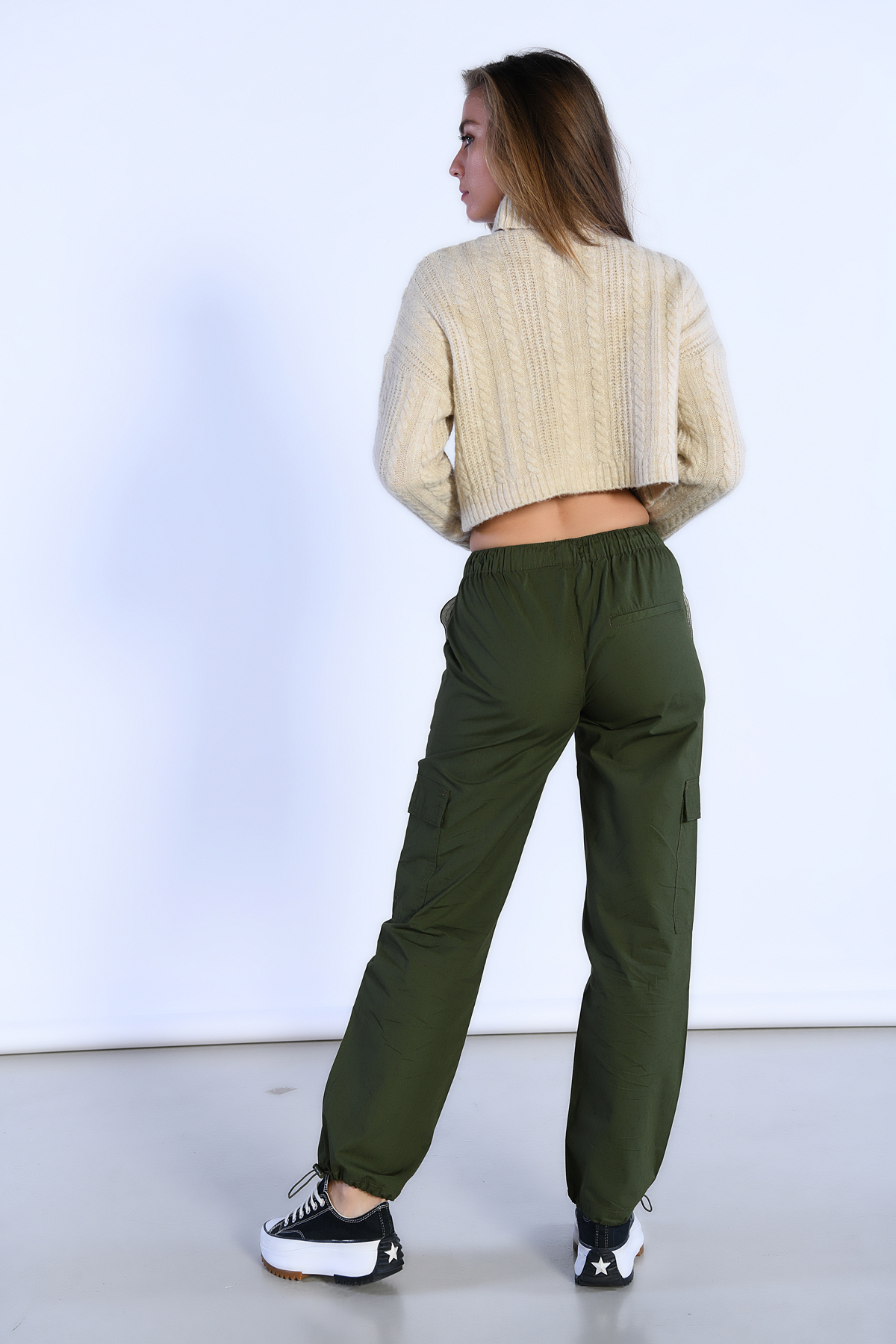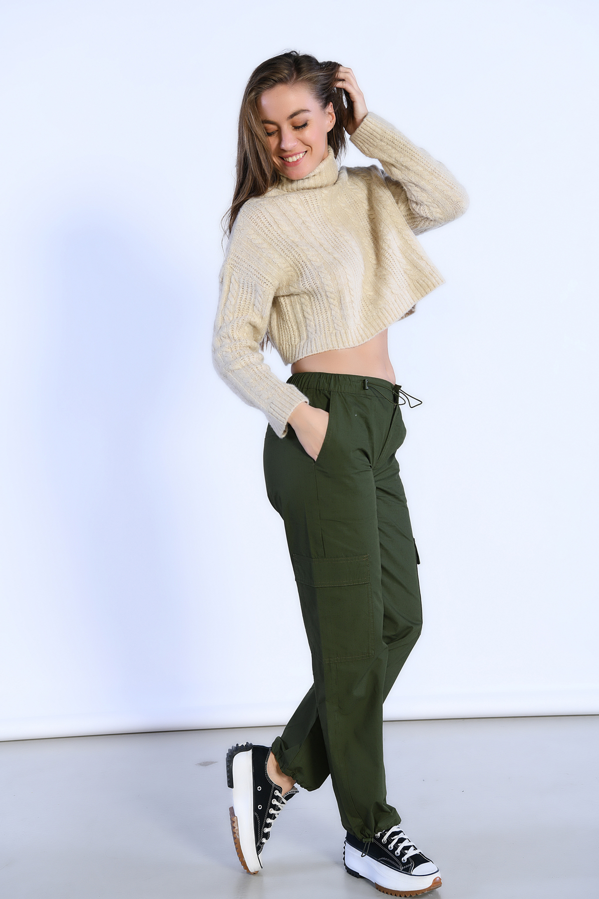 Haki Düşük Bel Belden ve Bilekten Ayarlanabilir Kargo Pantolon