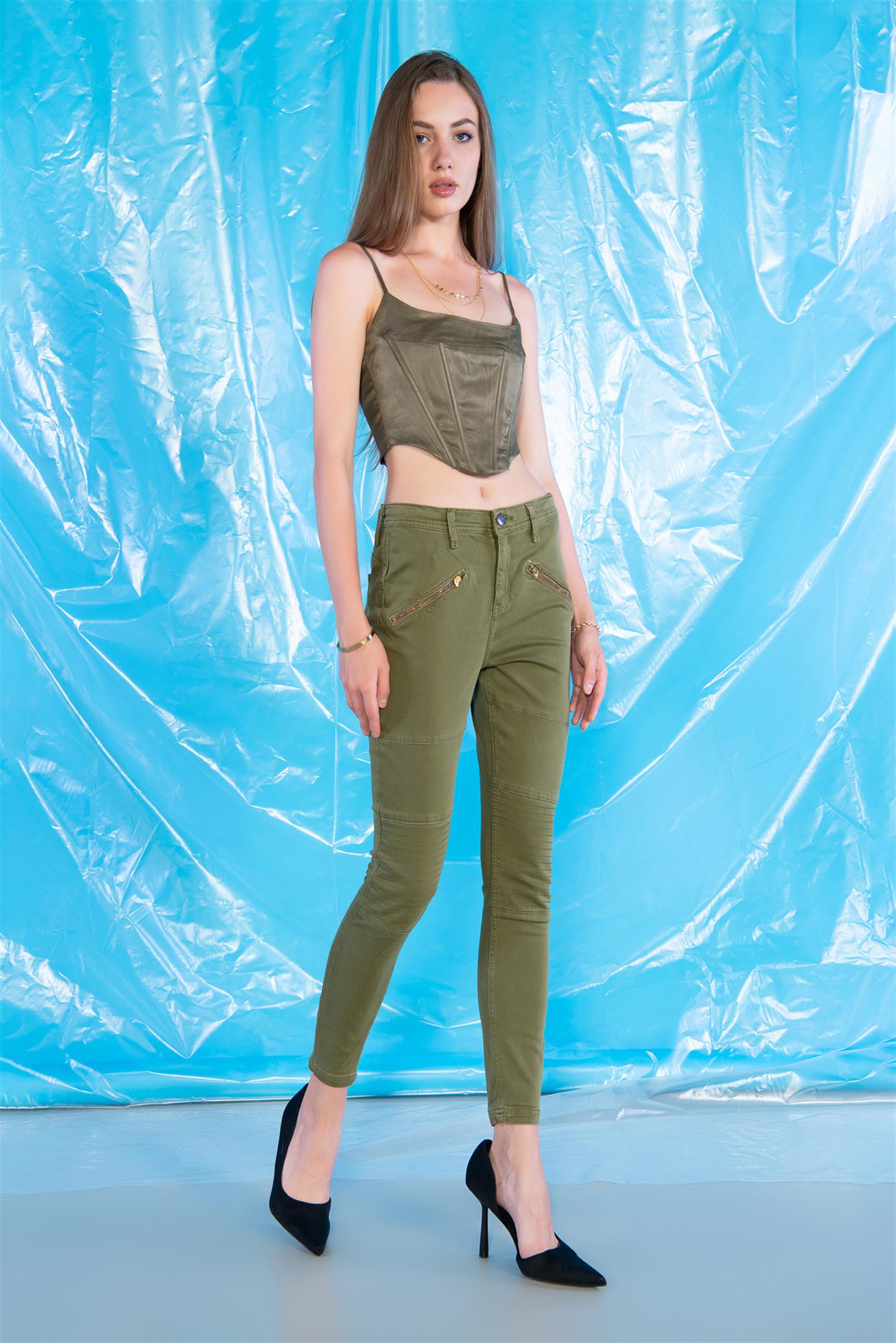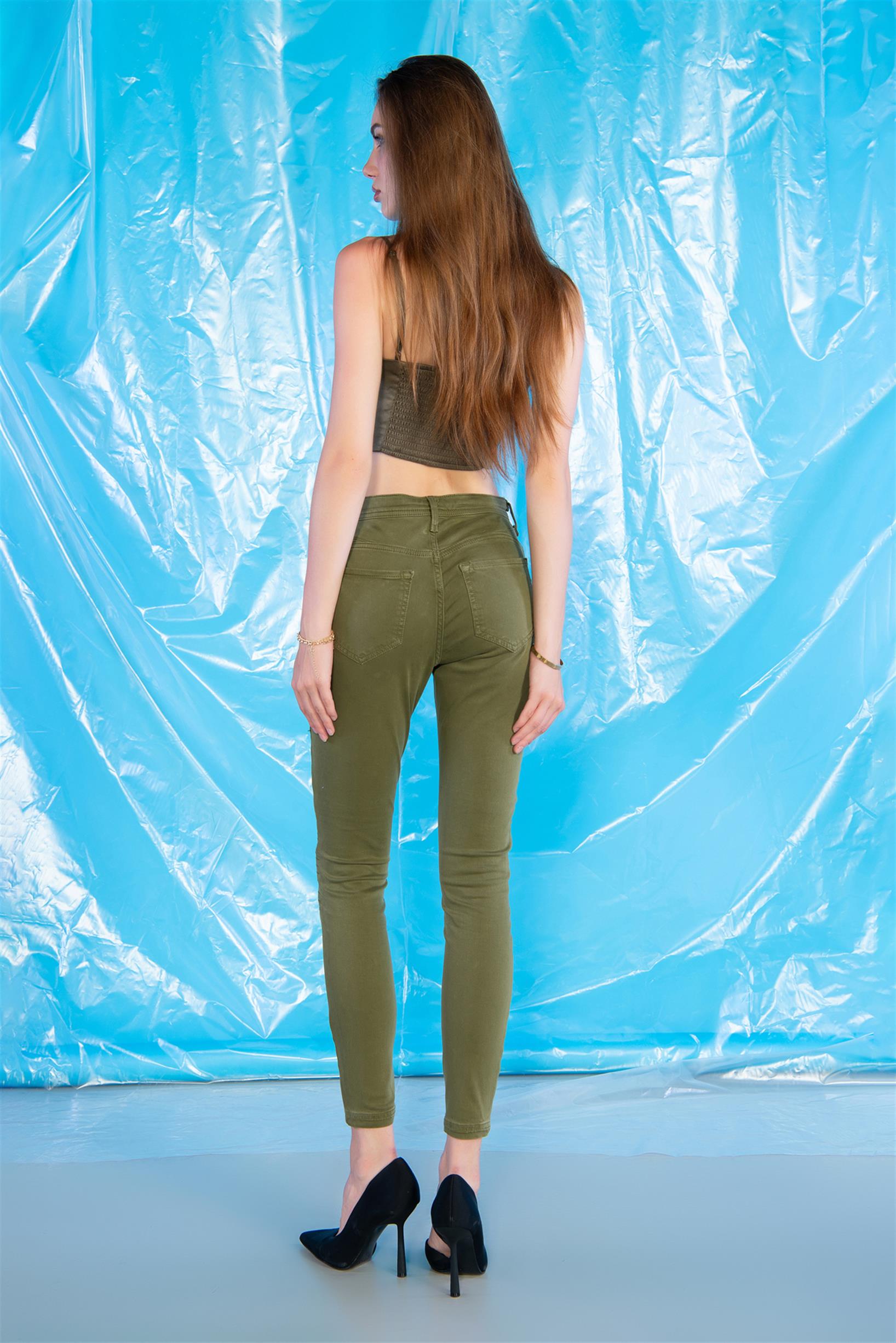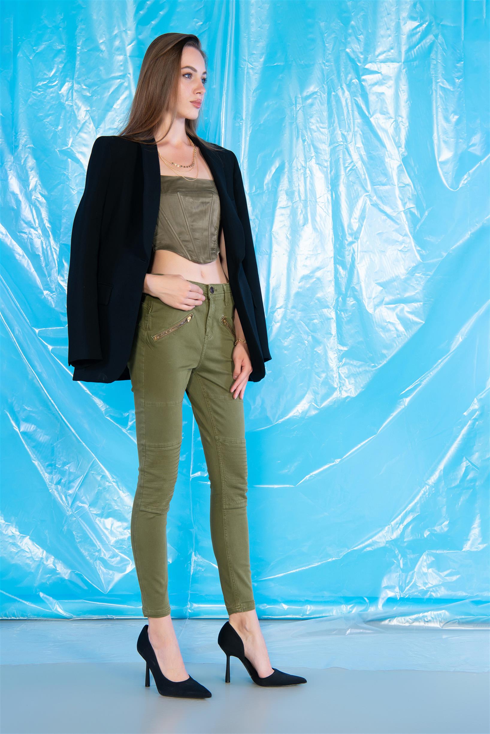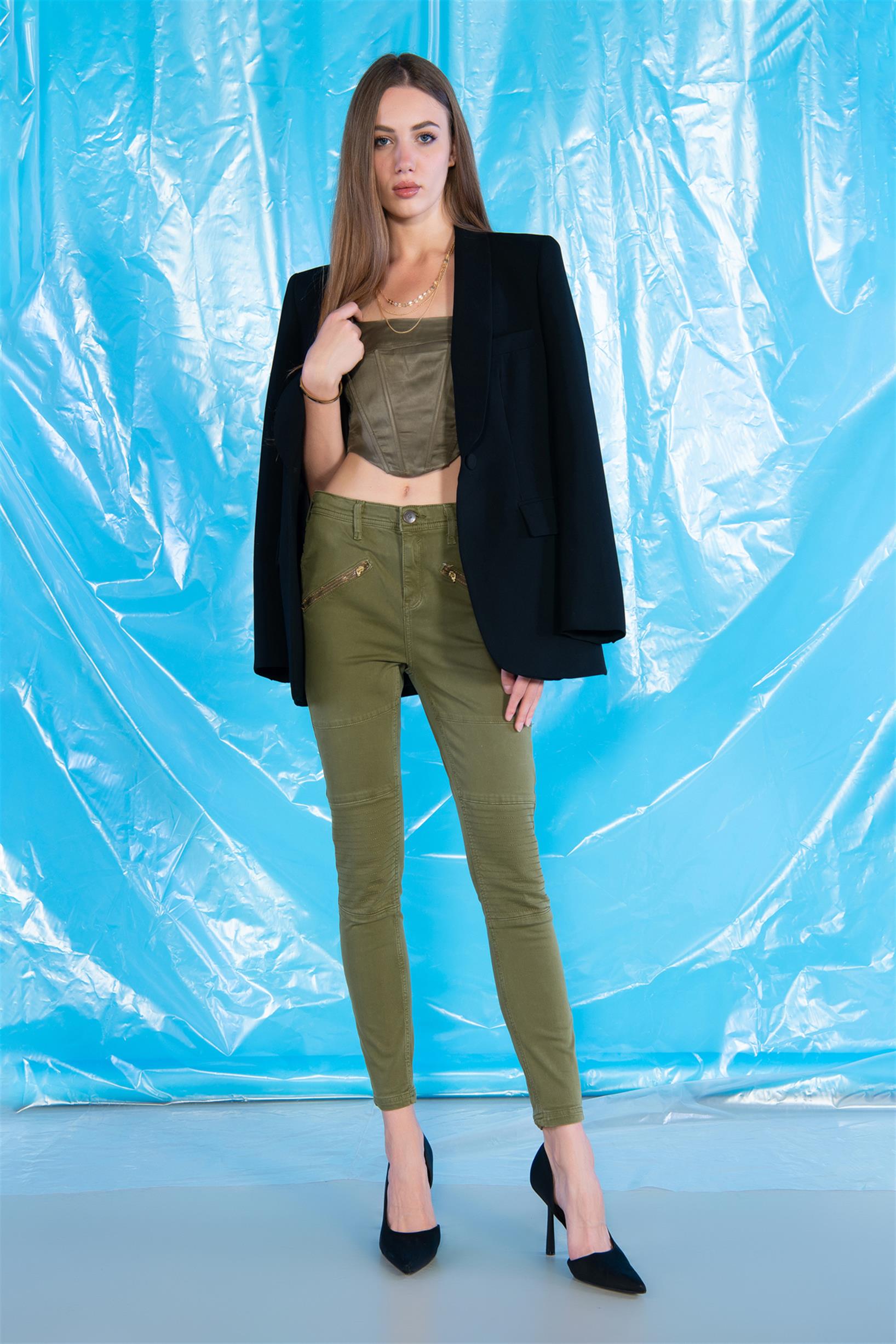 Haki Normal Bel Cep Fermuar Detaylı Skinny Jeans