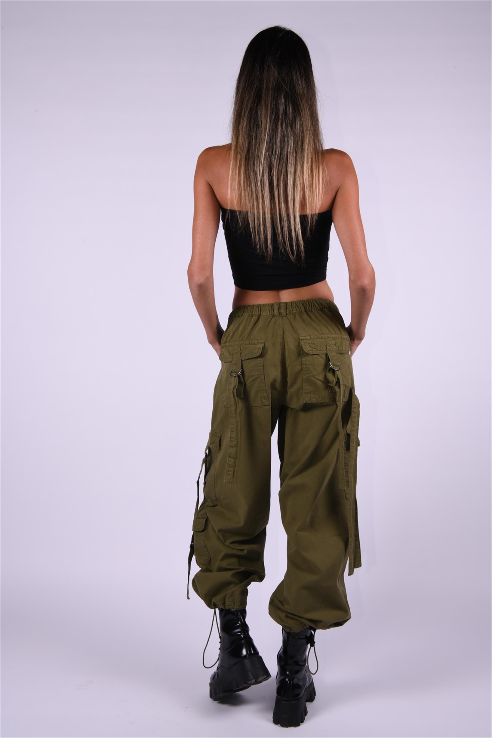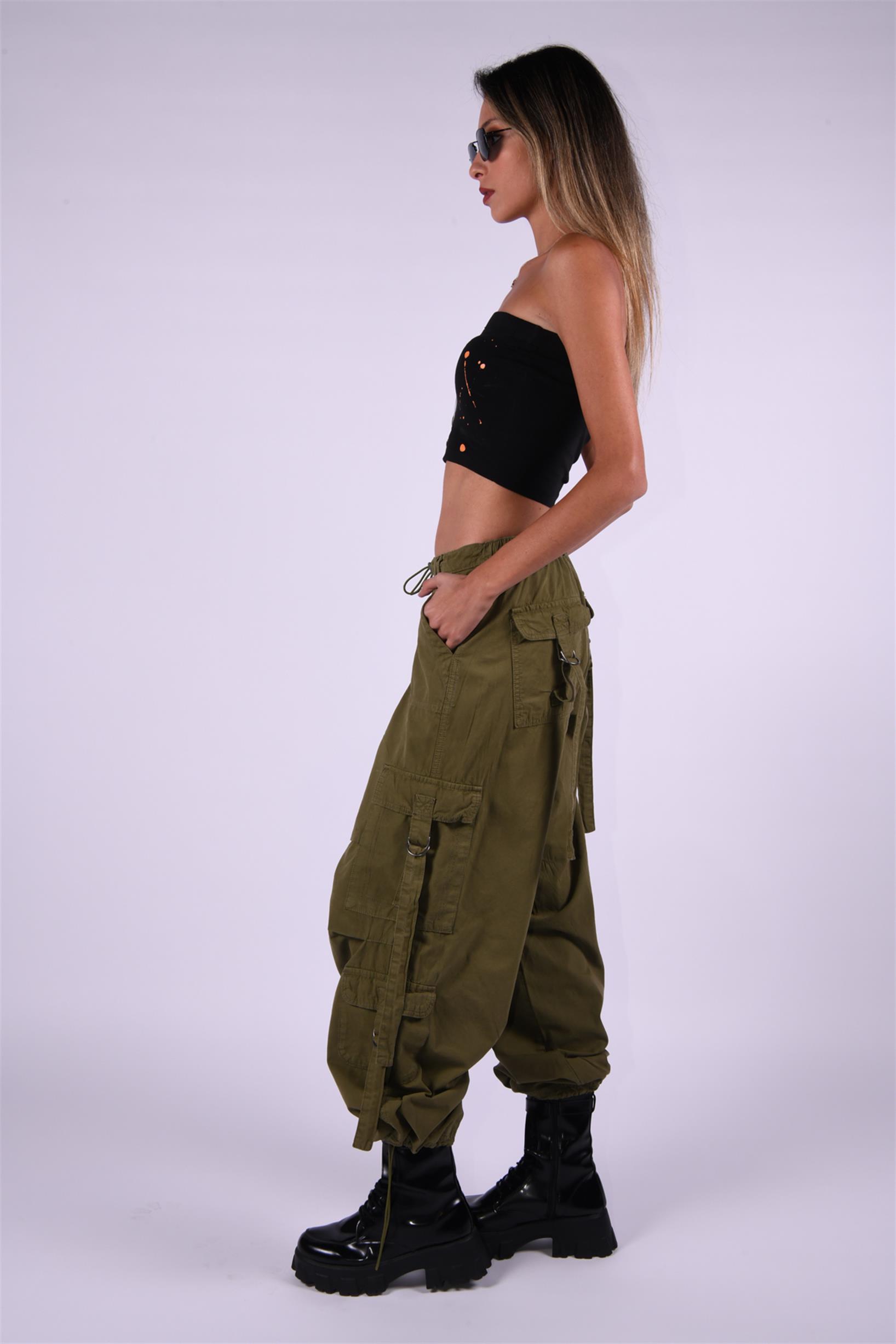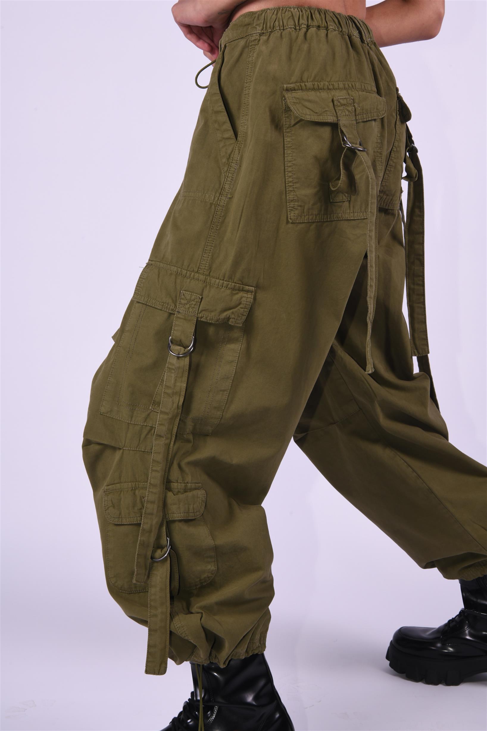 Haki Stoperli Kargo Paraşüt Pantolon