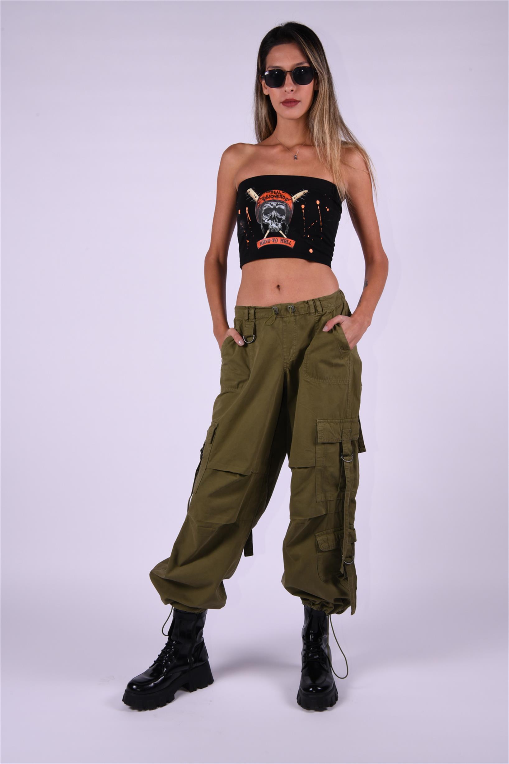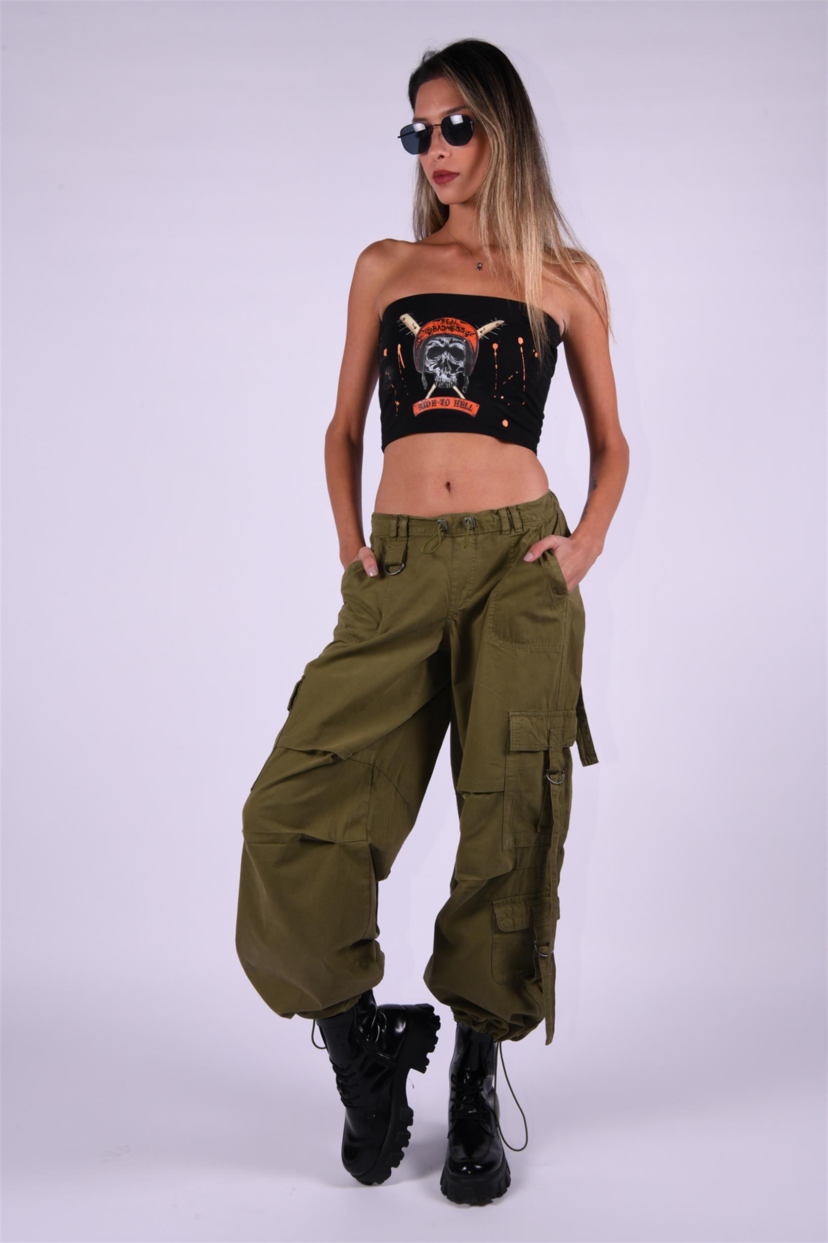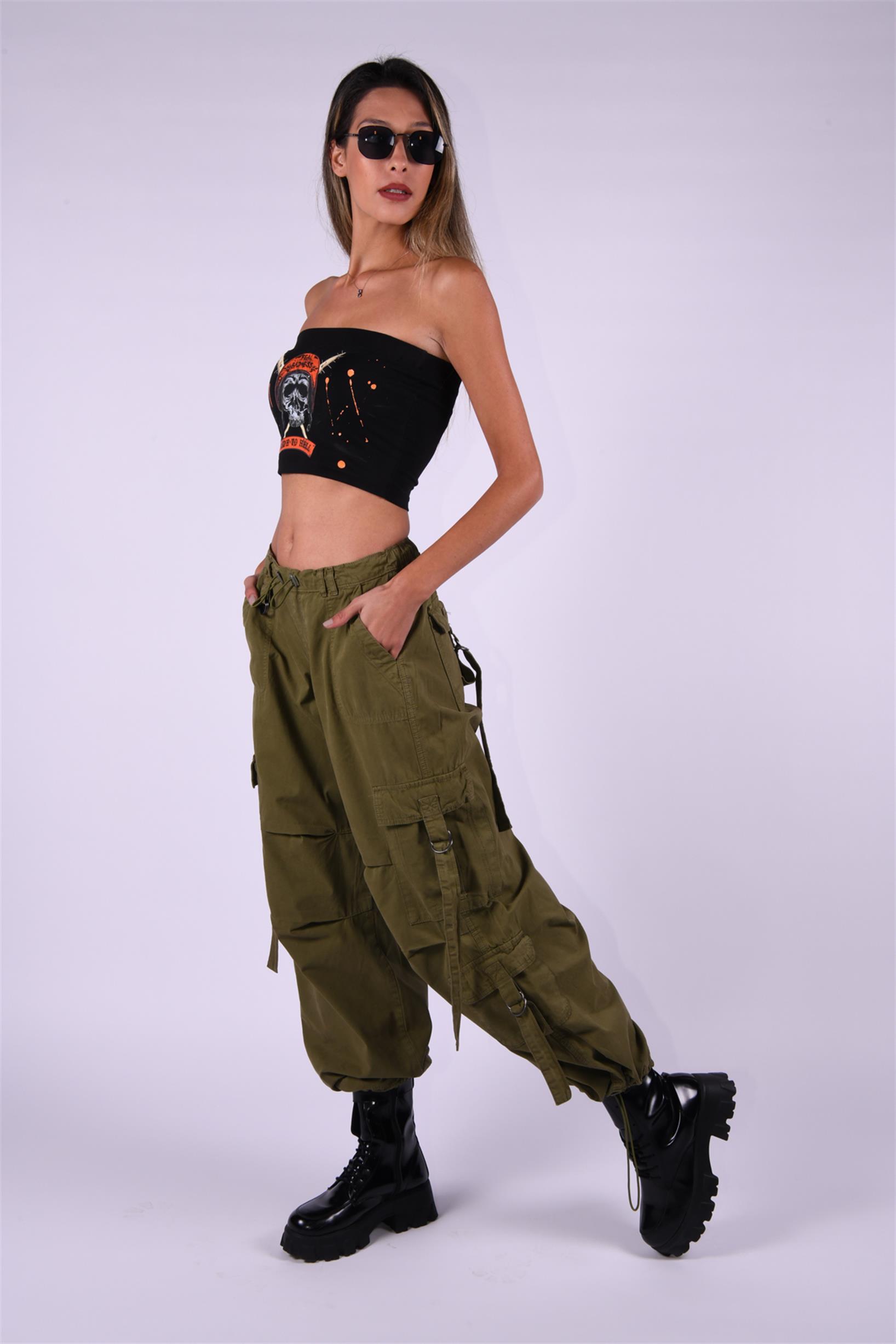Haki Stoperli Kargo Paraşüt Pantolon
