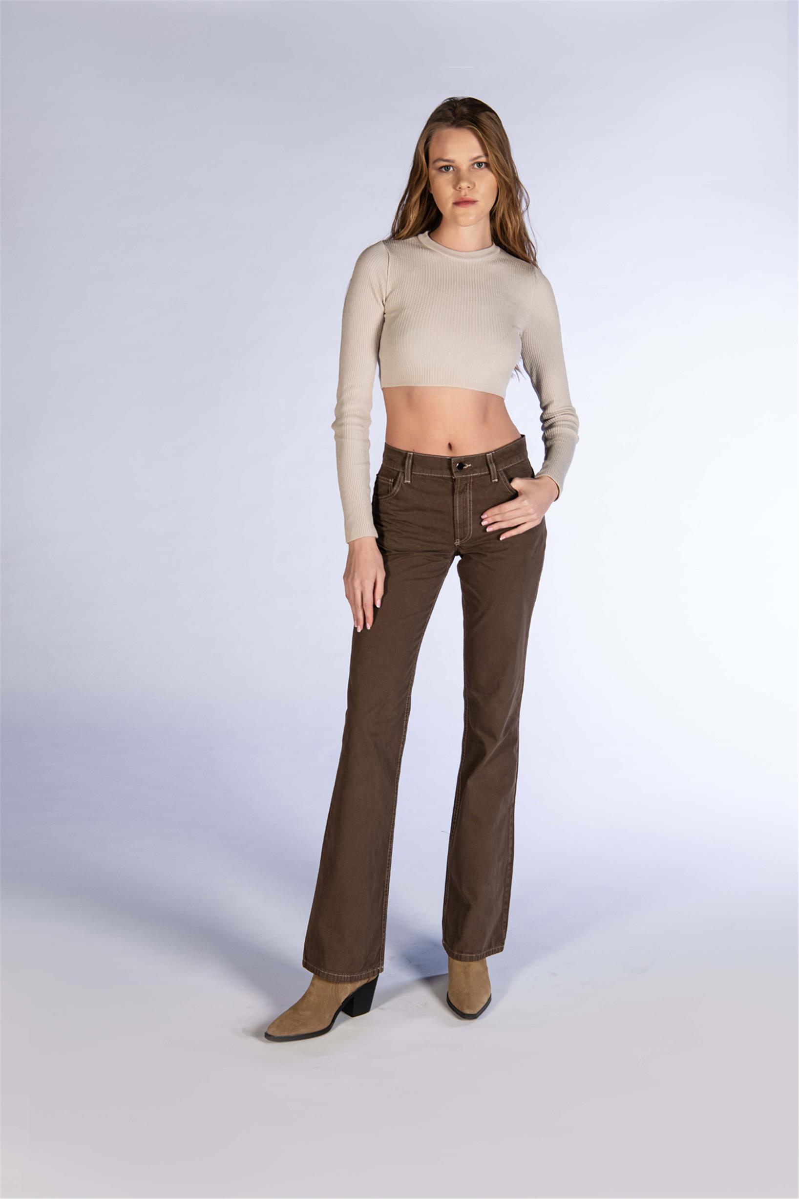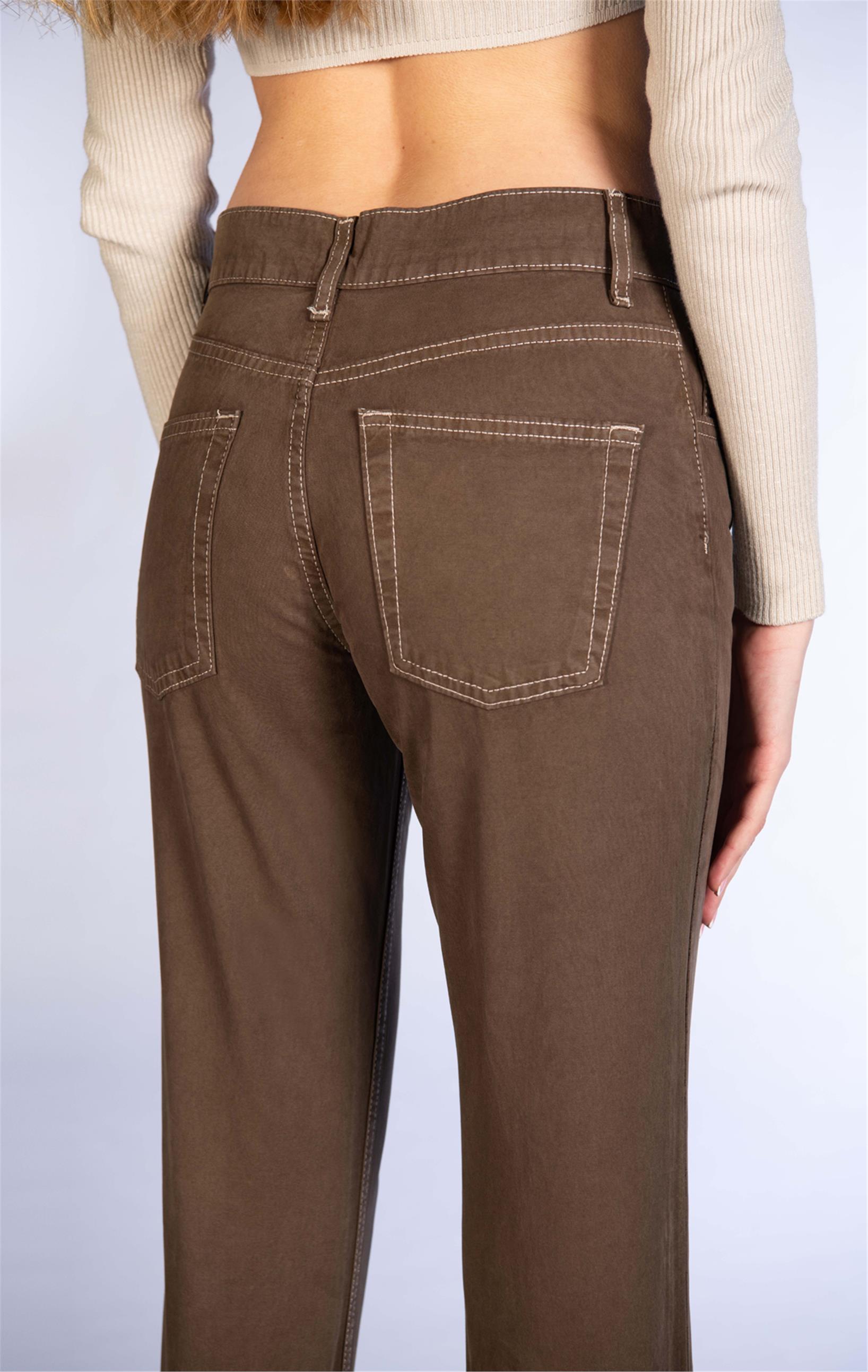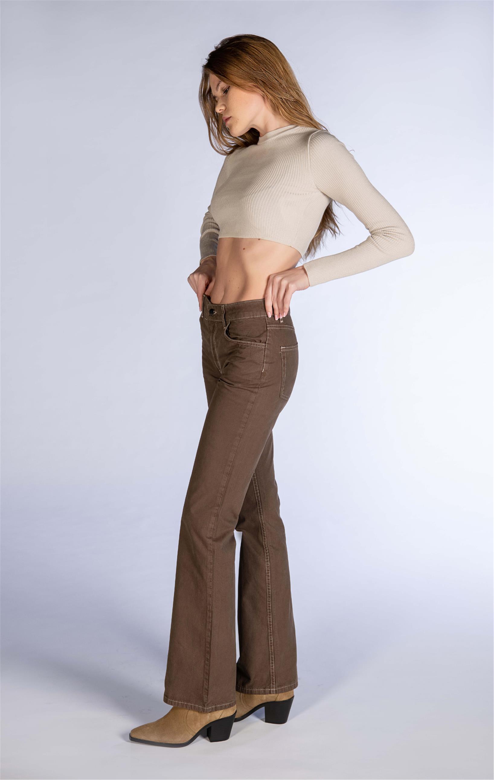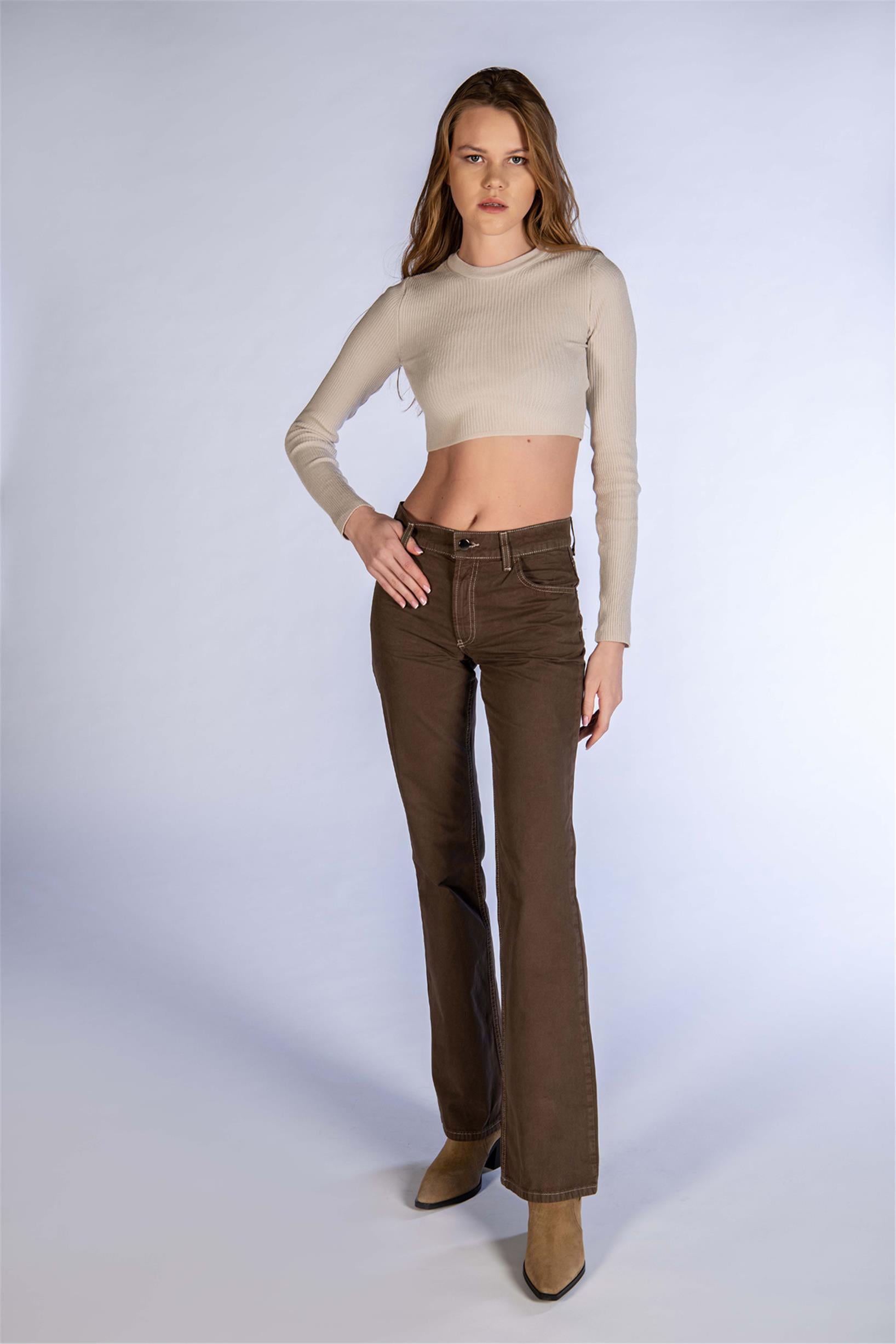 Kahverengi Normal Bel Dikiş Detaylı Flare Denim Jeans