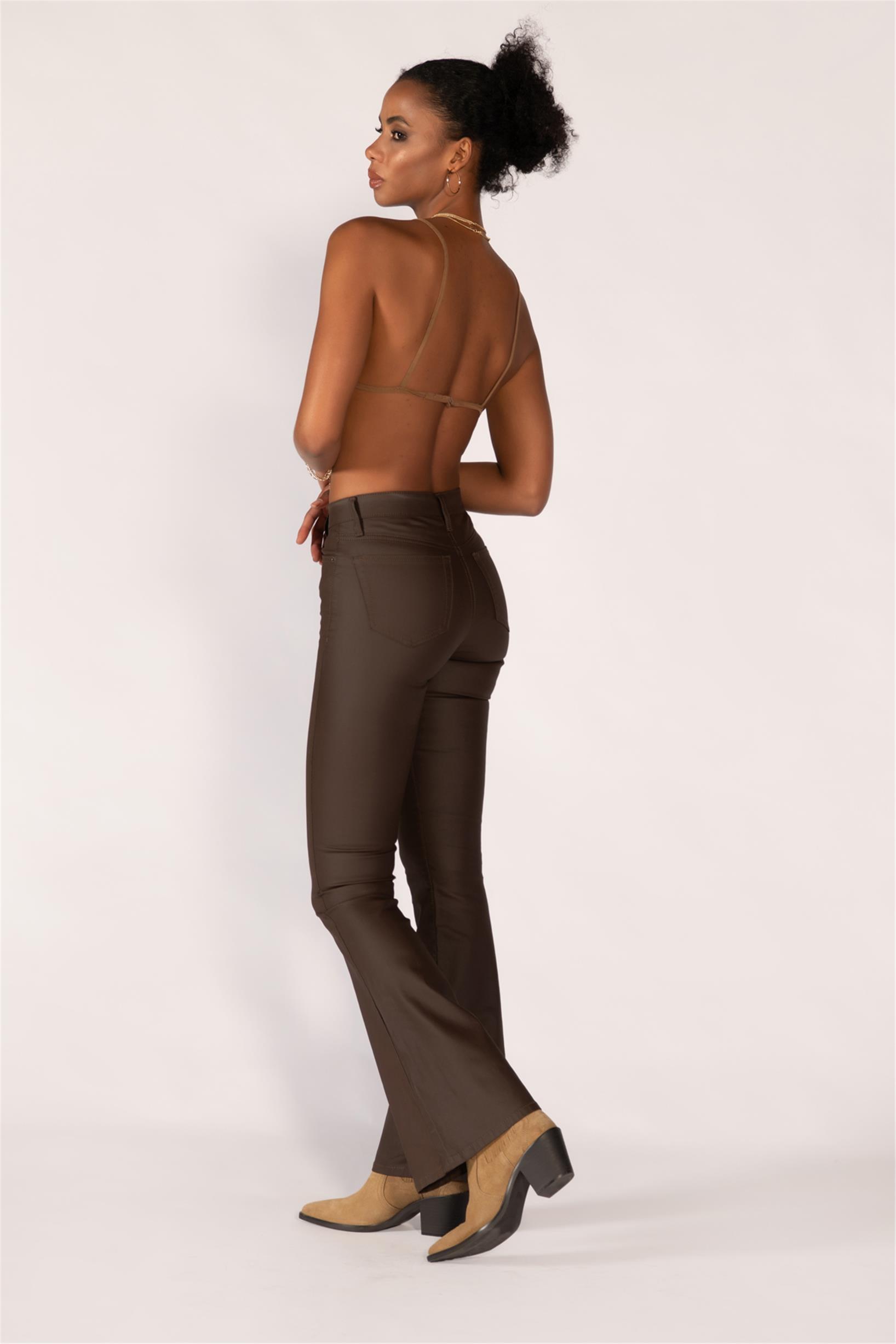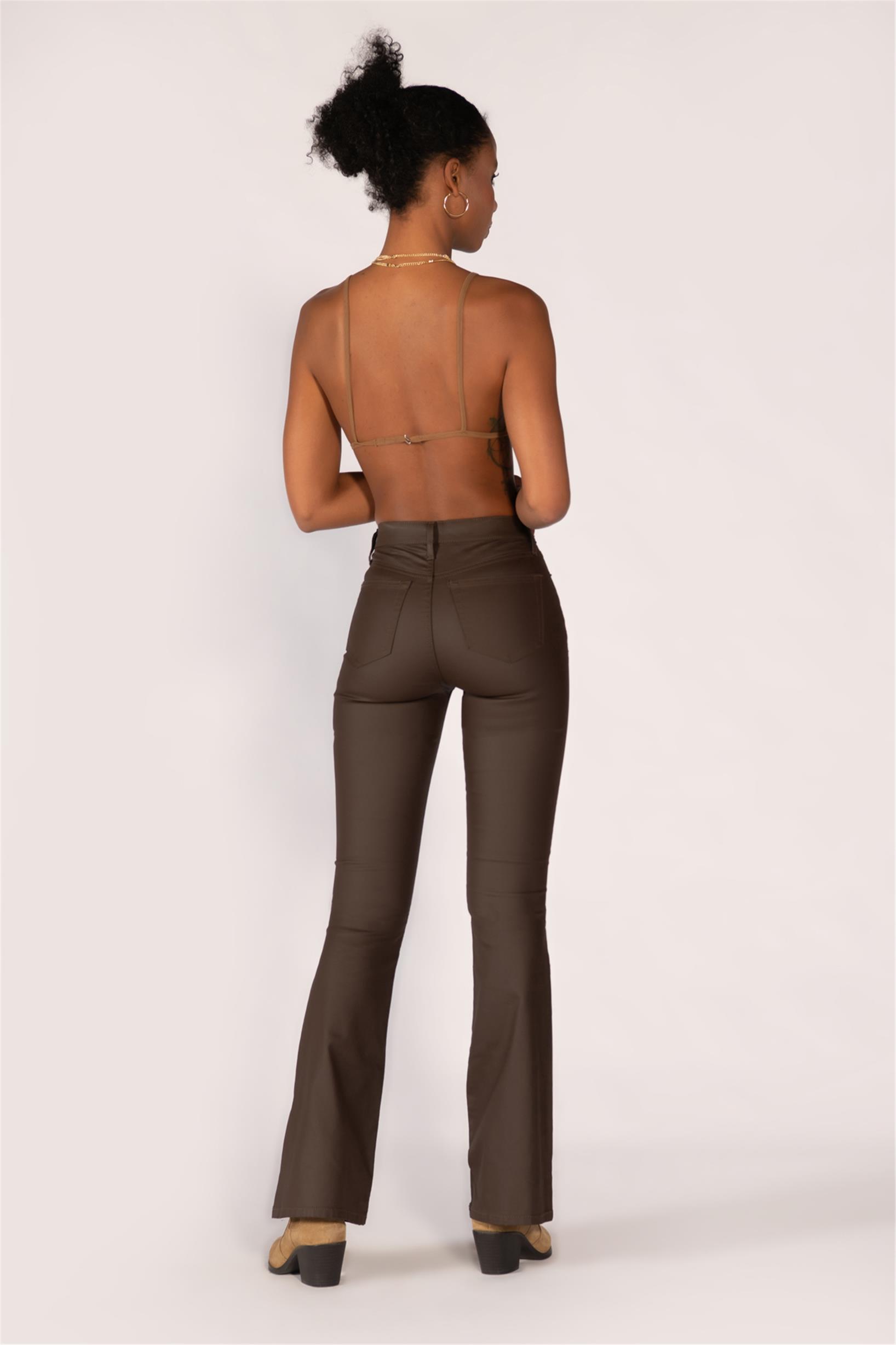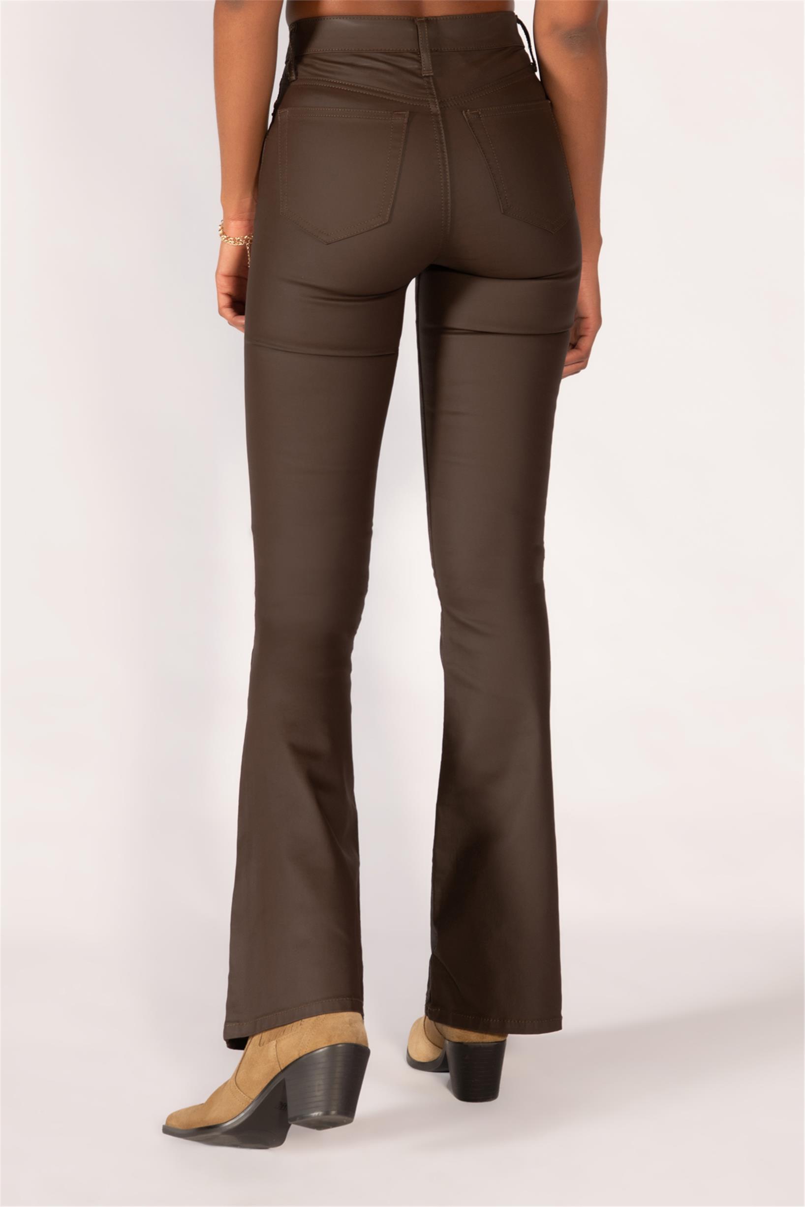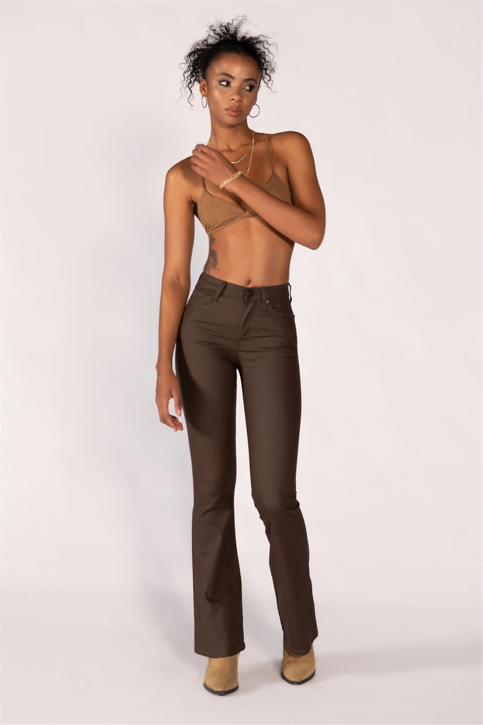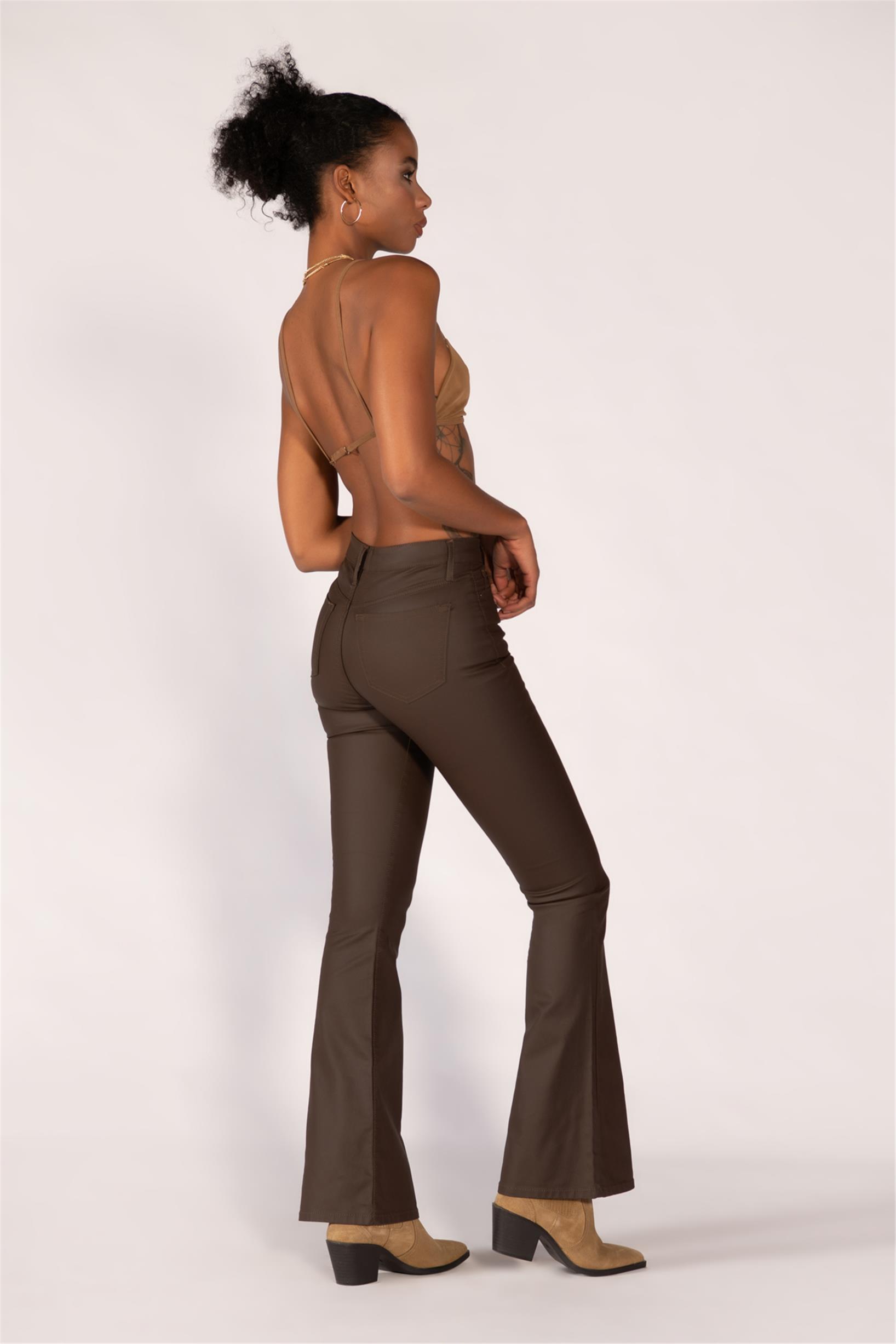 Kahverengi Yüksek Bel Suni Deri Flare Pantolon
