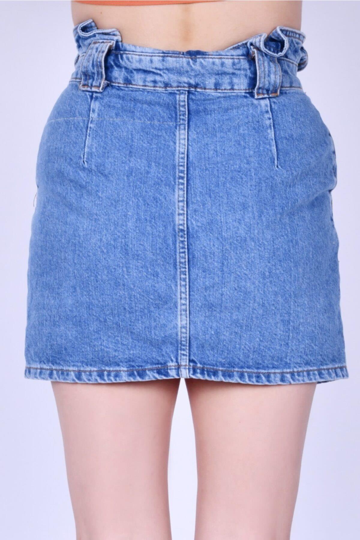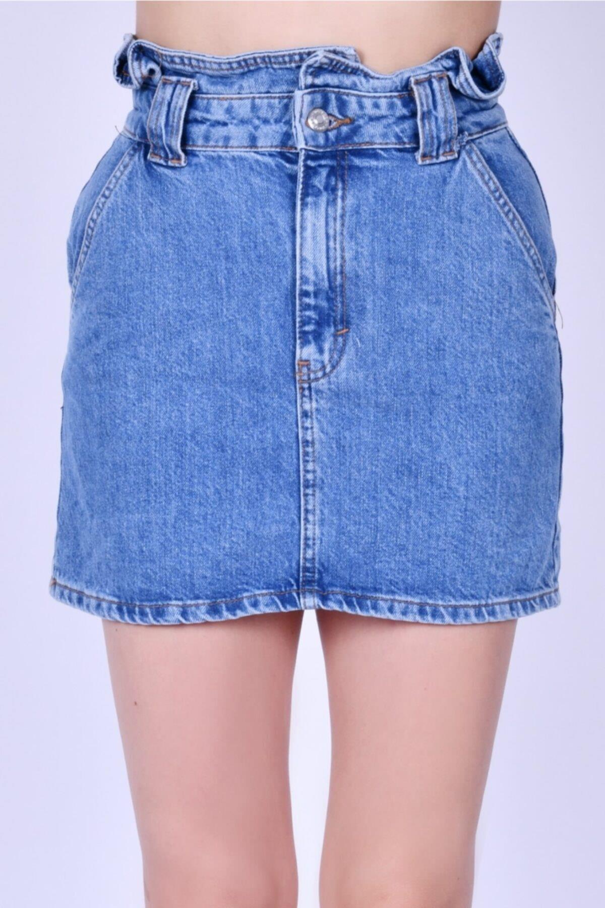 KEMER ÜSTÜ PİLELİ YUKSEK BEL AÇİK MAVİ ETEK