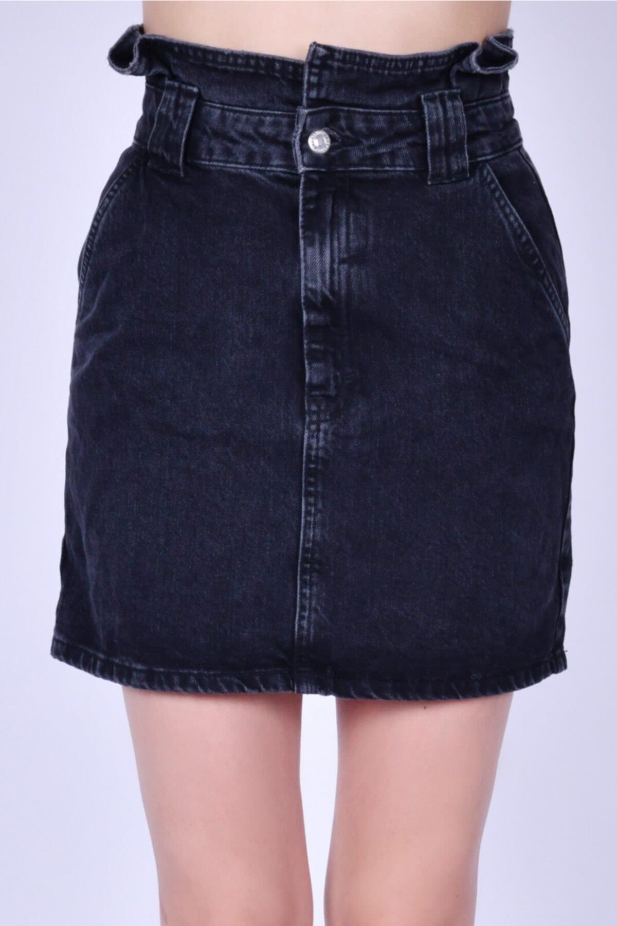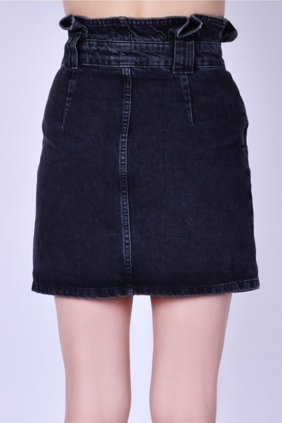 KEMER ÜSTÜ PİLELİ YÜKSEK BEL ANTRASİT DENİM ETEK