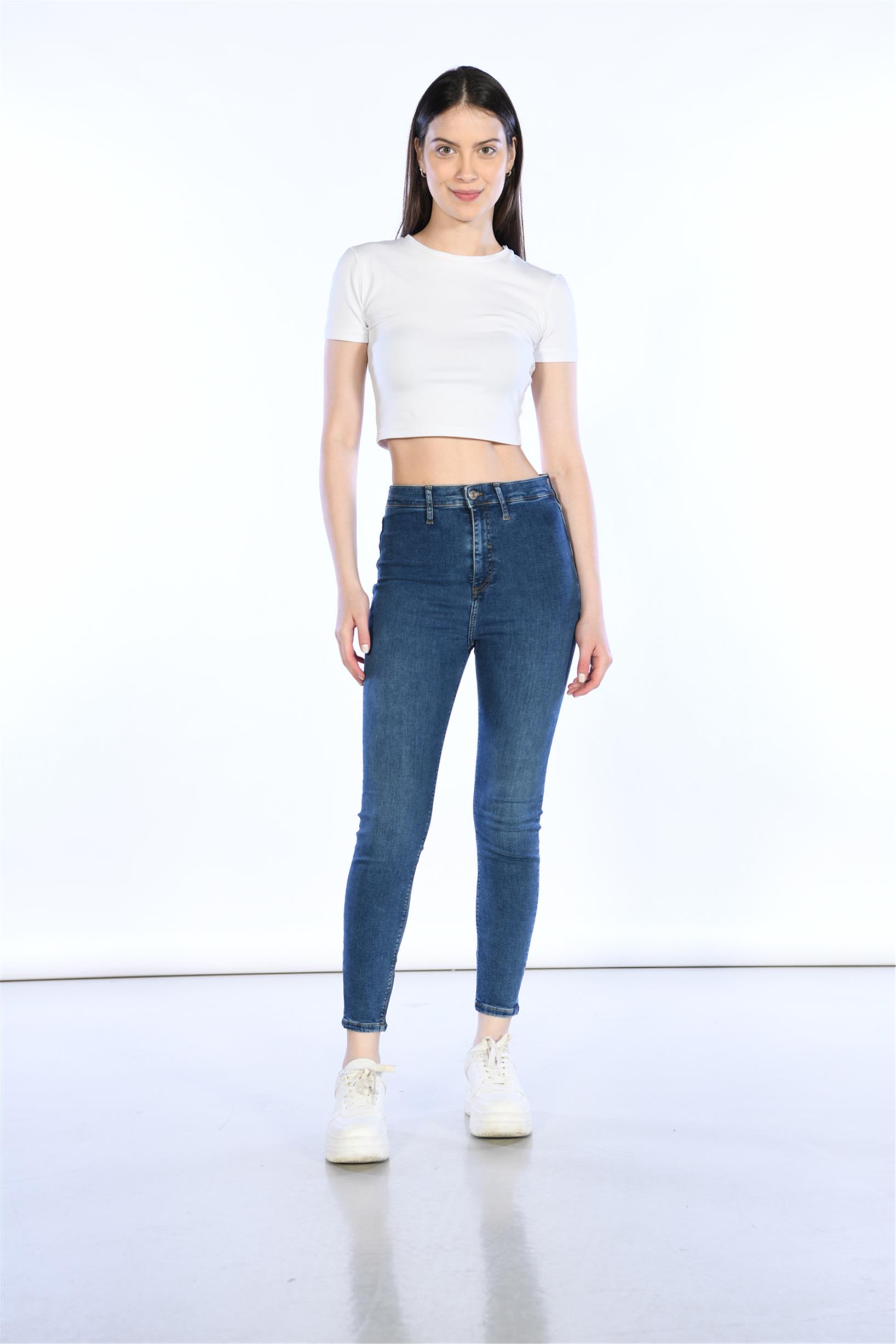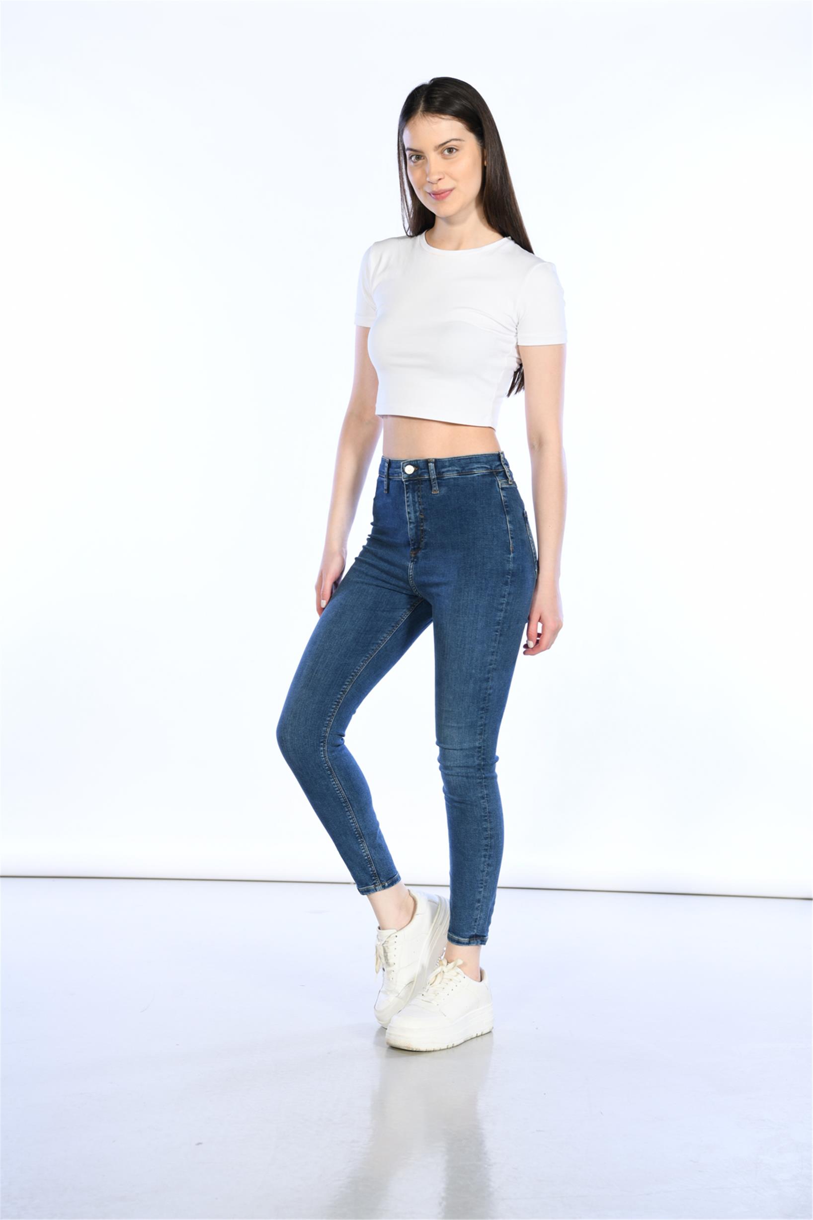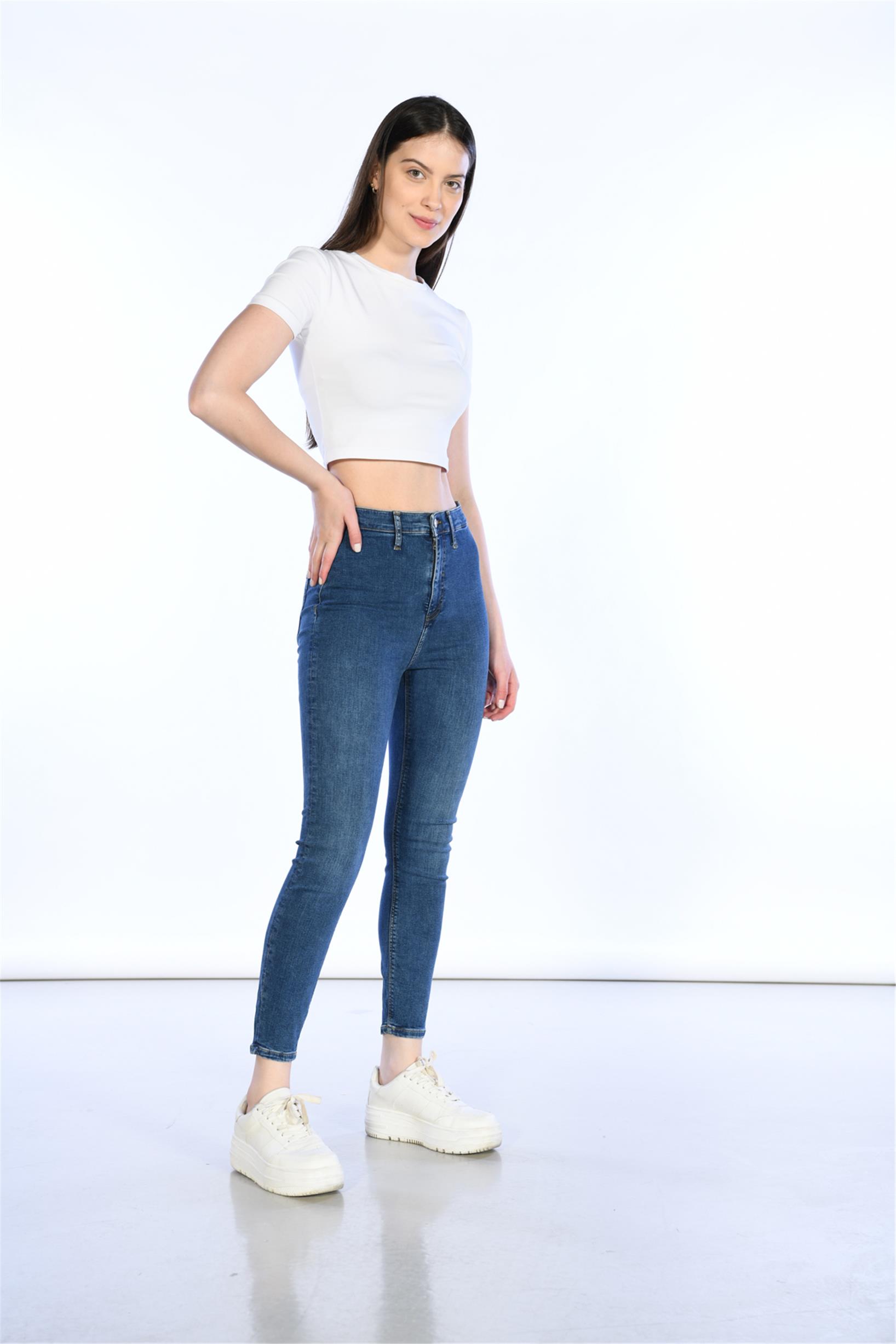 Koyu Mavi Yüksek Bel Cepsiz Skinny Jeans