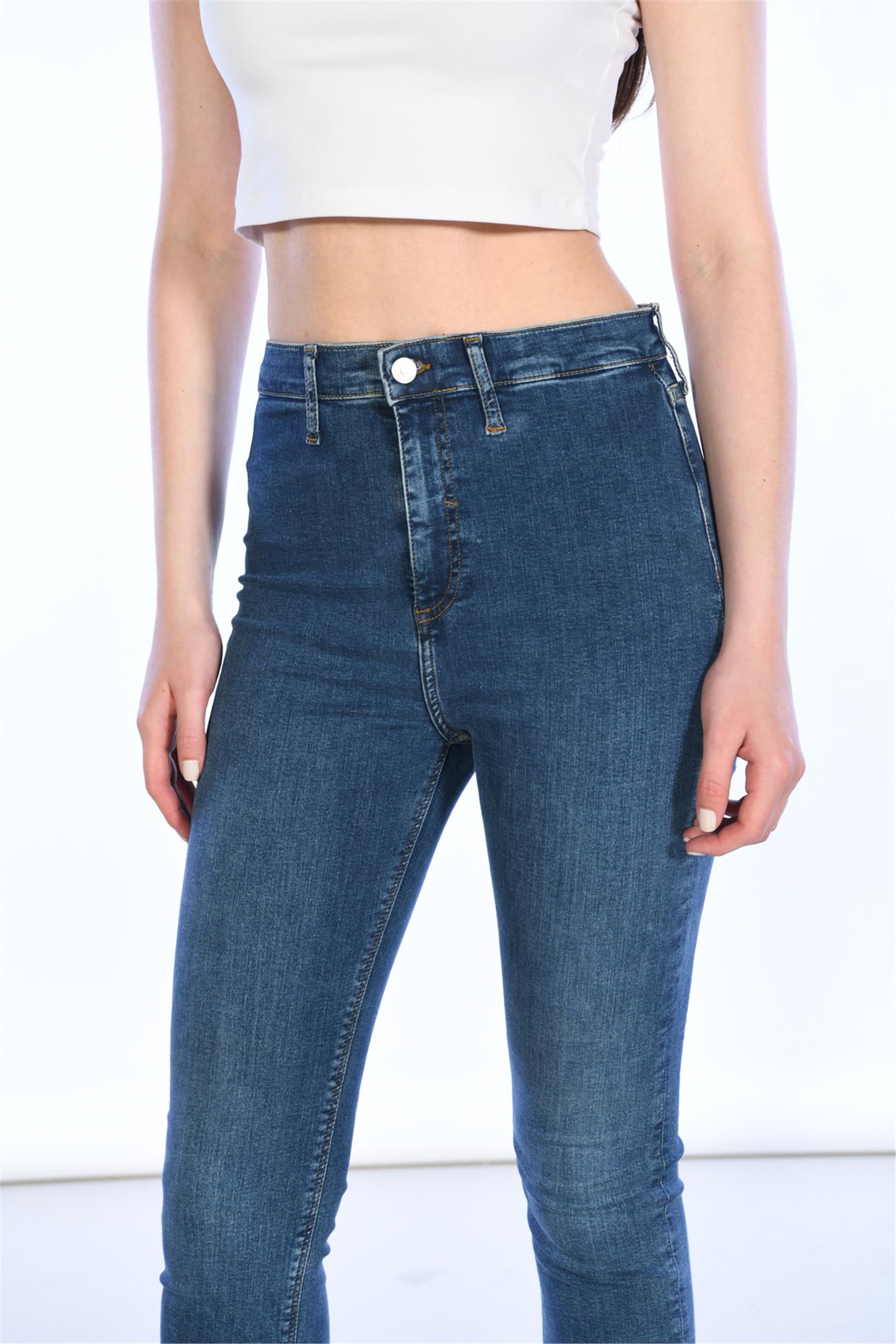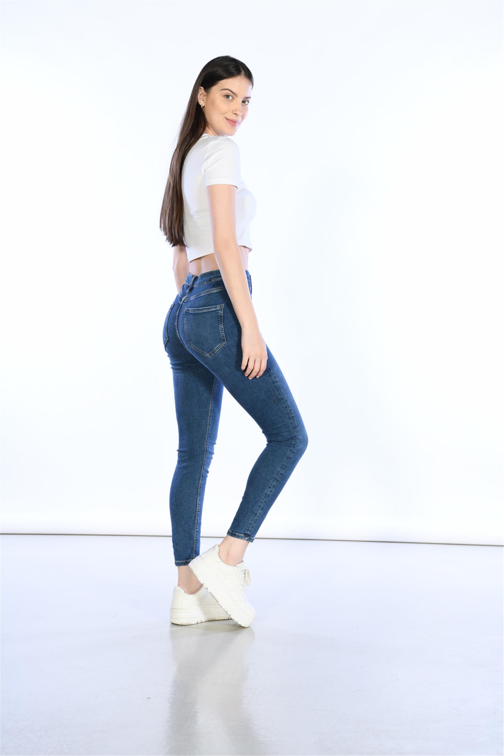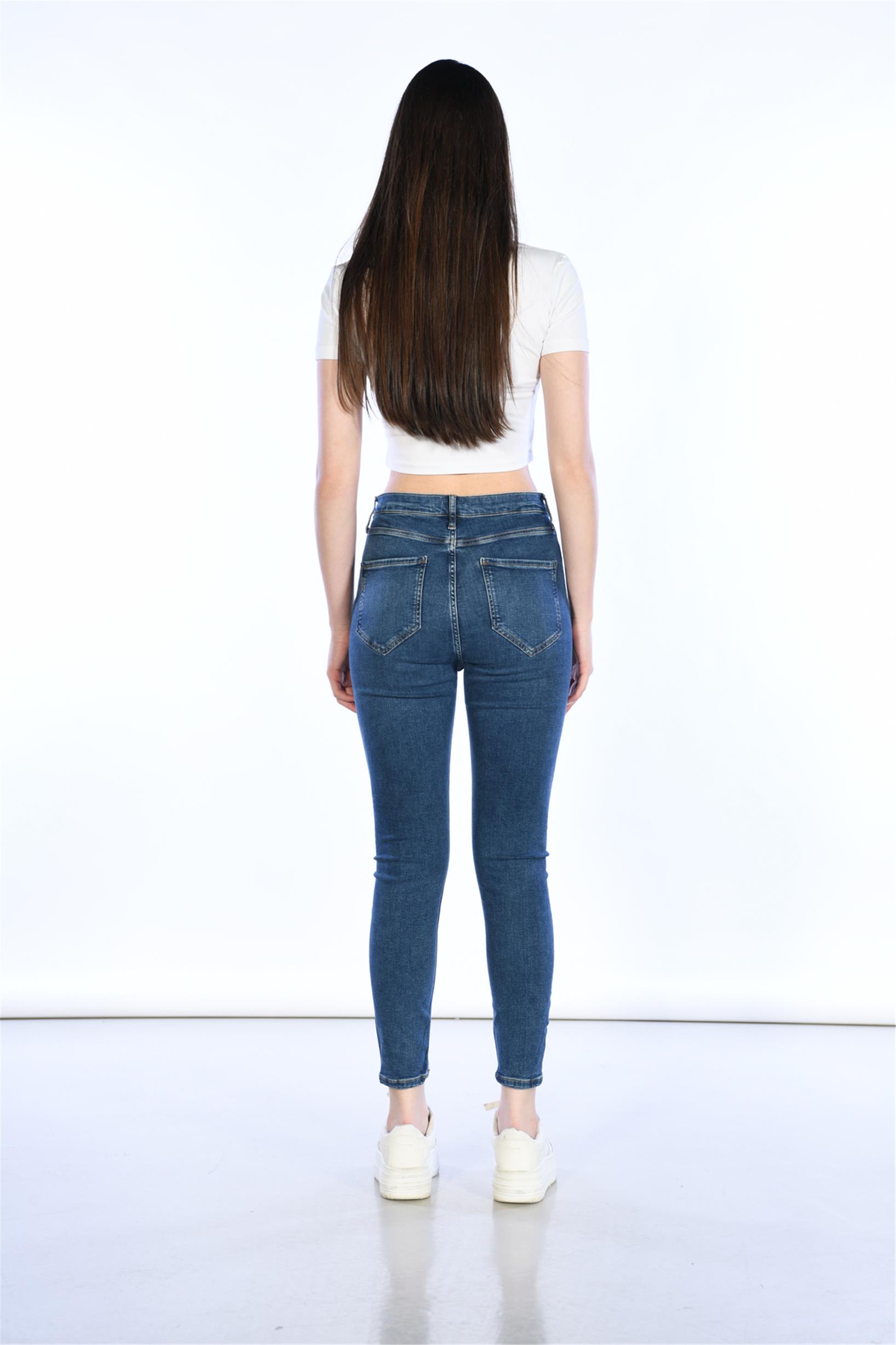 Koyu Mavi Yüksek Bel Cepsiz Skinny Jeans