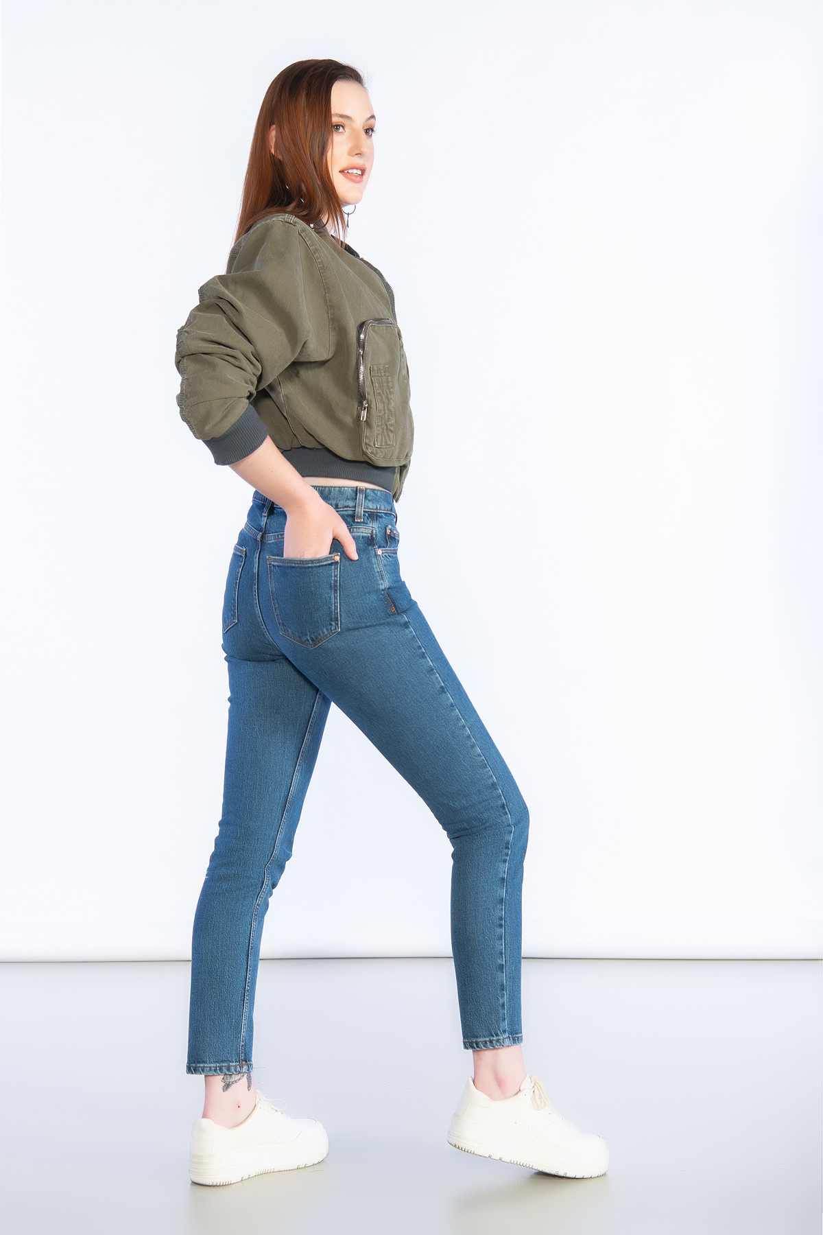 Koyu Mavi Yüksek Bel Mom Jeans
