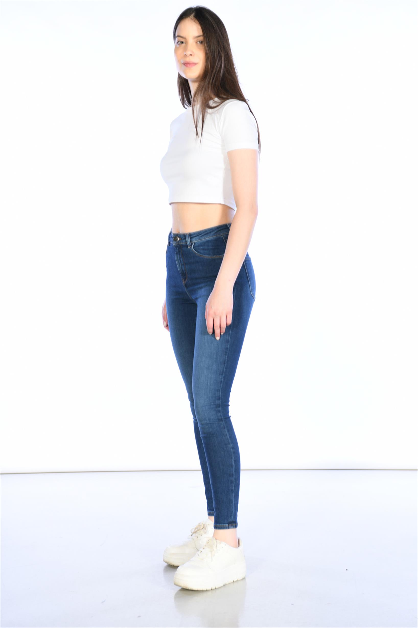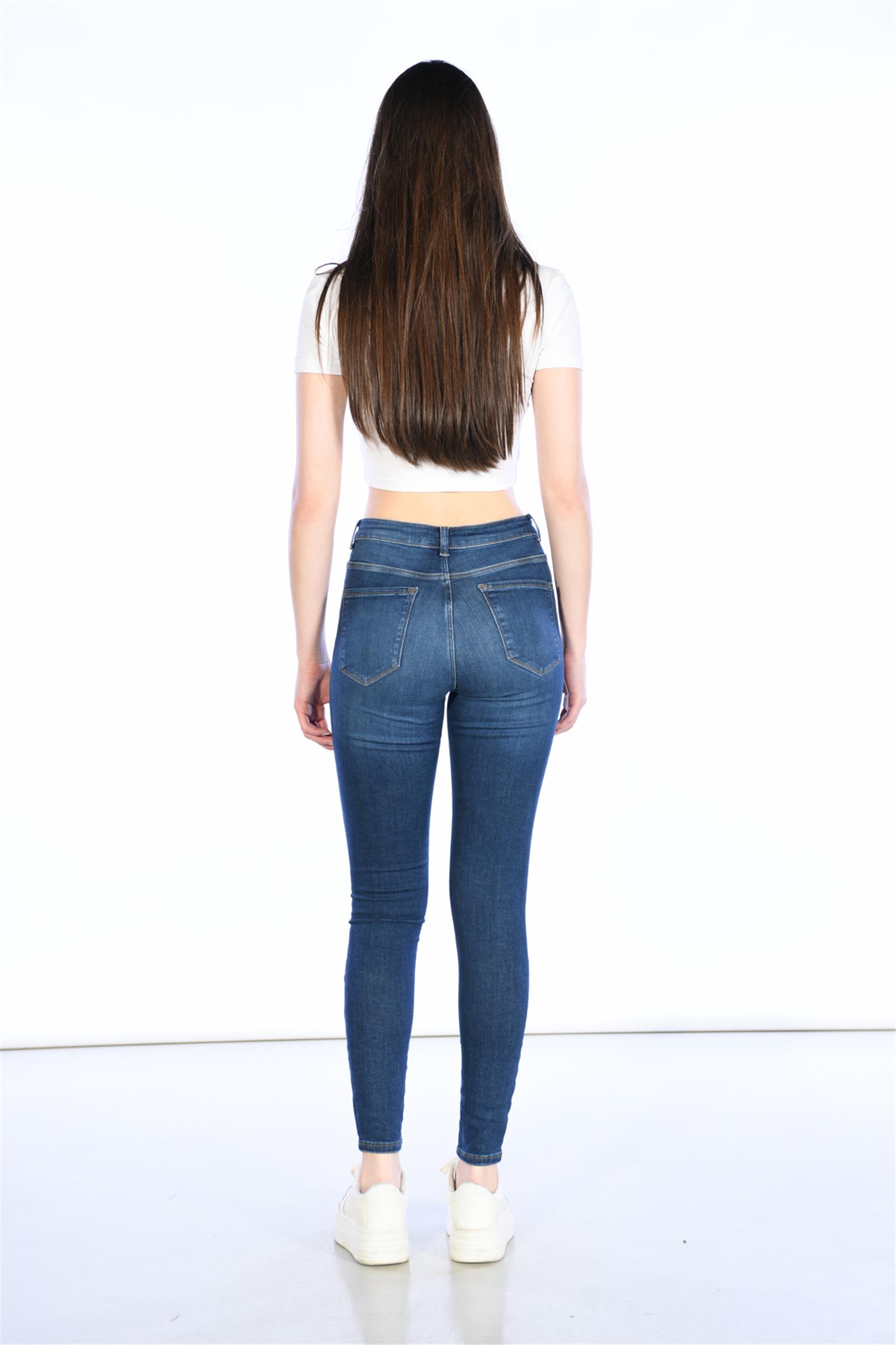 Koyu Mavi Yüksek Bel Skinny Jeans
