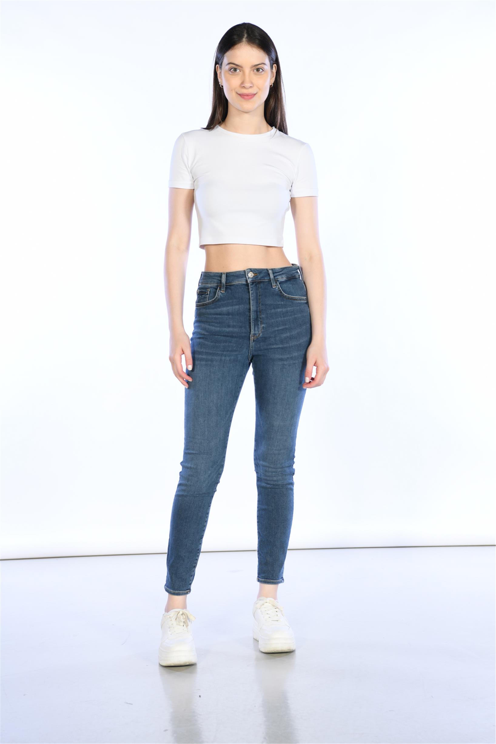 Koyu Mavi Yüksek Bel Skinny Jeans