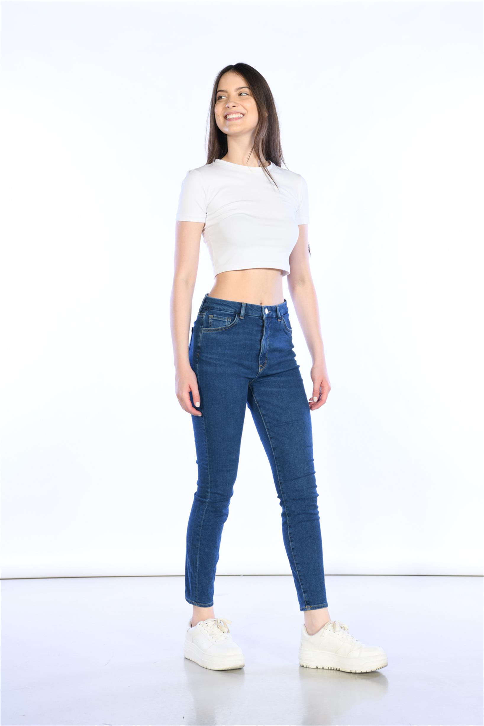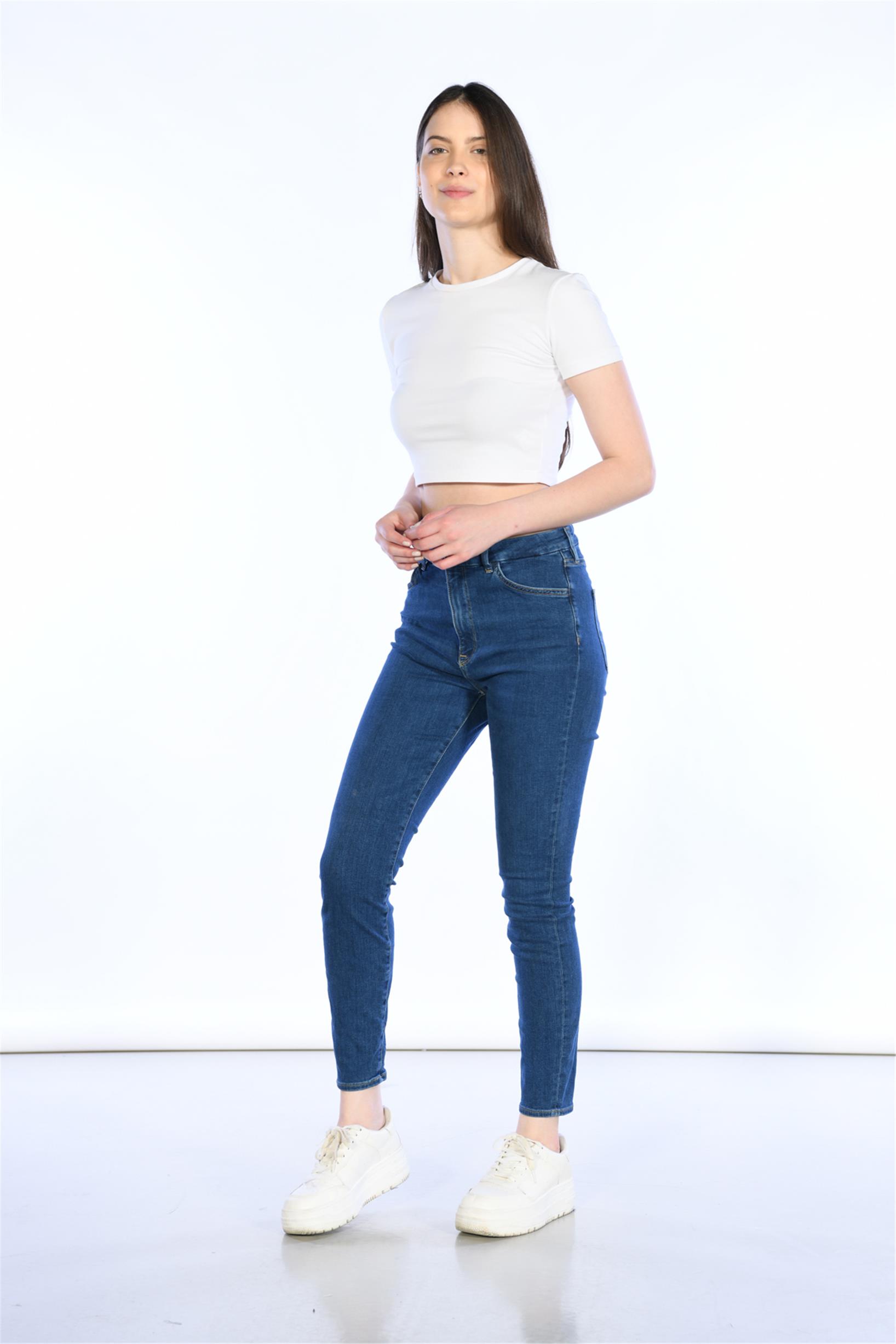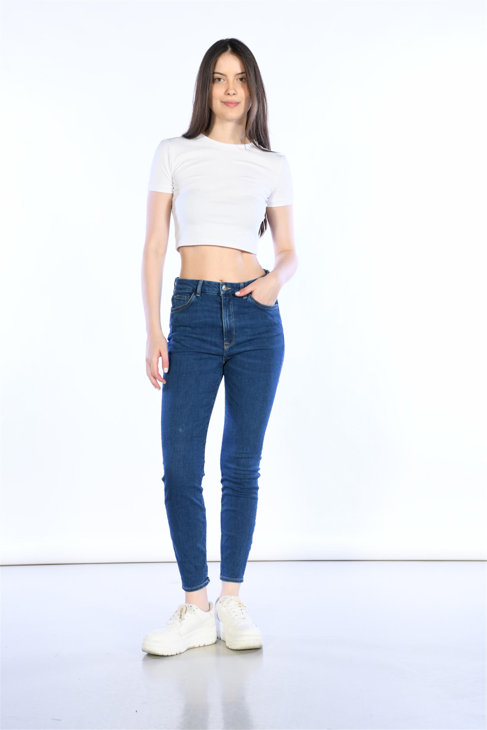 Koyu Mavi Yüksek Bel Skinny Jeans