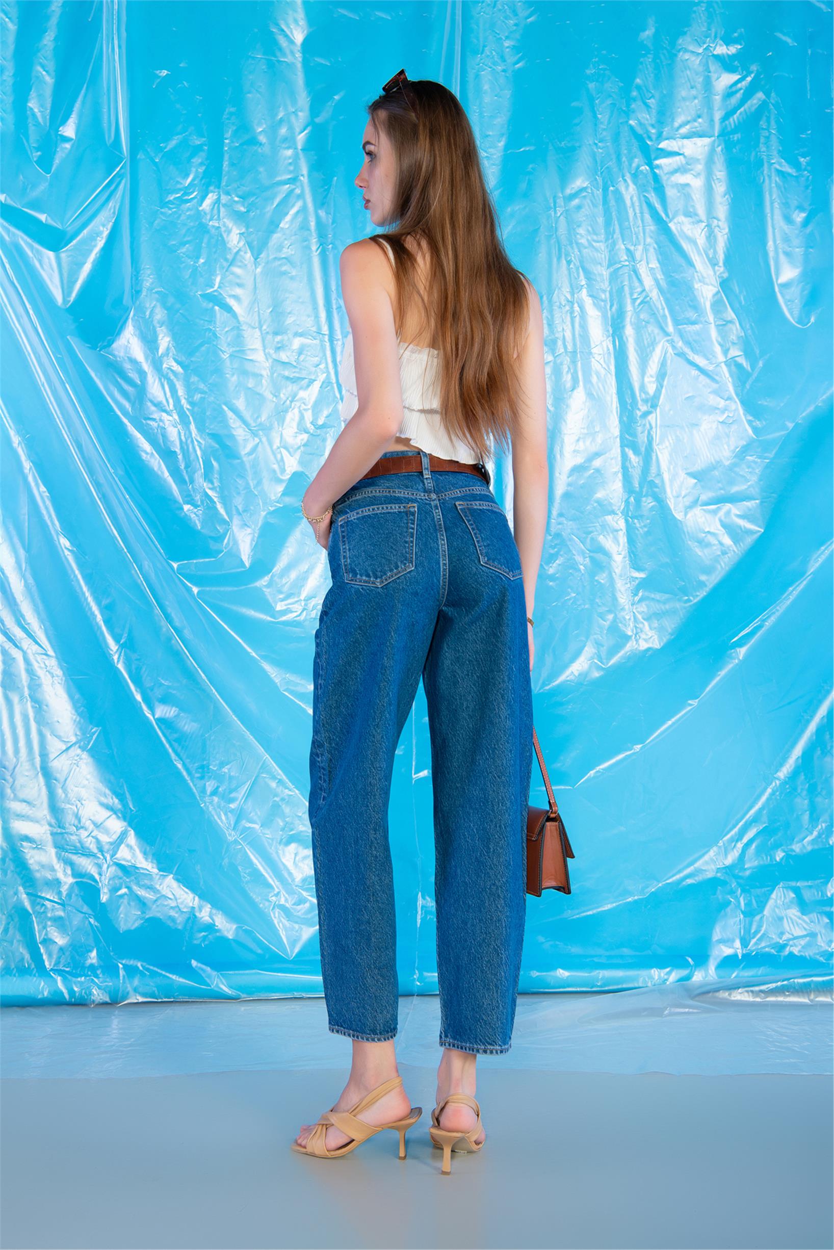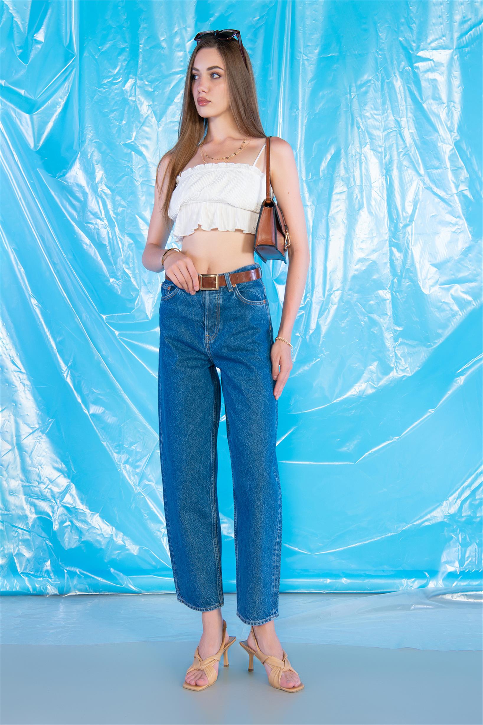 Koyu Mavi Yüksek Bel Wideleg Jeans
