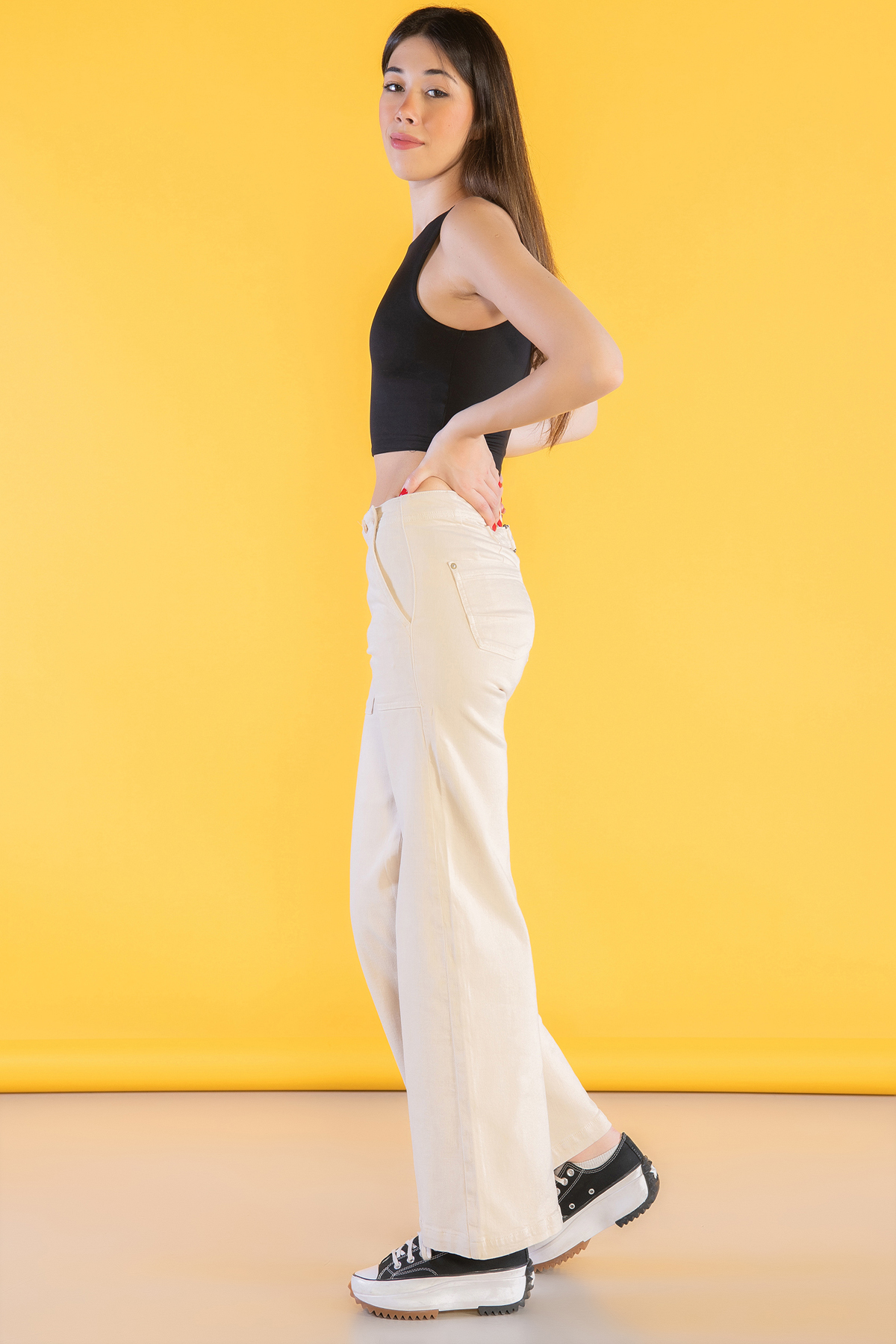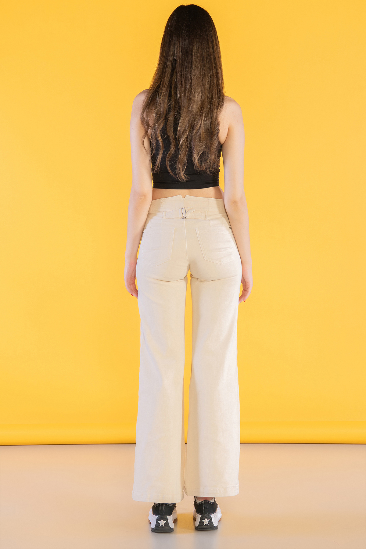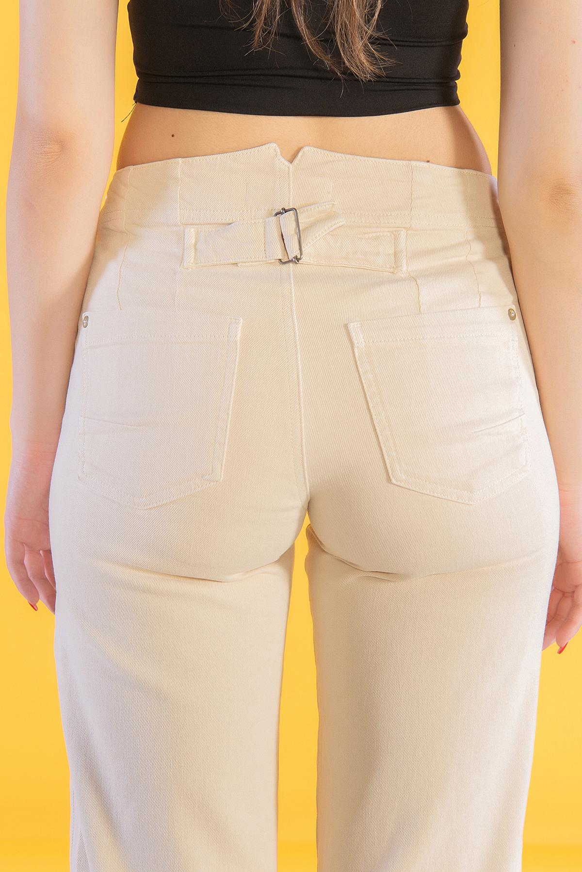 Krem Normal Bel Cep Detaylı Palazzo Jeans