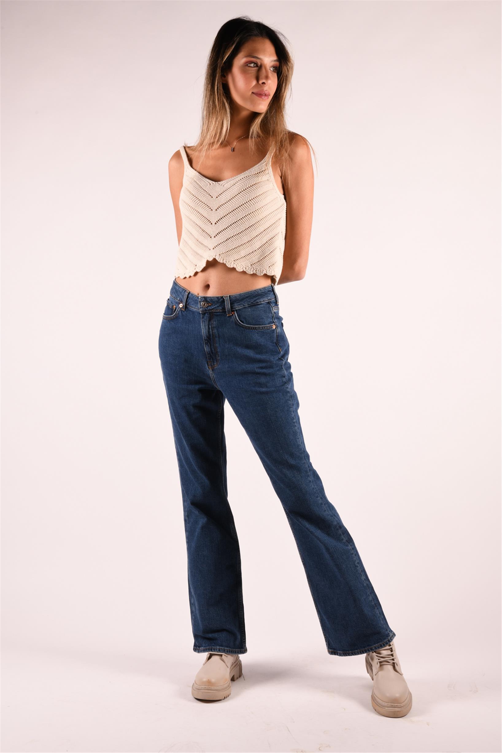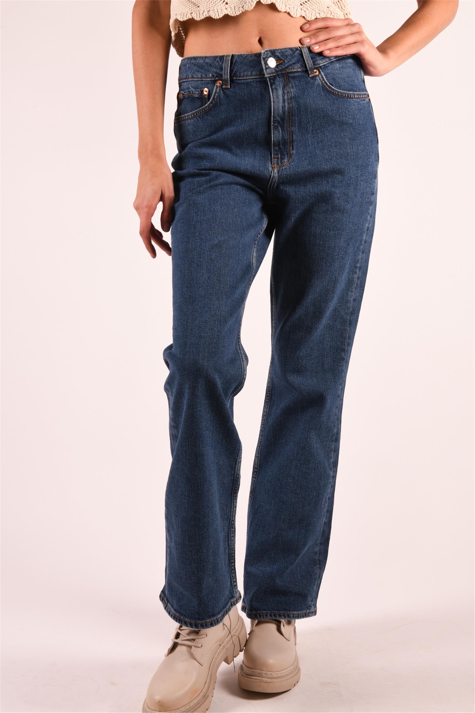Lacivert Normal Bel Wide Leg Jeans