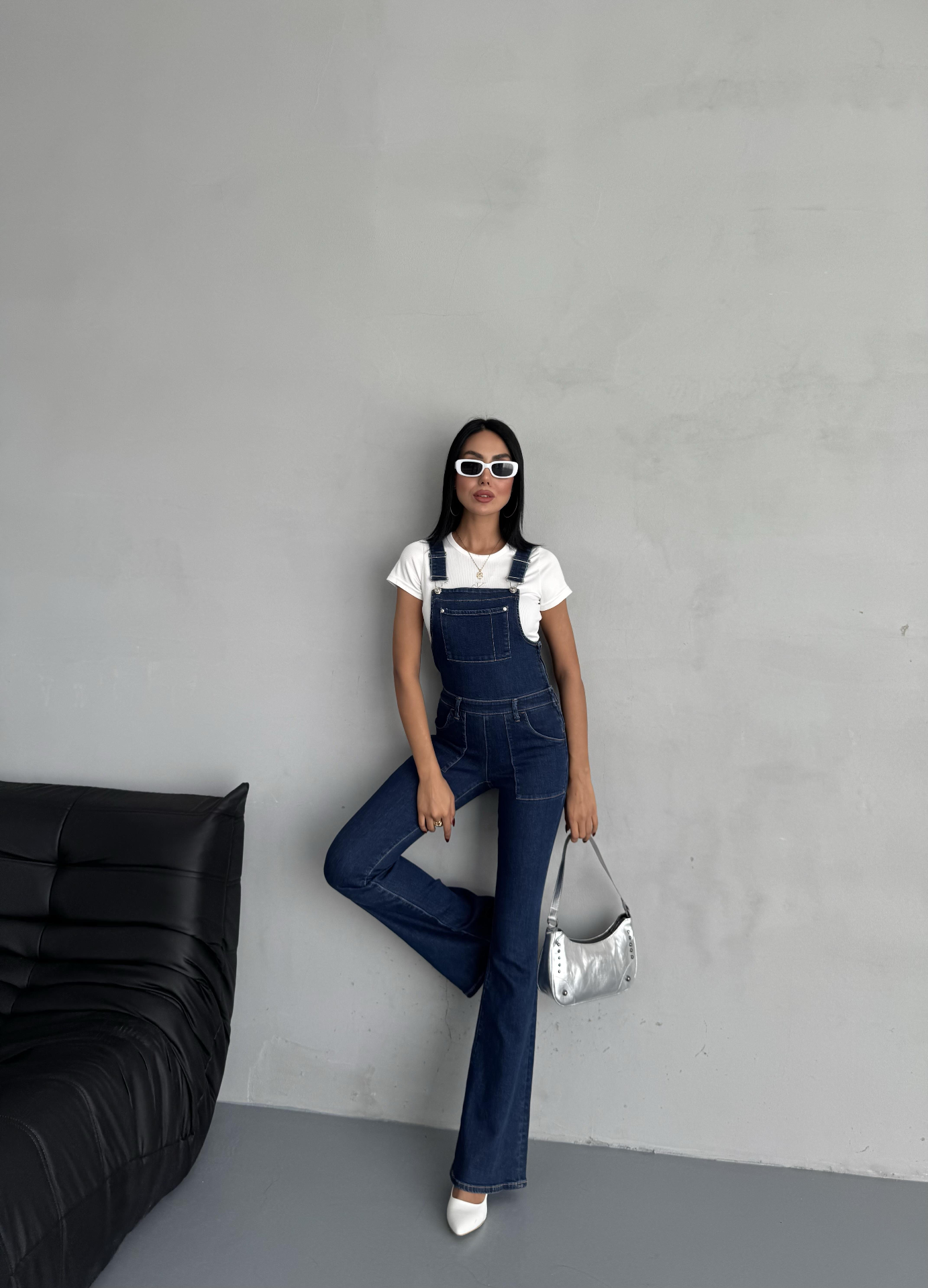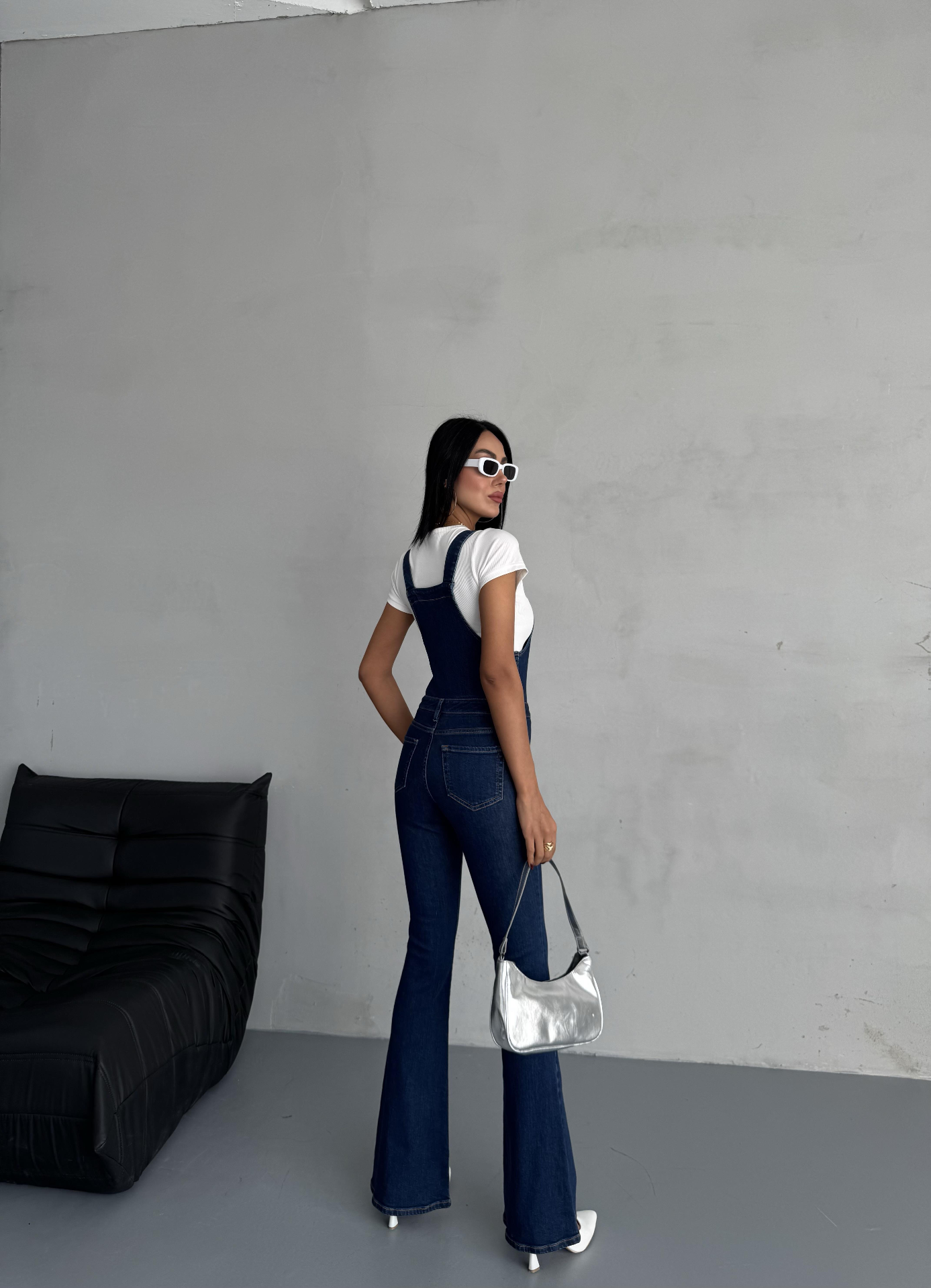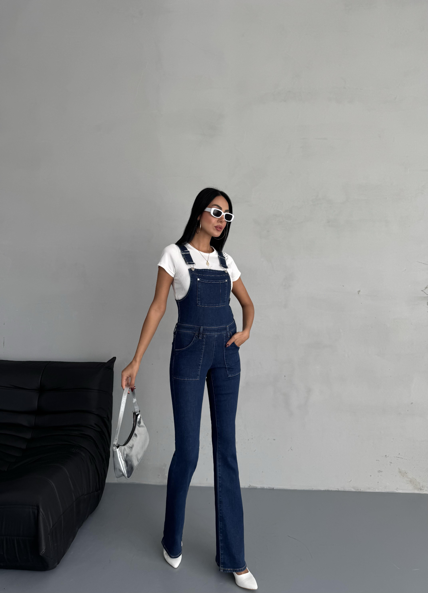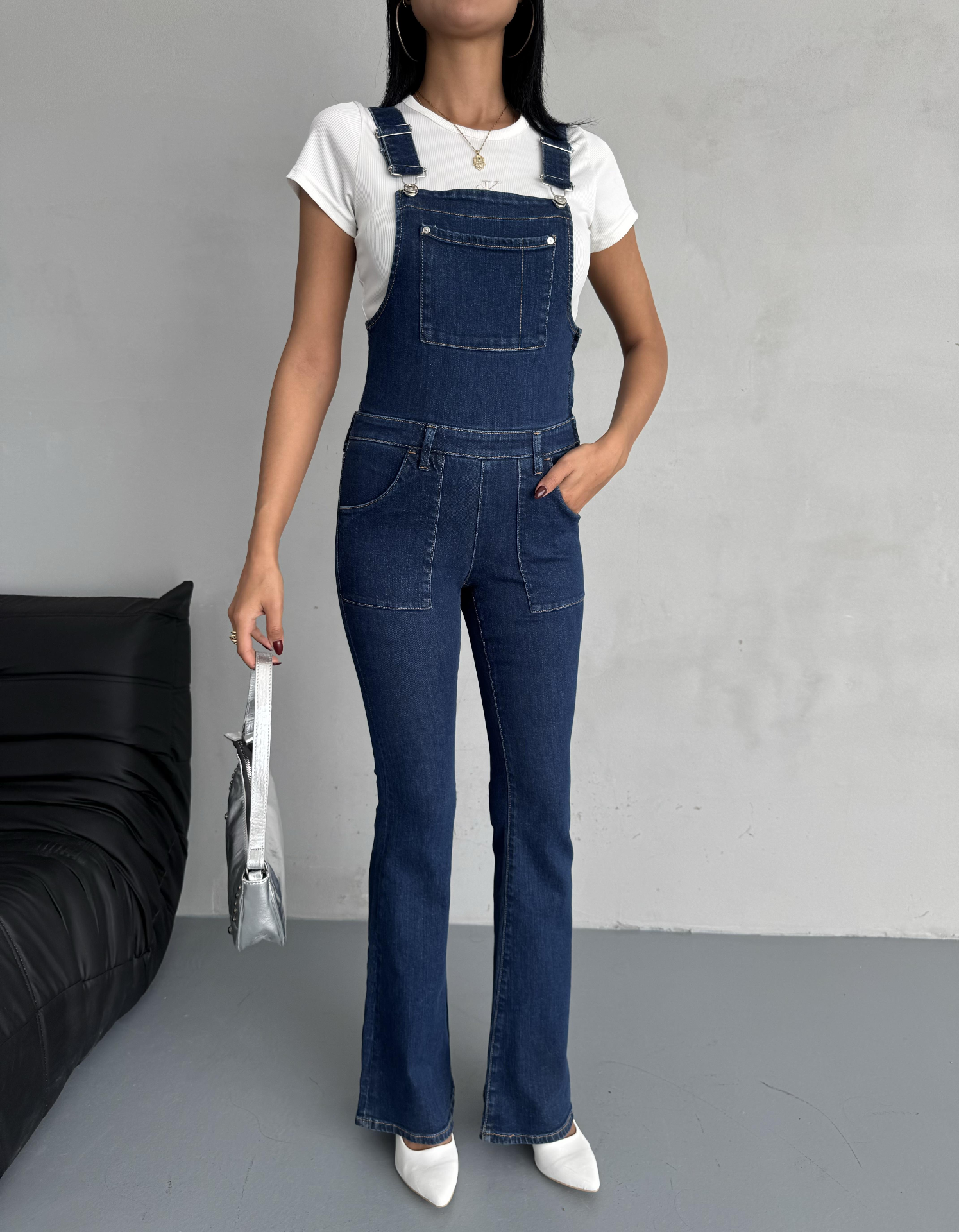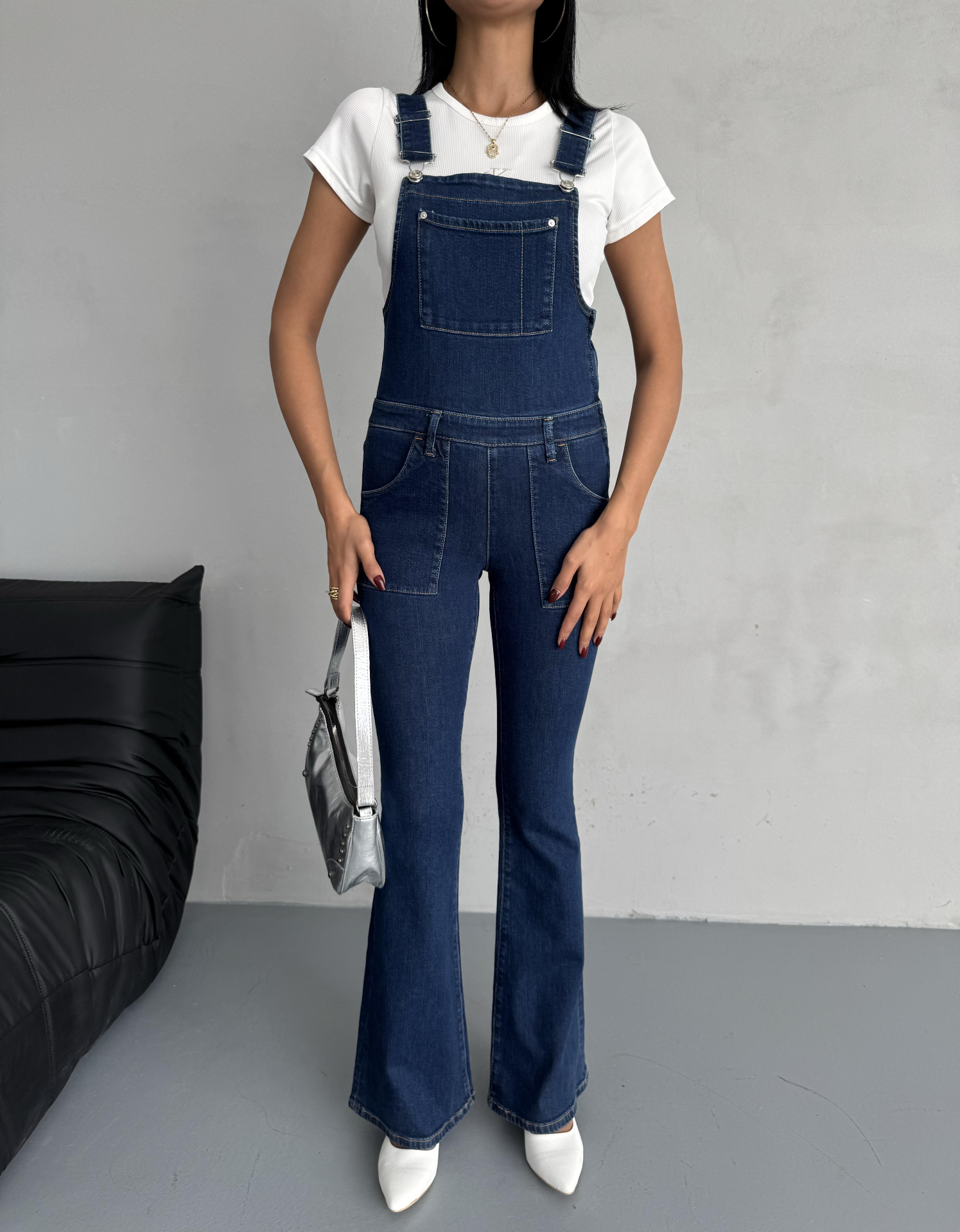 Lacivert Seloped Flare Denim Tulum